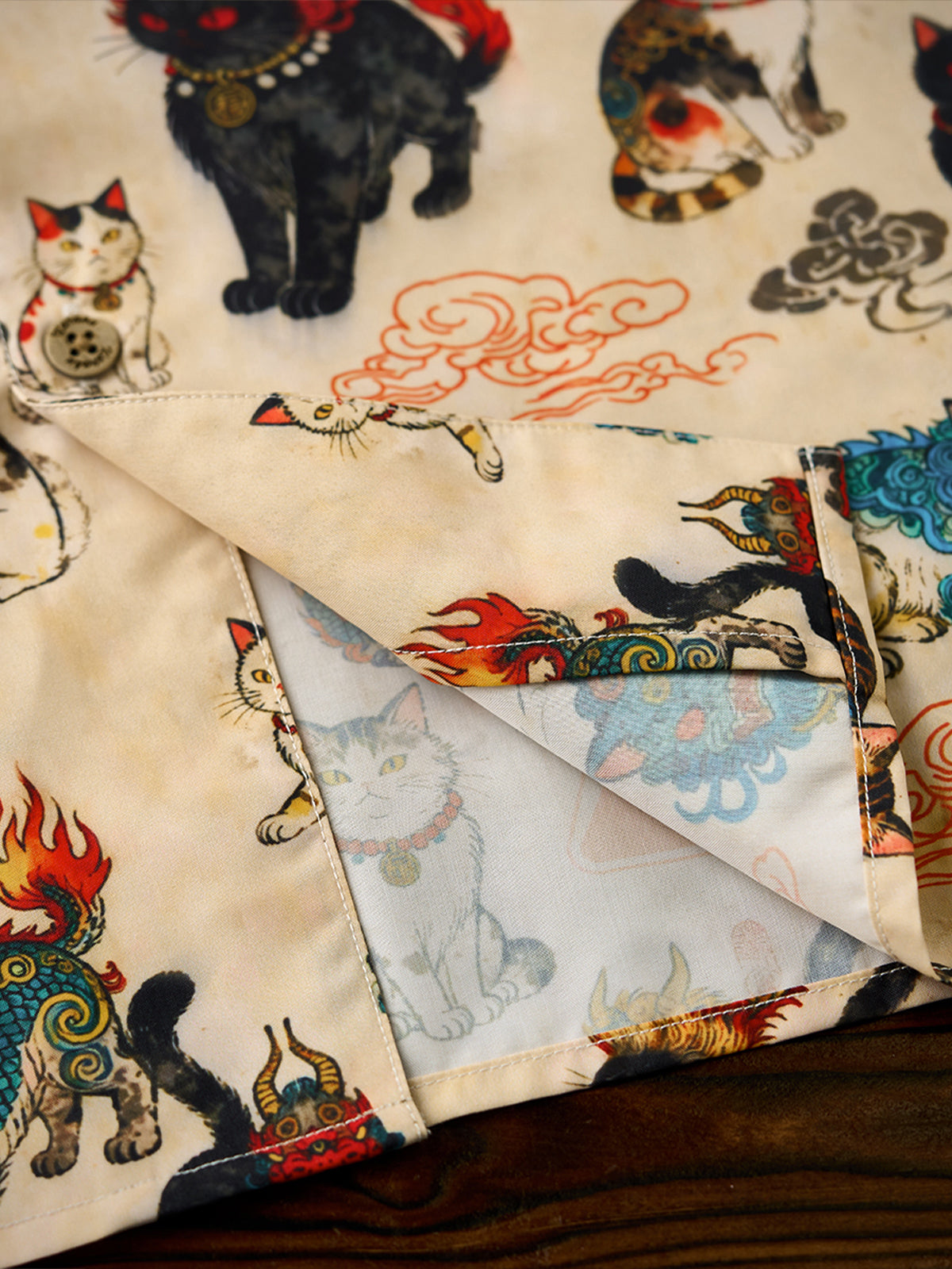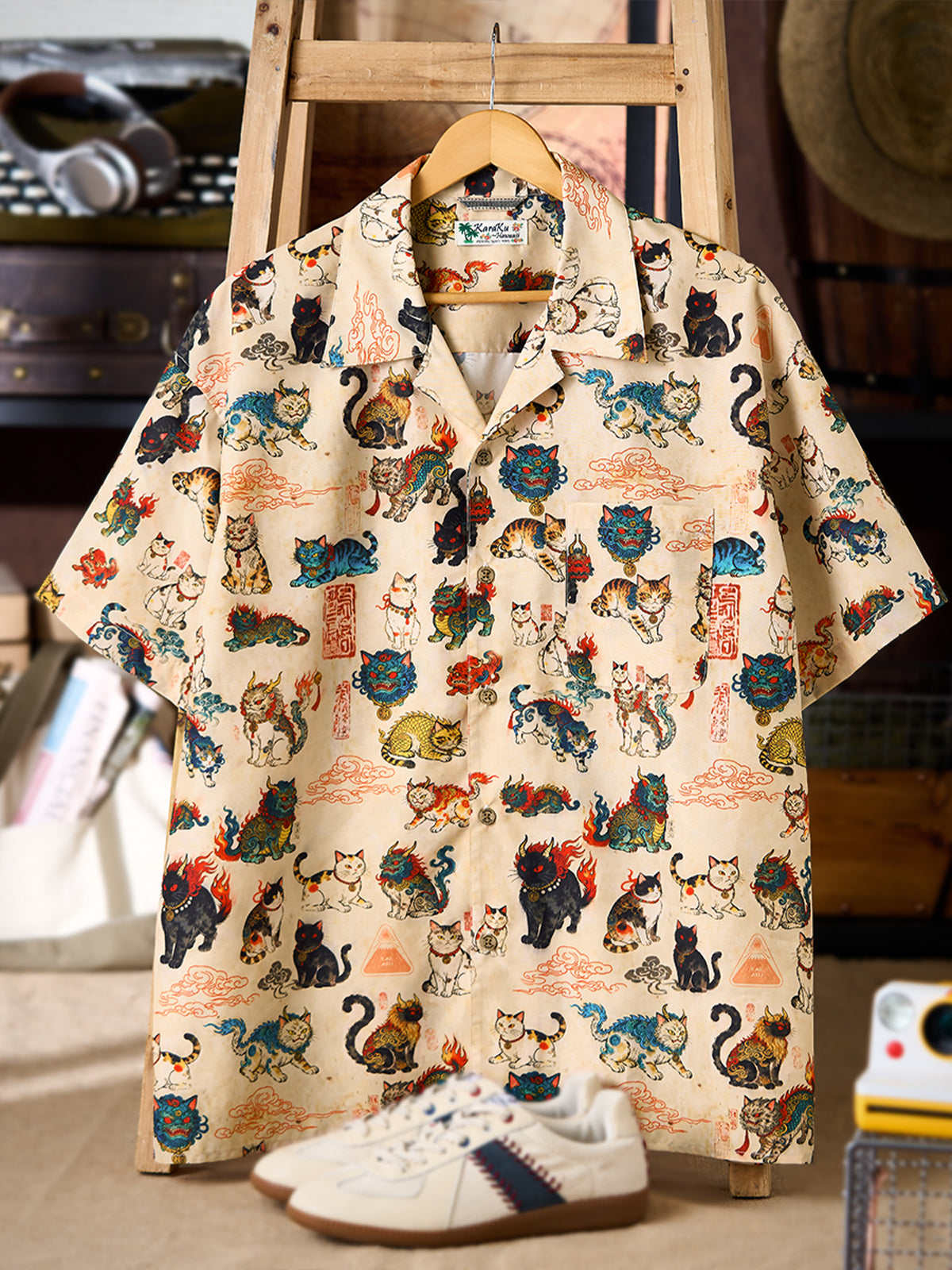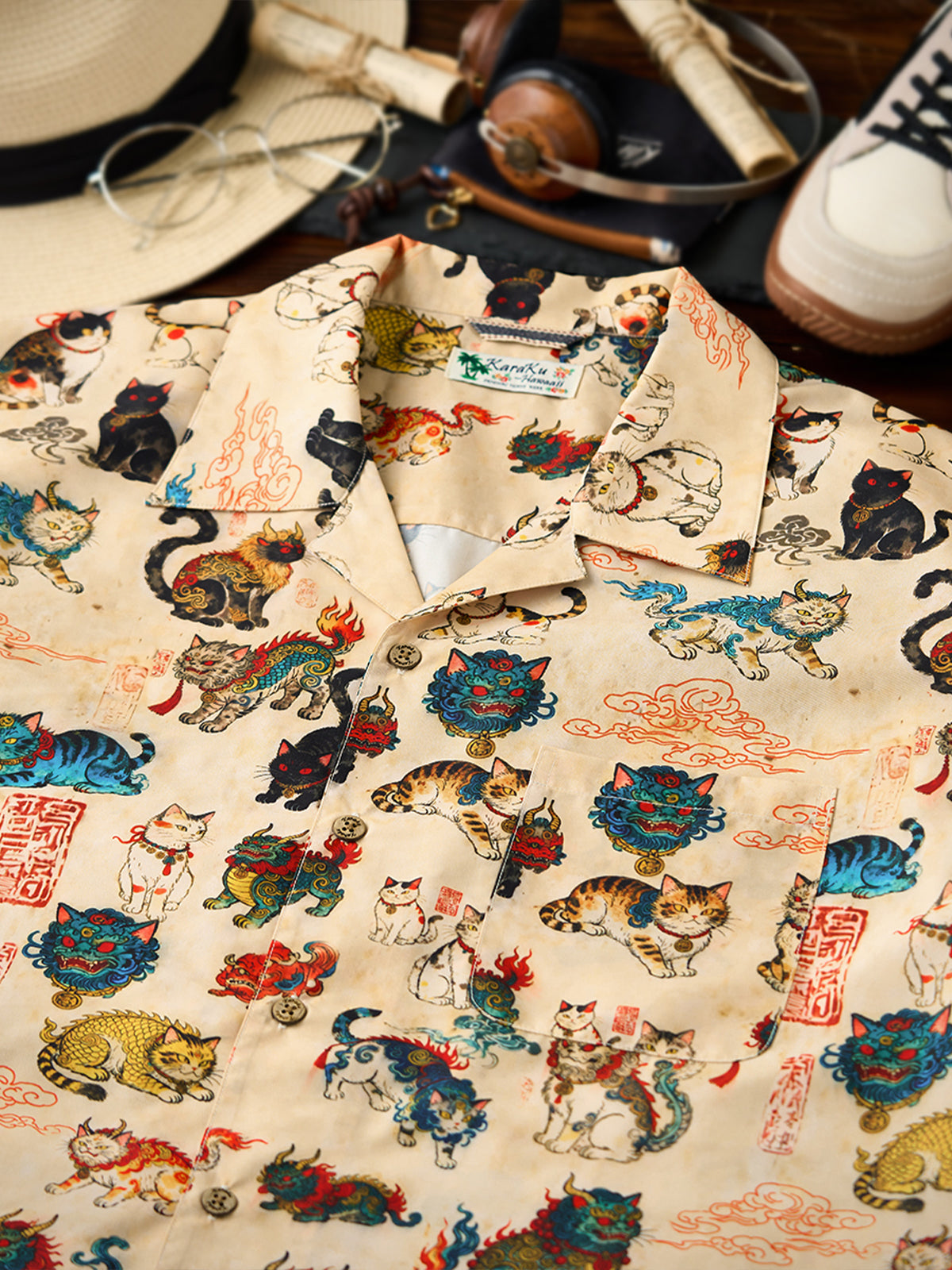 “Cats in Maneki-Neko Costumes” Ukiyo-e Style All-Over Print Aloha Shirt