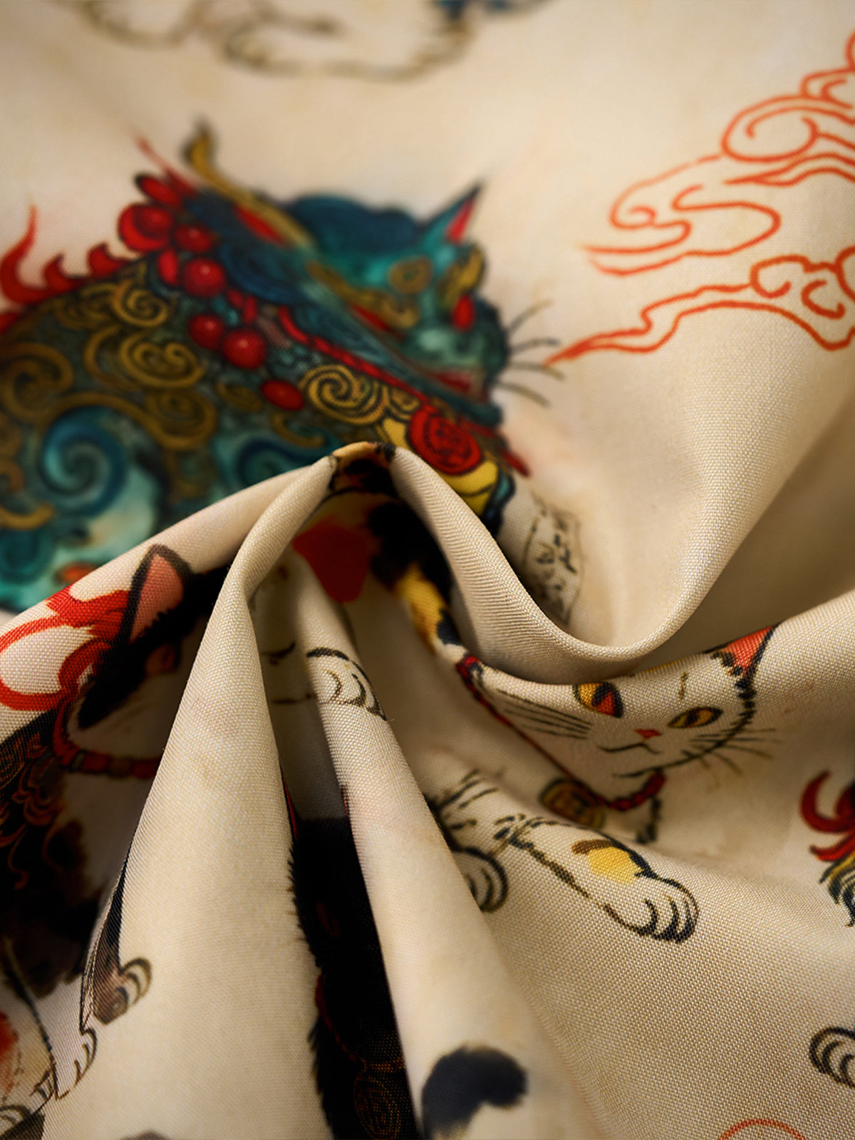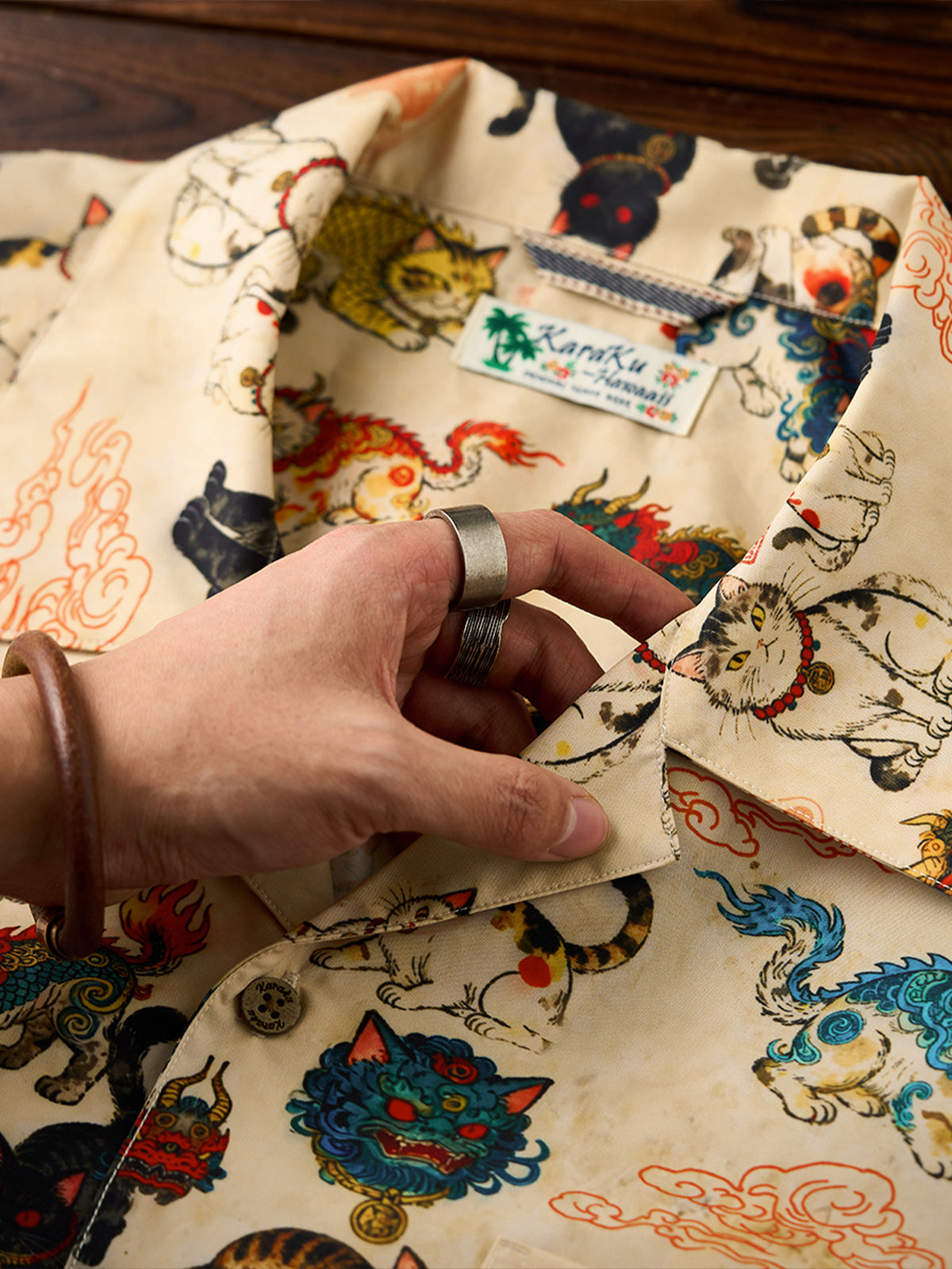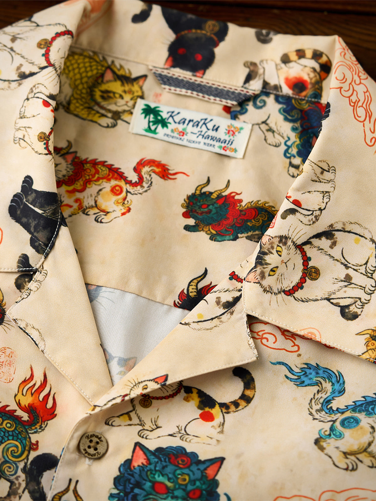 “Cats in Maneki-Neko Costumes” Ukiyo-e Style All-Over Print Aloha Shirt