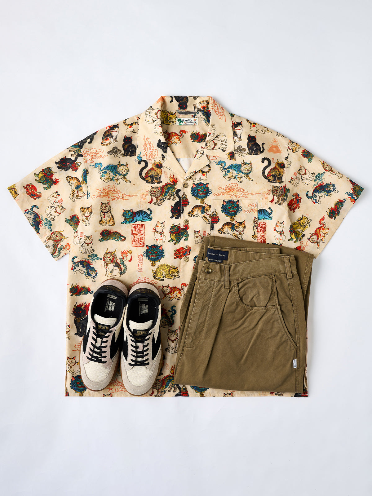 [Pre-order] Monstera & Ginger Tabby Print Cuban Collar Aloha Shirt