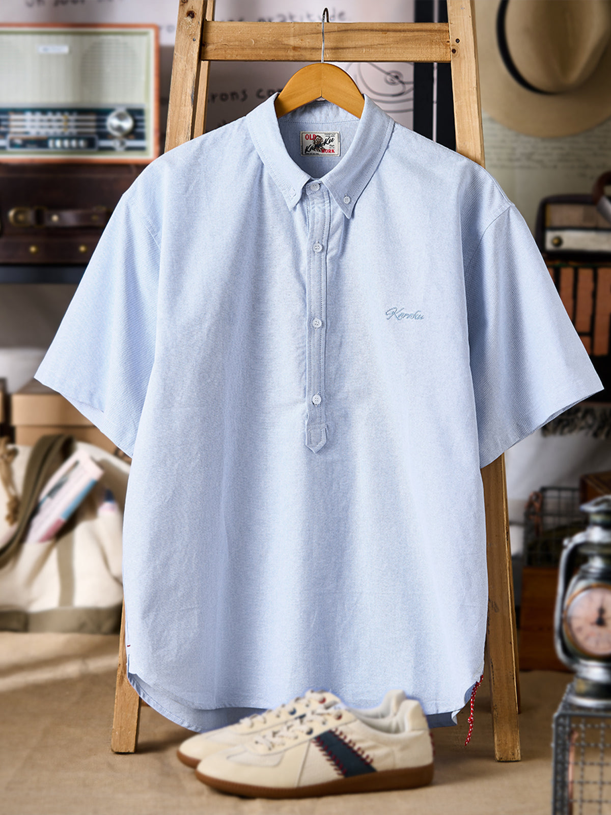 [Pre-order] Oxford Button-Down Short Sleeve Shirt with Red Drawstring