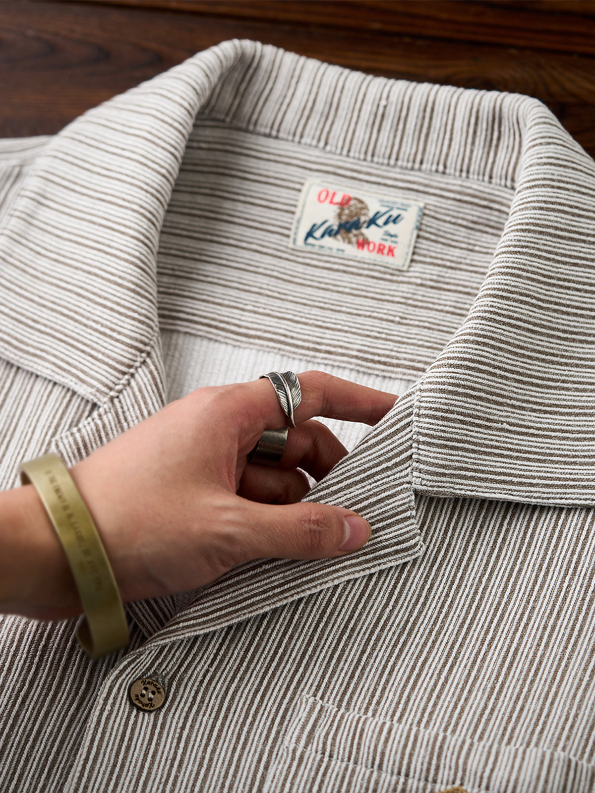 Vintage Striped Patch Pocket Relaxed Fit Shirt