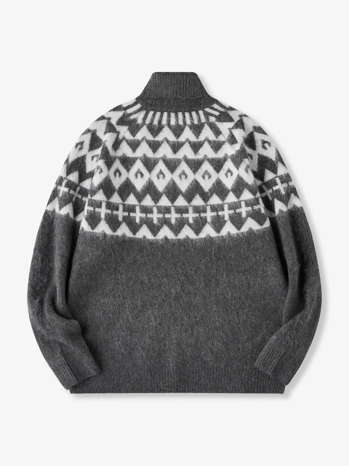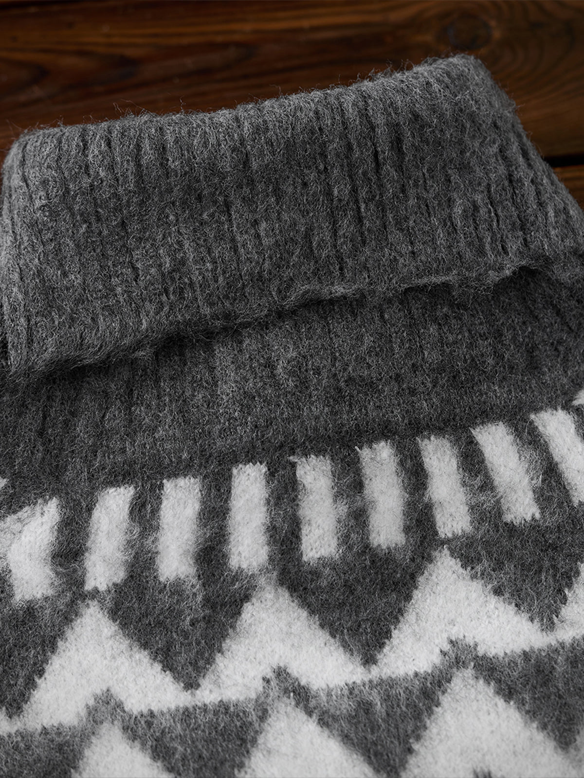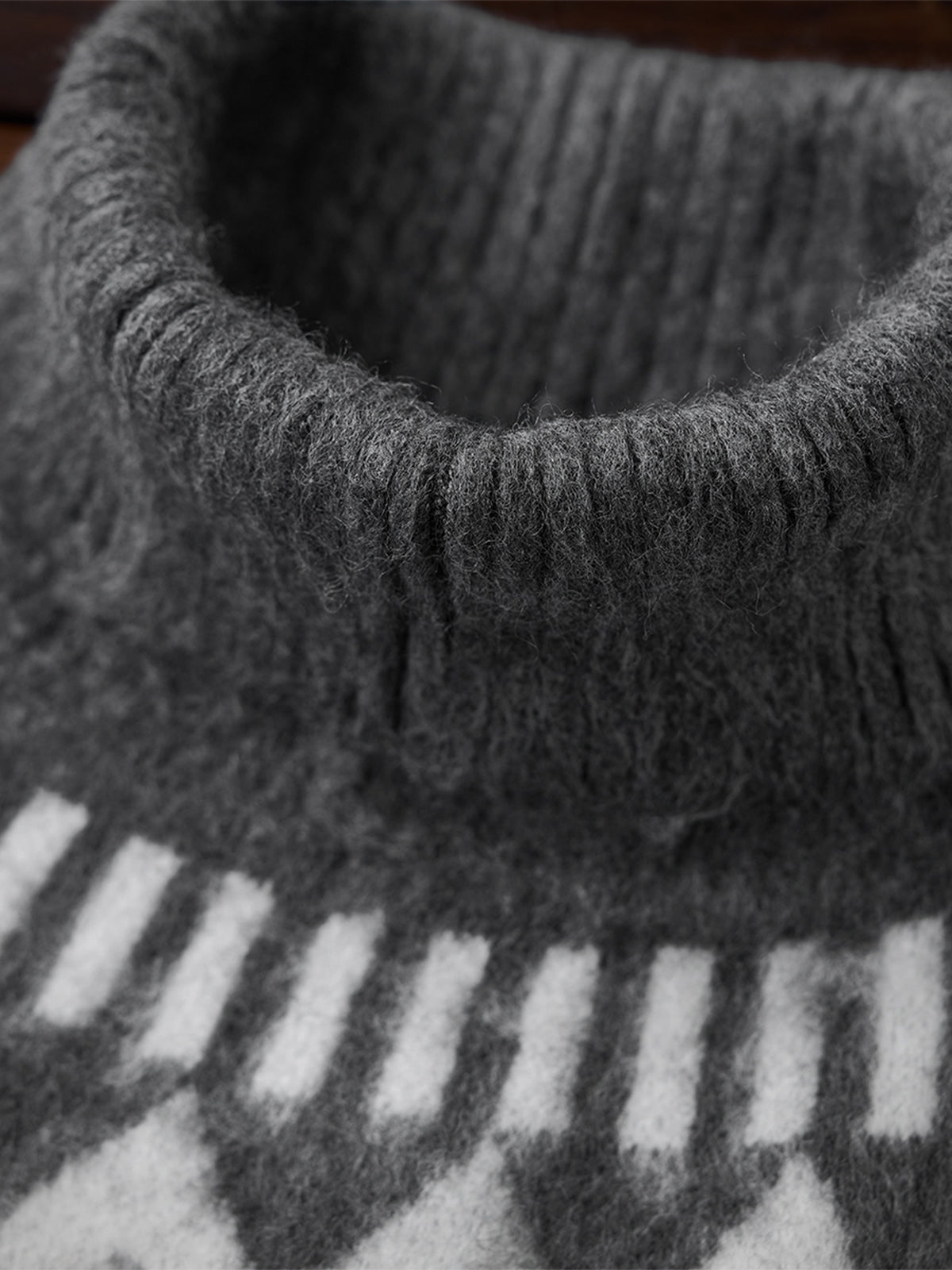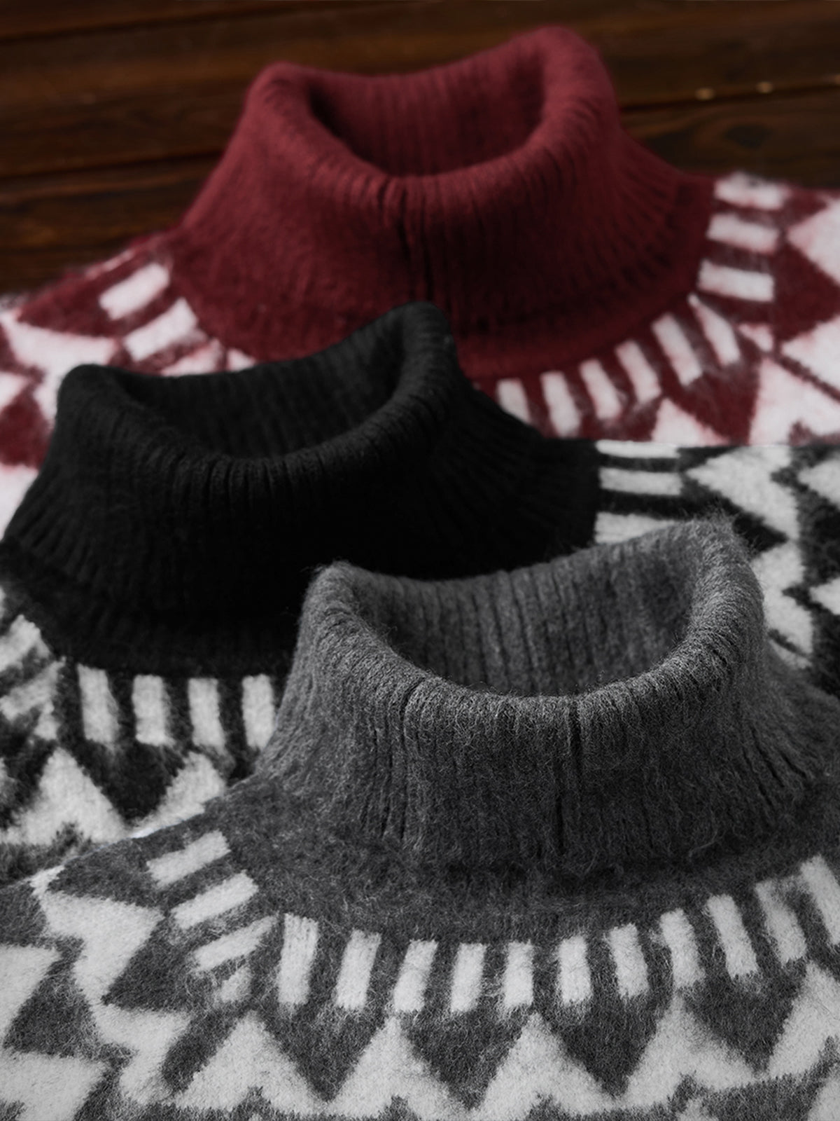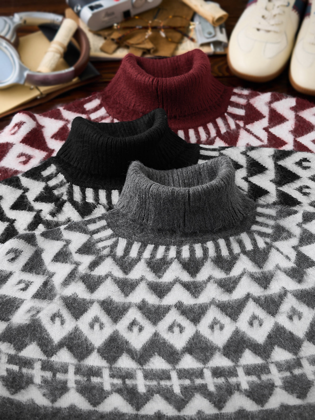 Fair Isle Jacquard Heavyweight High-Neck Pullover Knit Sweater