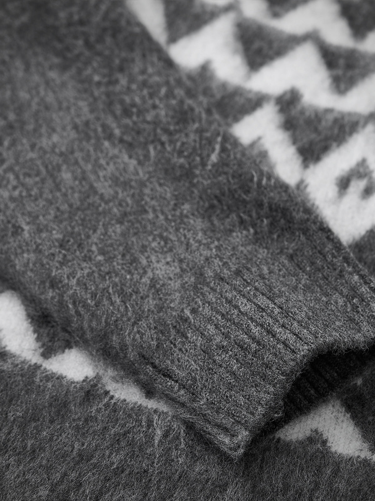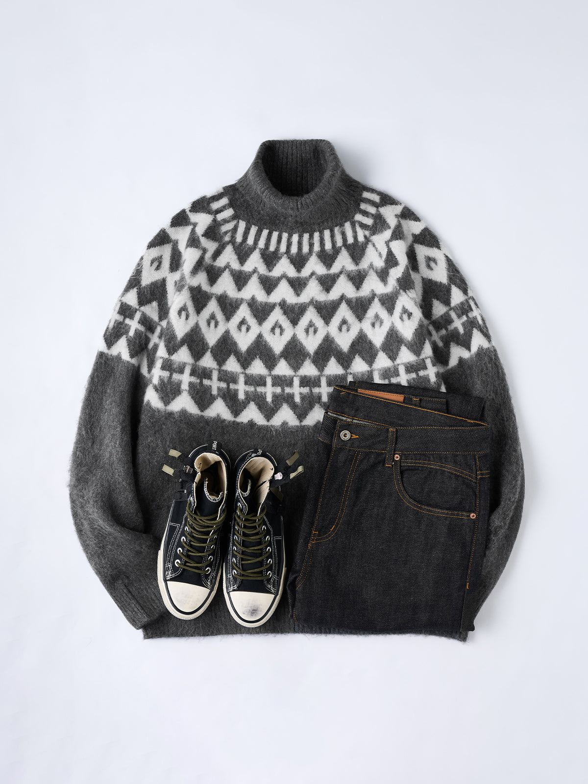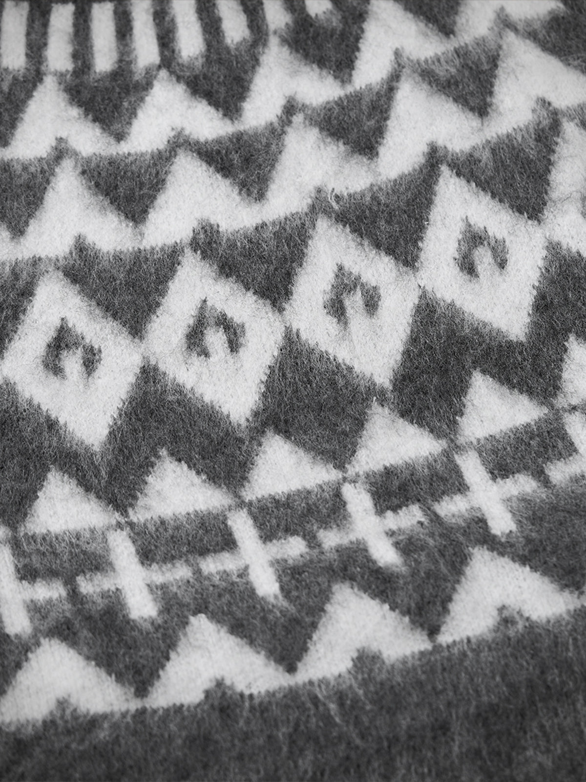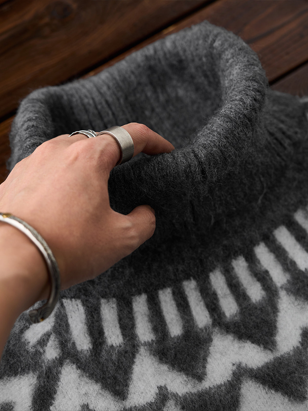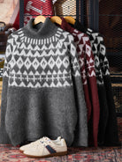 Fair Isle Jacquard Heavyweight High-Neck Pullover Knit Sweater