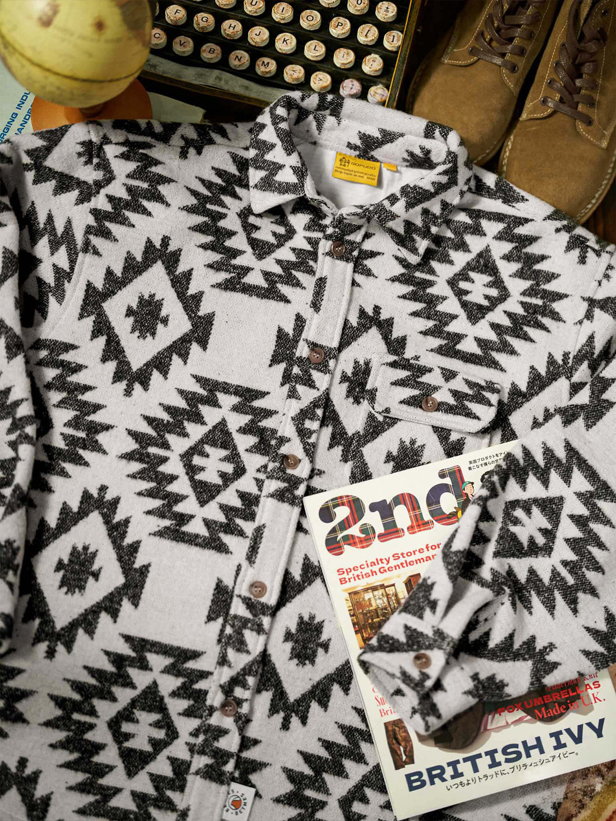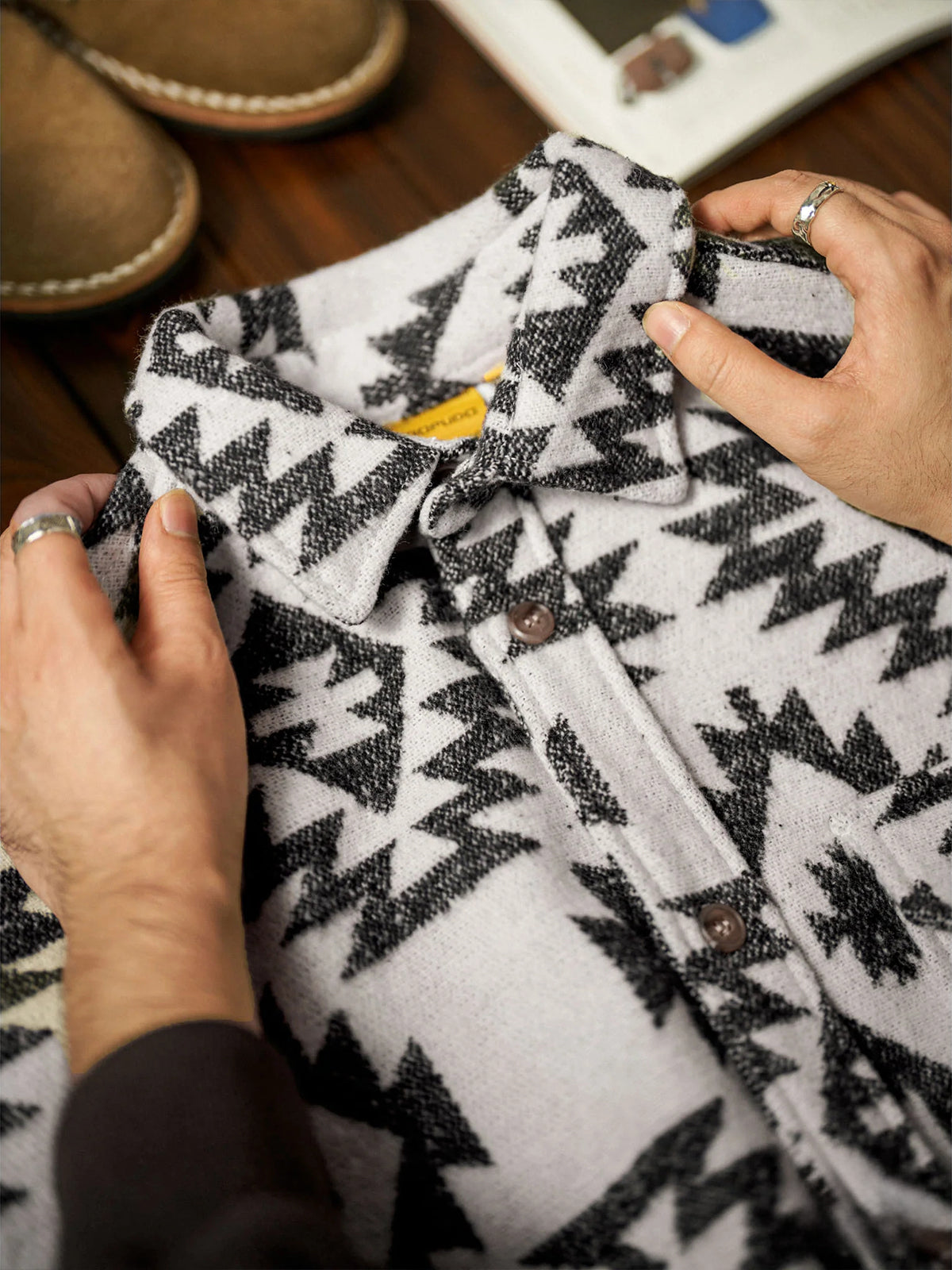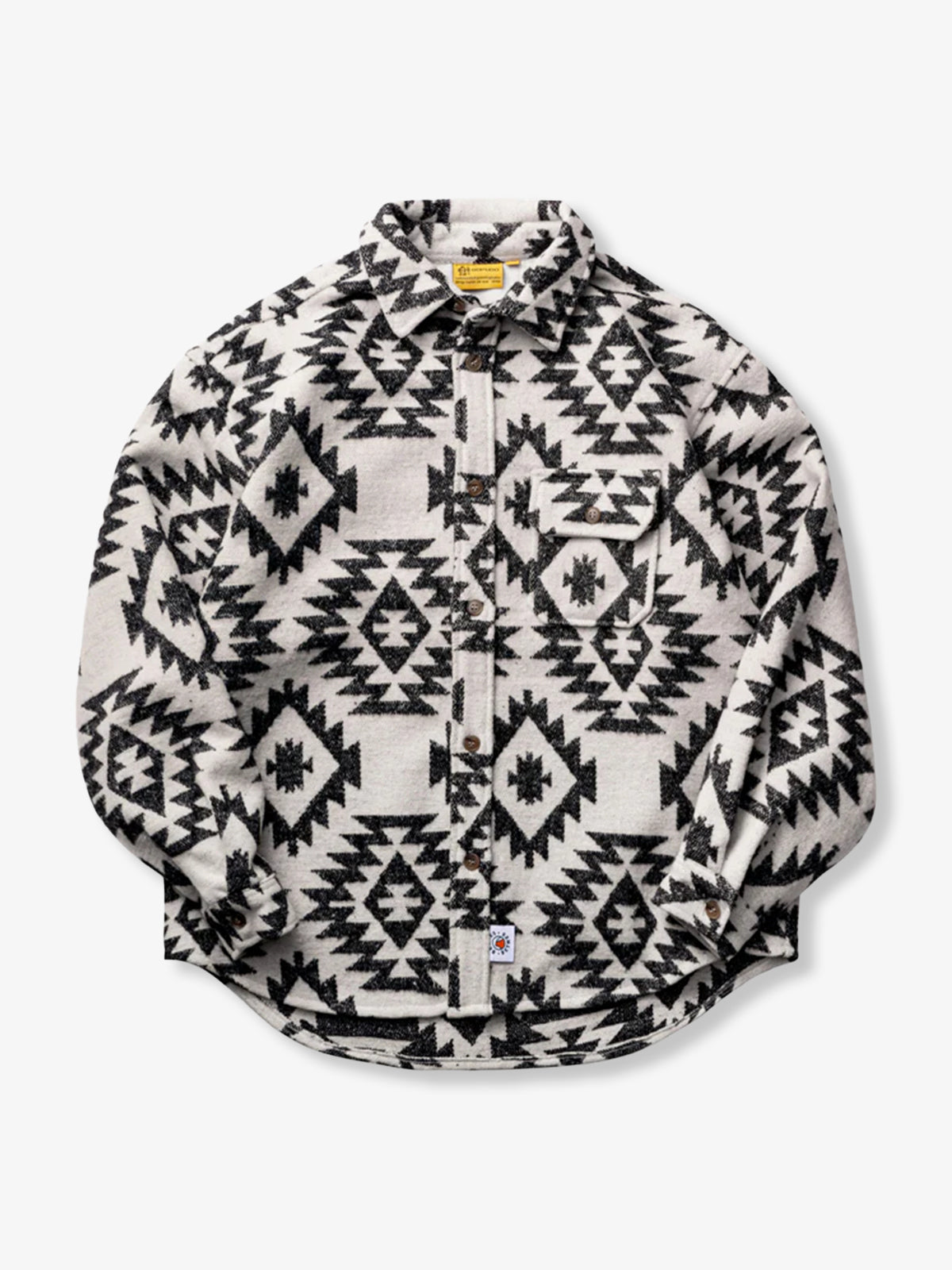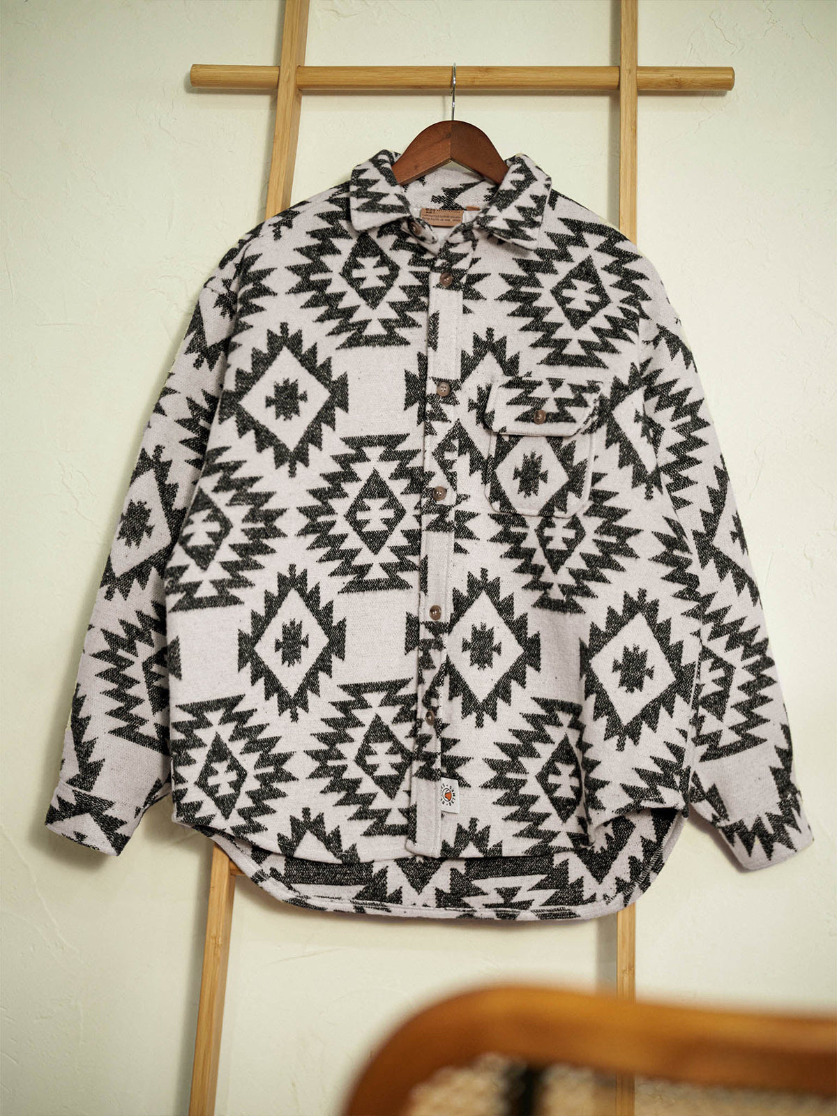 Navajo Pattern Wool-Blend Tweed Overshirt