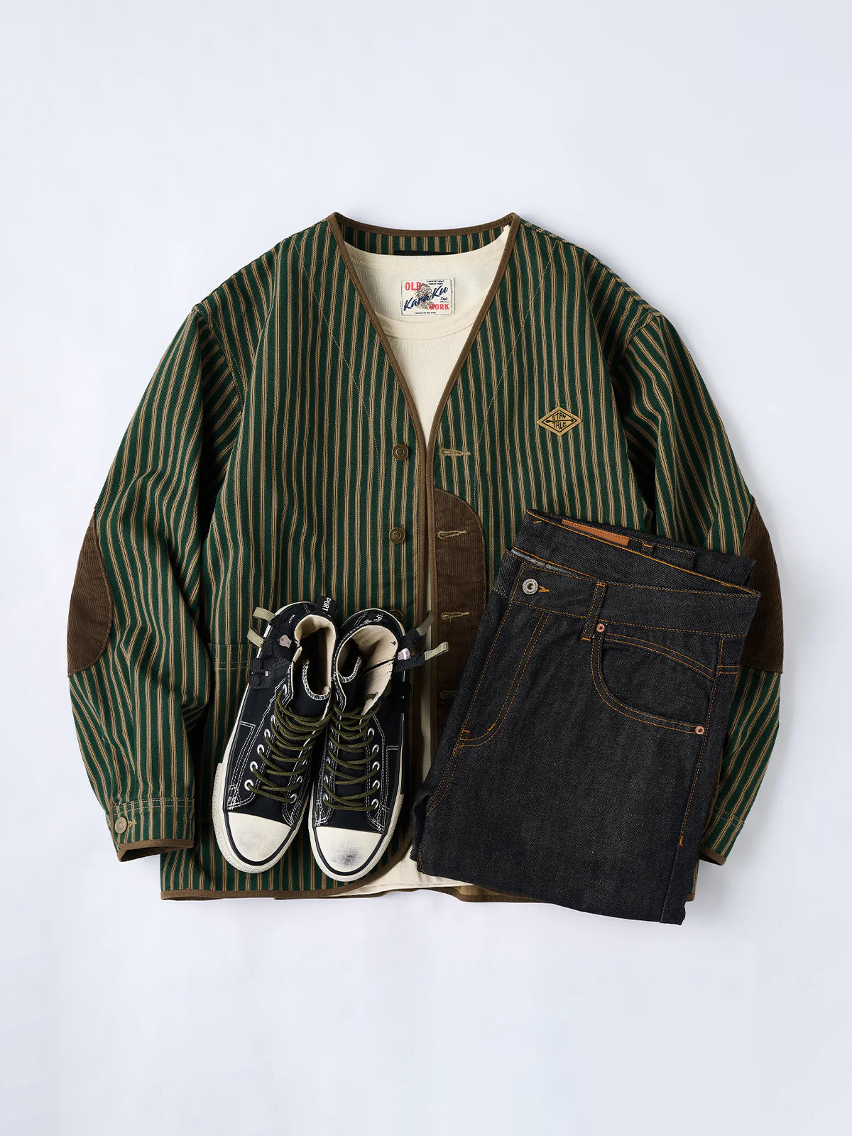 [Pre-Order] Stripe Work Jacket with Corduroy Details & Elbow Patches