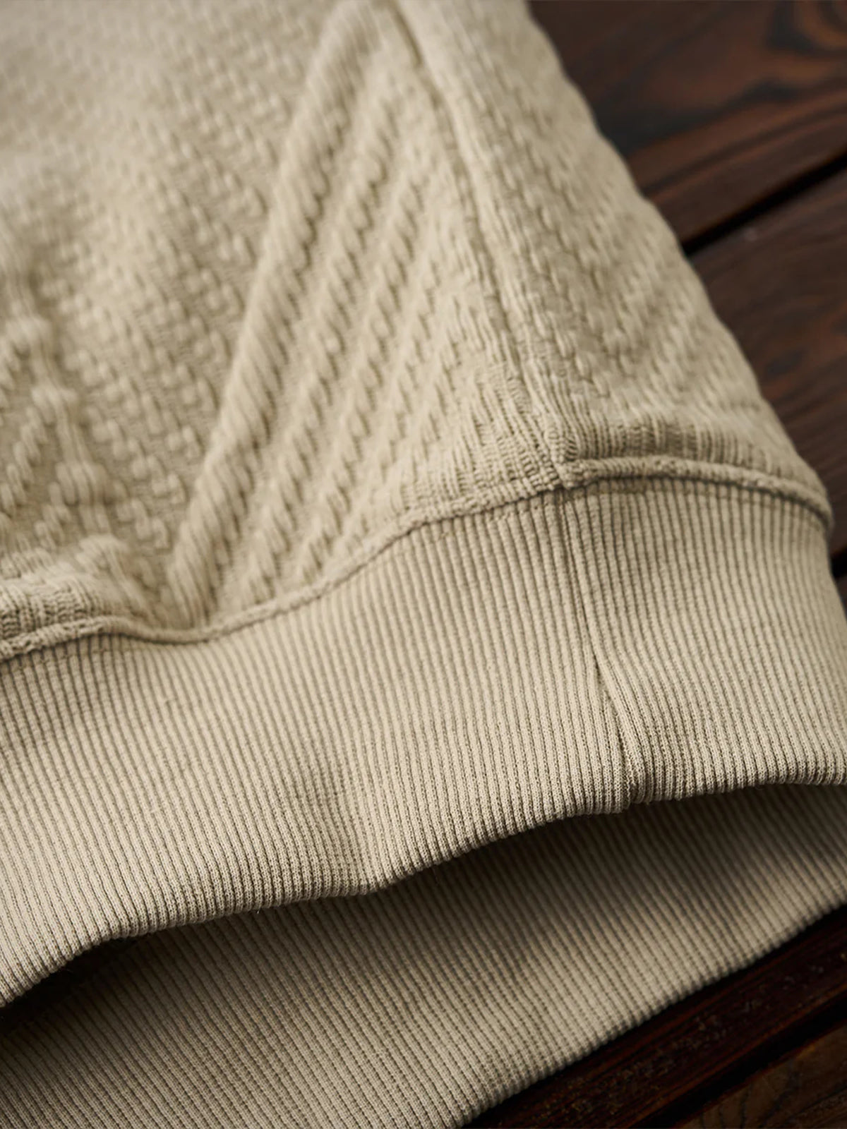 Crew-neck design suitable for casual styling. Ribbed material is used on the cuffs, hem, and neckline, providing both a snug fit and warmth.