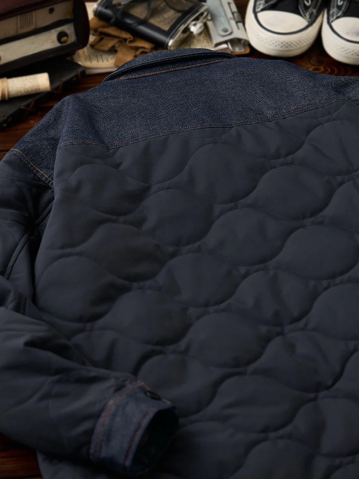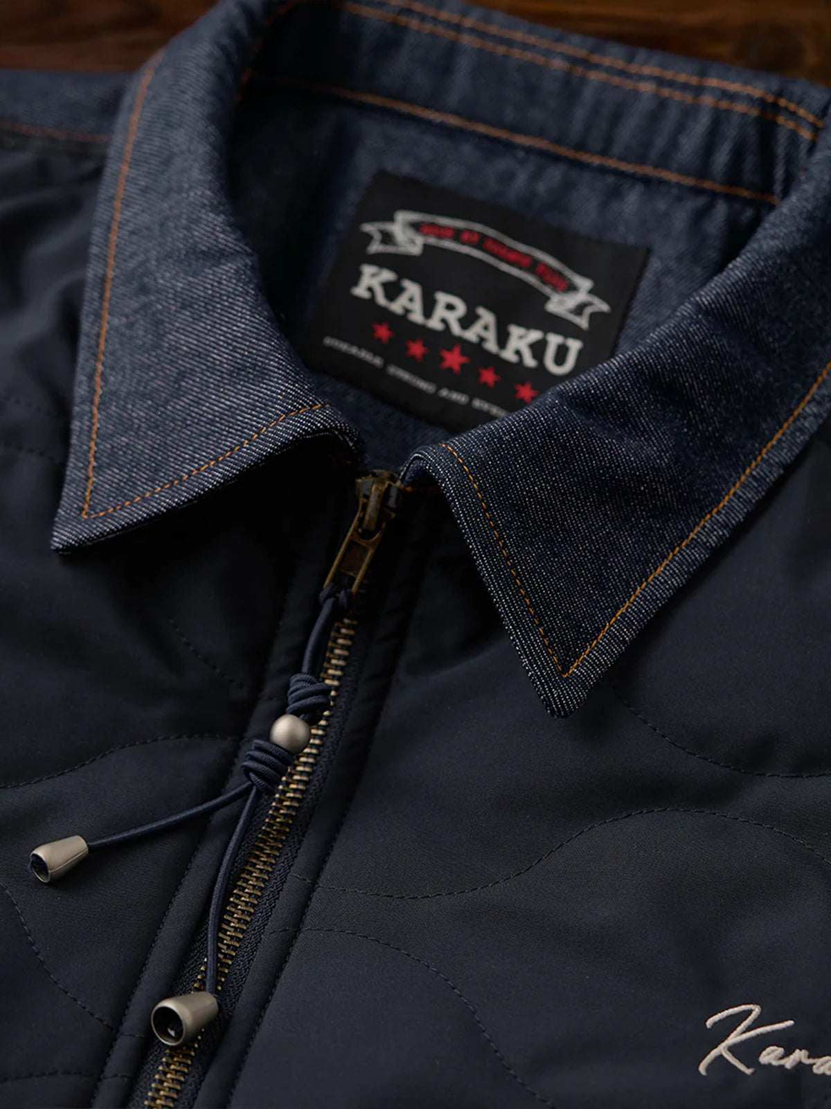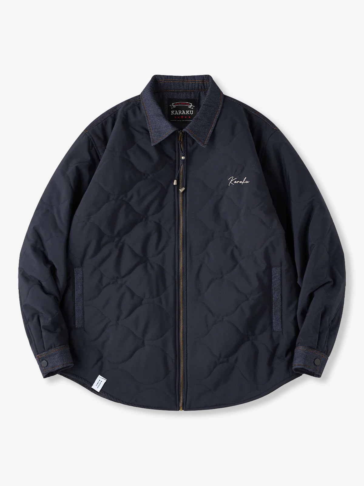 [Pre-Order] Quilted Padded Jacket with ‘KaraKu’ Embroidered Logo and Denim Panels
