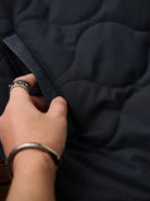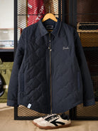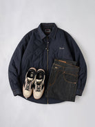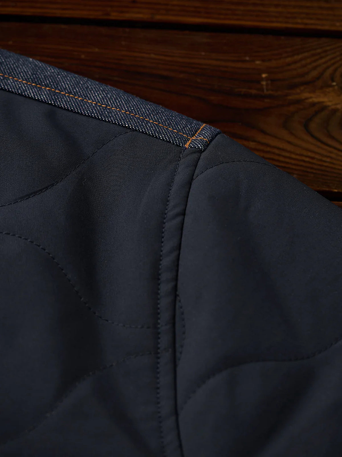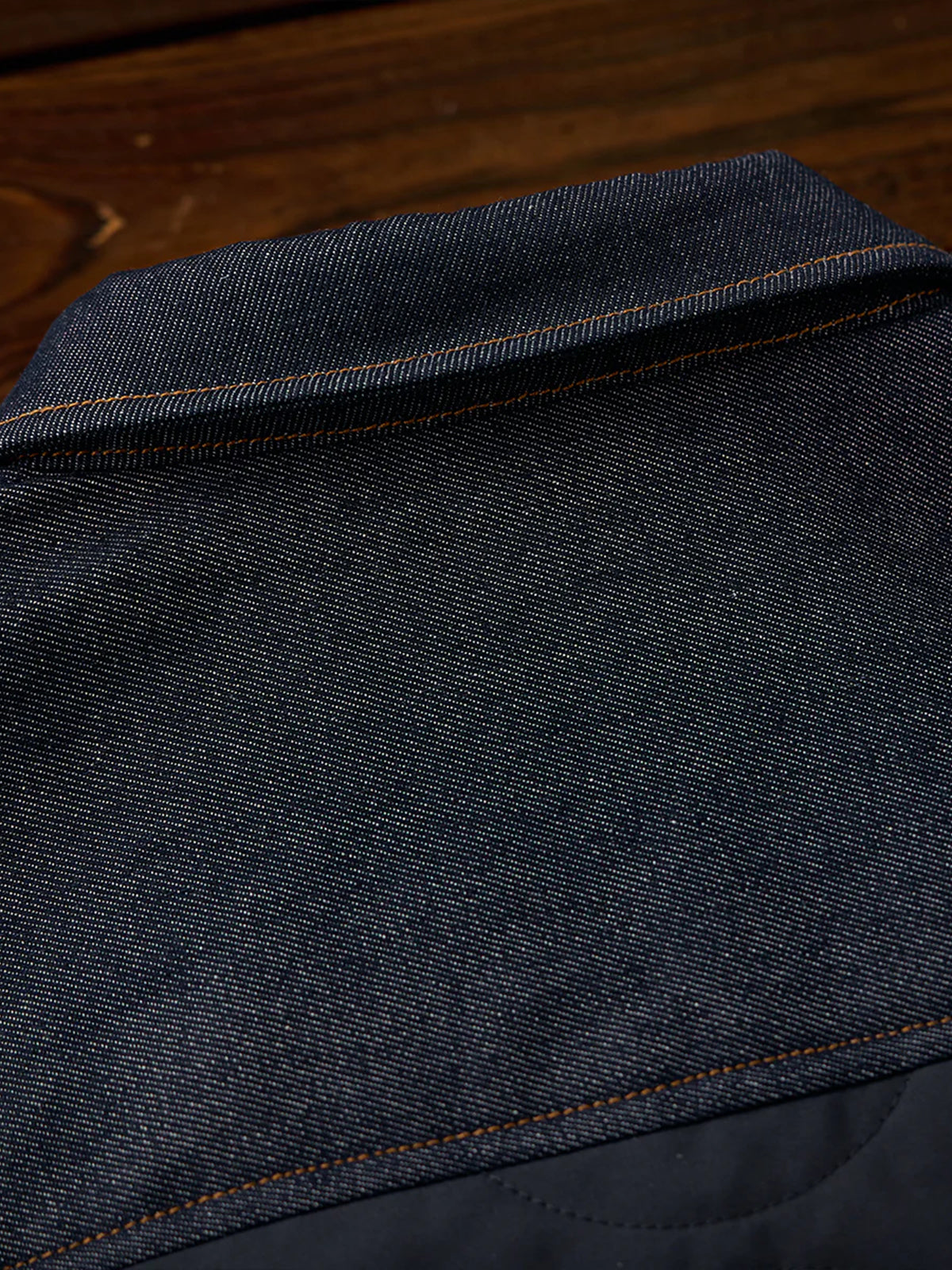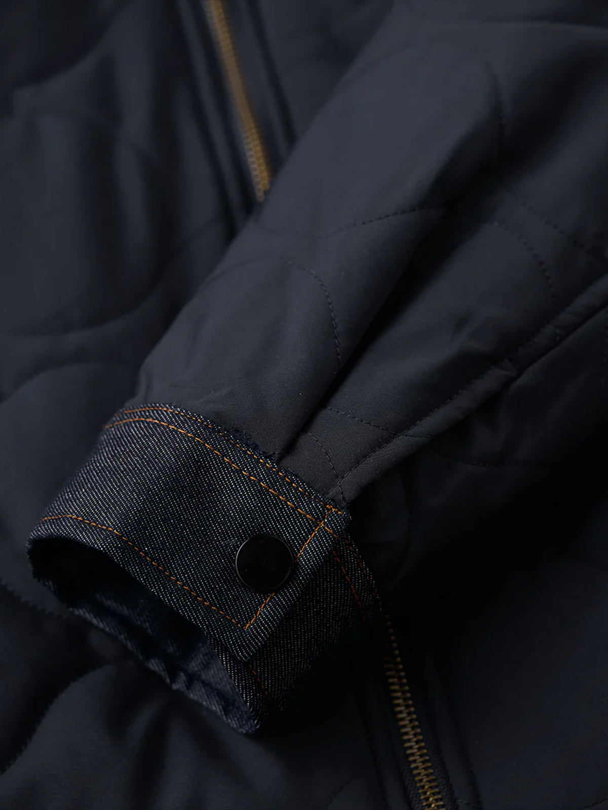 [Pre-Order] Quilted Padded Jacket with ‘KaraKu’ Embroidered Logo and Denim Panels