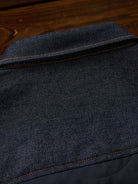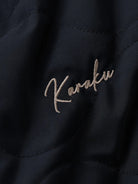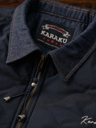 A subtle embroidered “Karaku” logo is placed on the left chest, creating a simple yet refined accent that maintains overall harmony as a minimal design element. Denim is used on the collar, shoulders, cuffs, and pocket areas—locations prone to wear. The shoulder paneling not only adds a visual accent but also enhances the jacket’s silhouette.