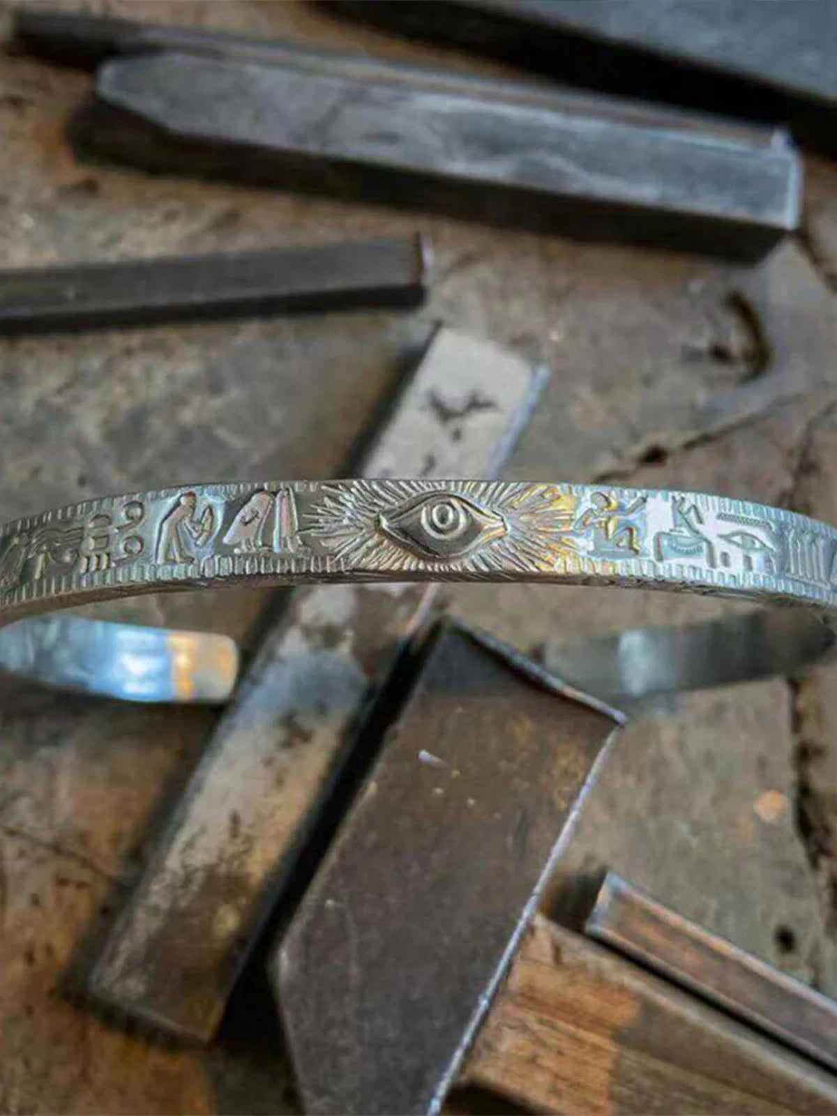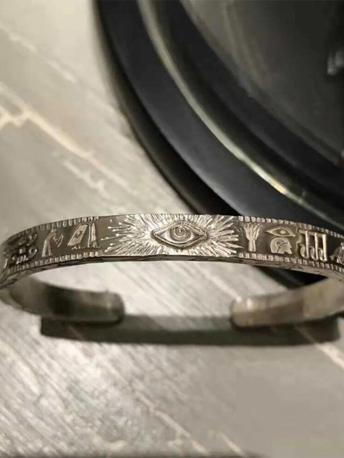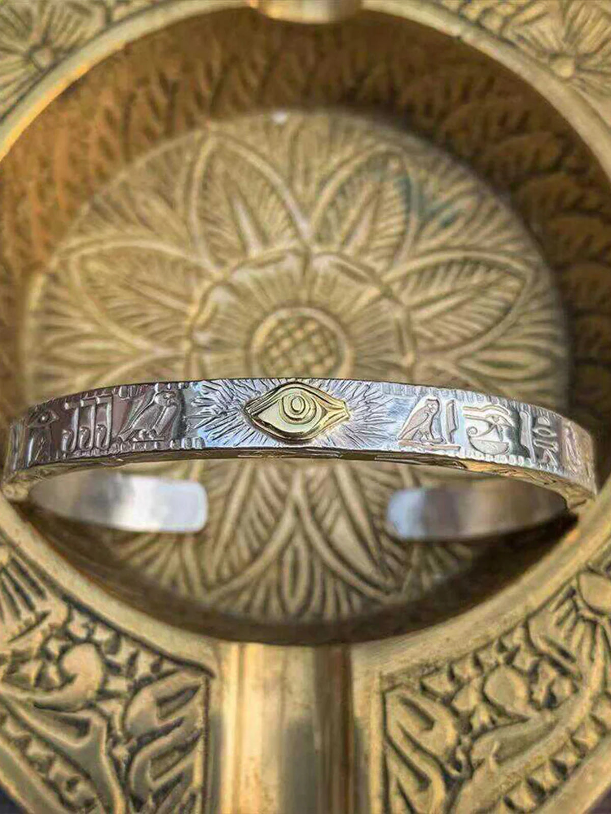 S925 Silver-Plated “Eye of Horus” Egyptian-Style Engraved Bracelet