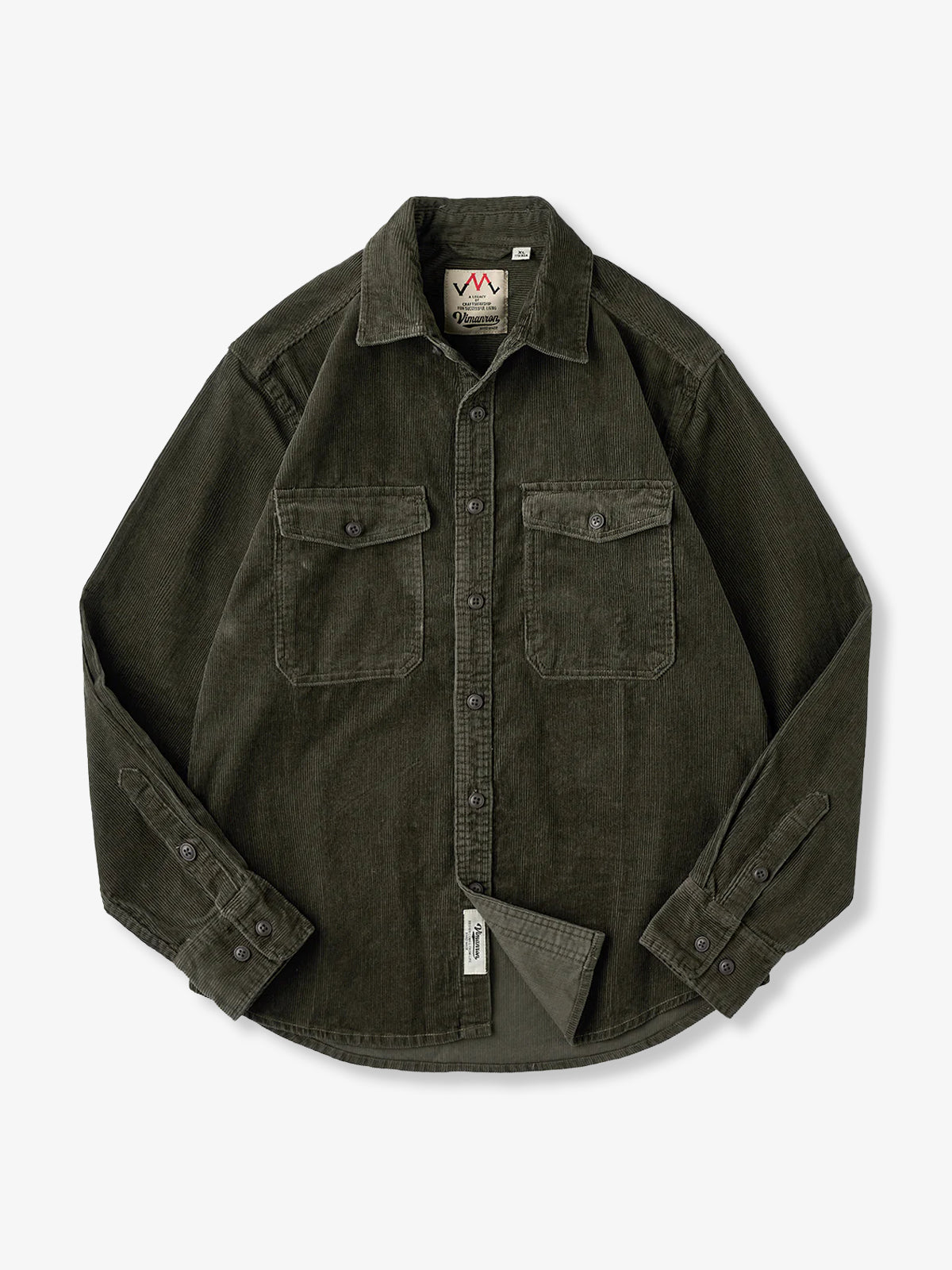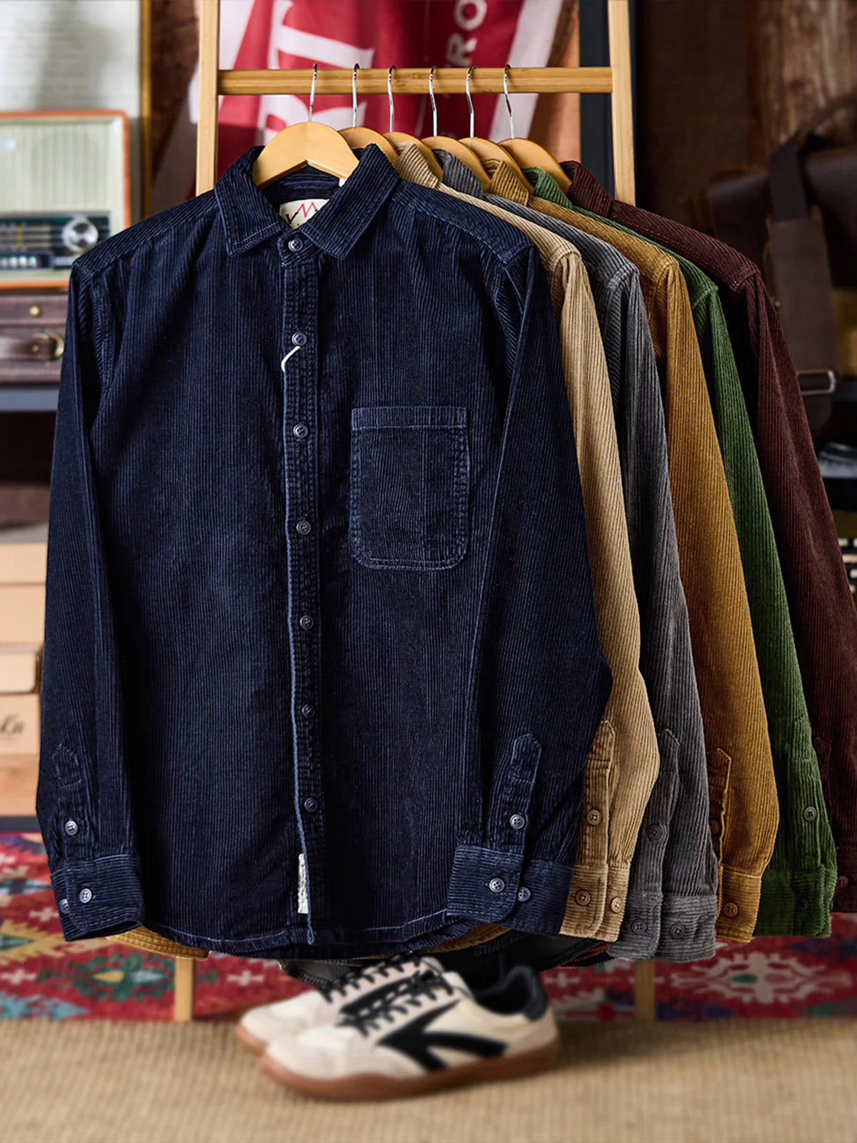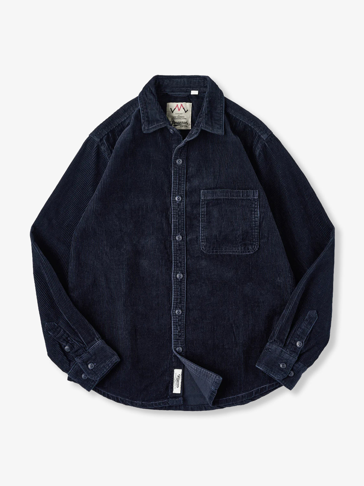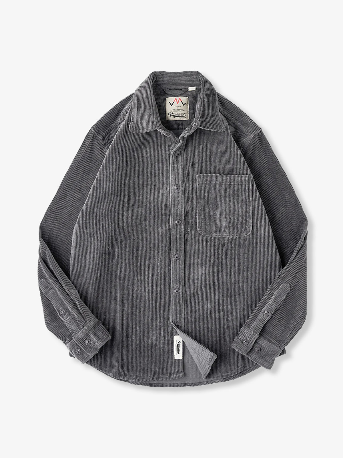 Corduroy Long-Sleeve Shirt with Single Pocket