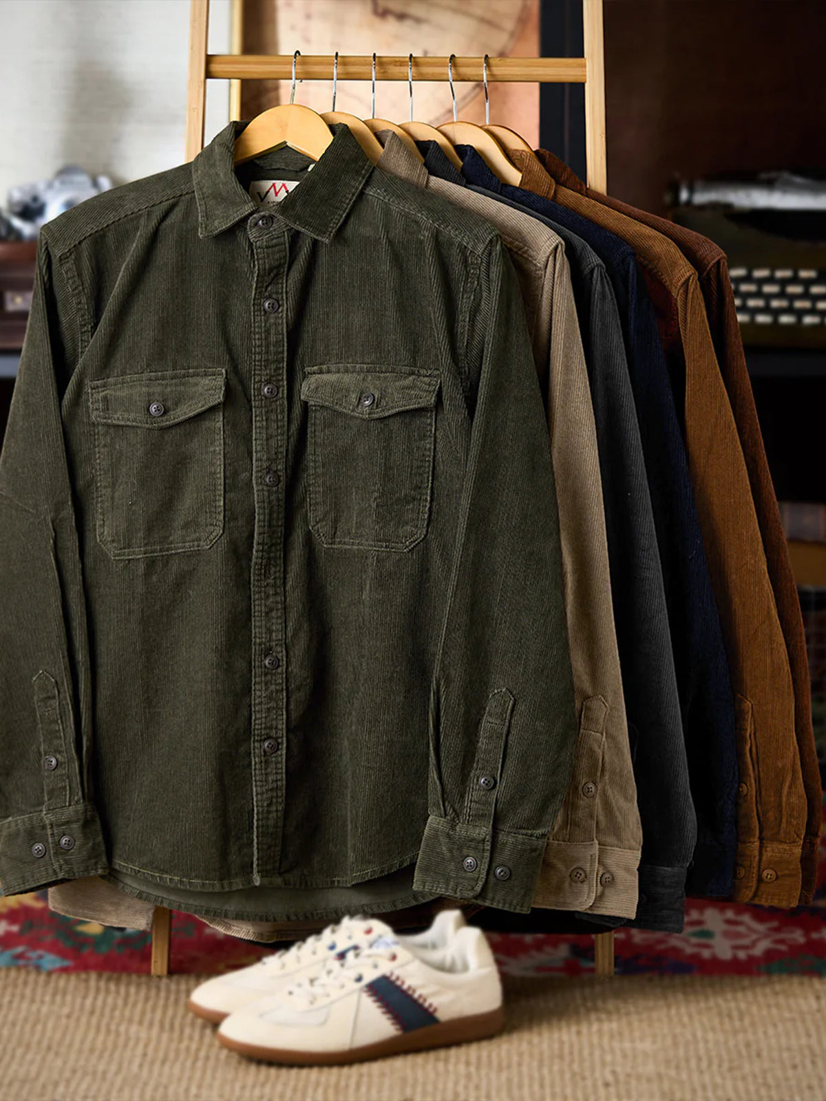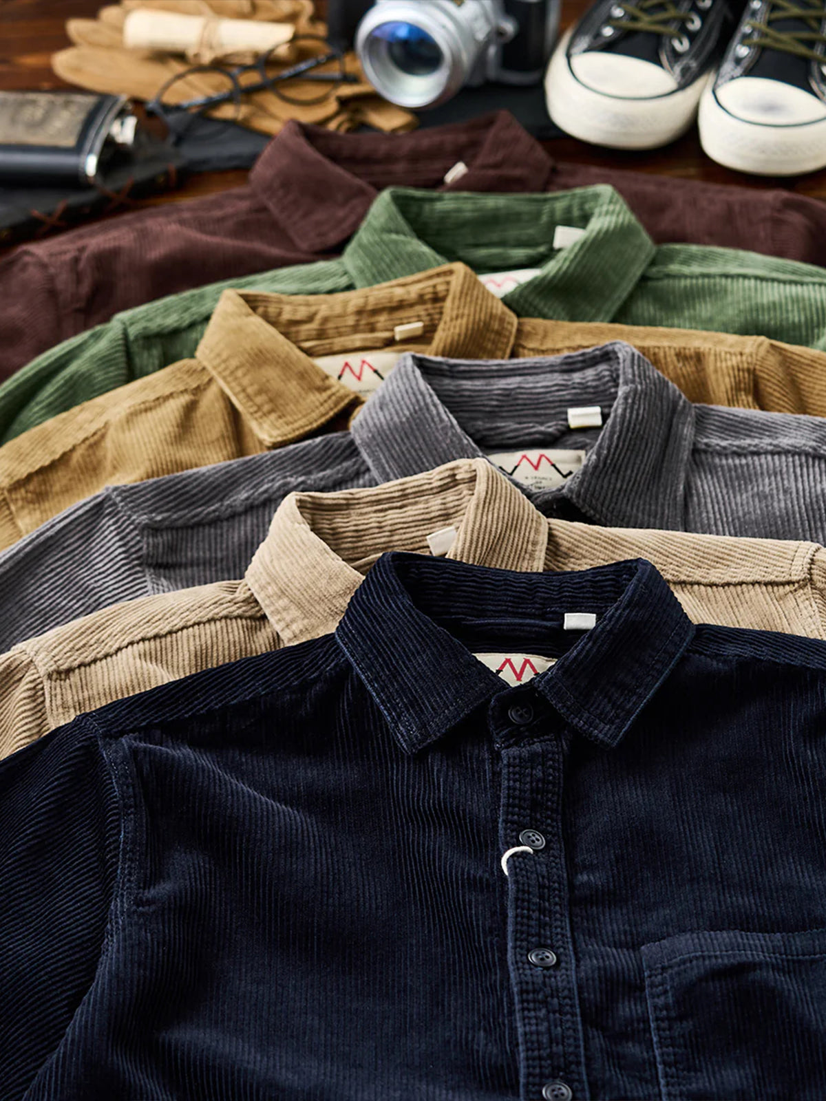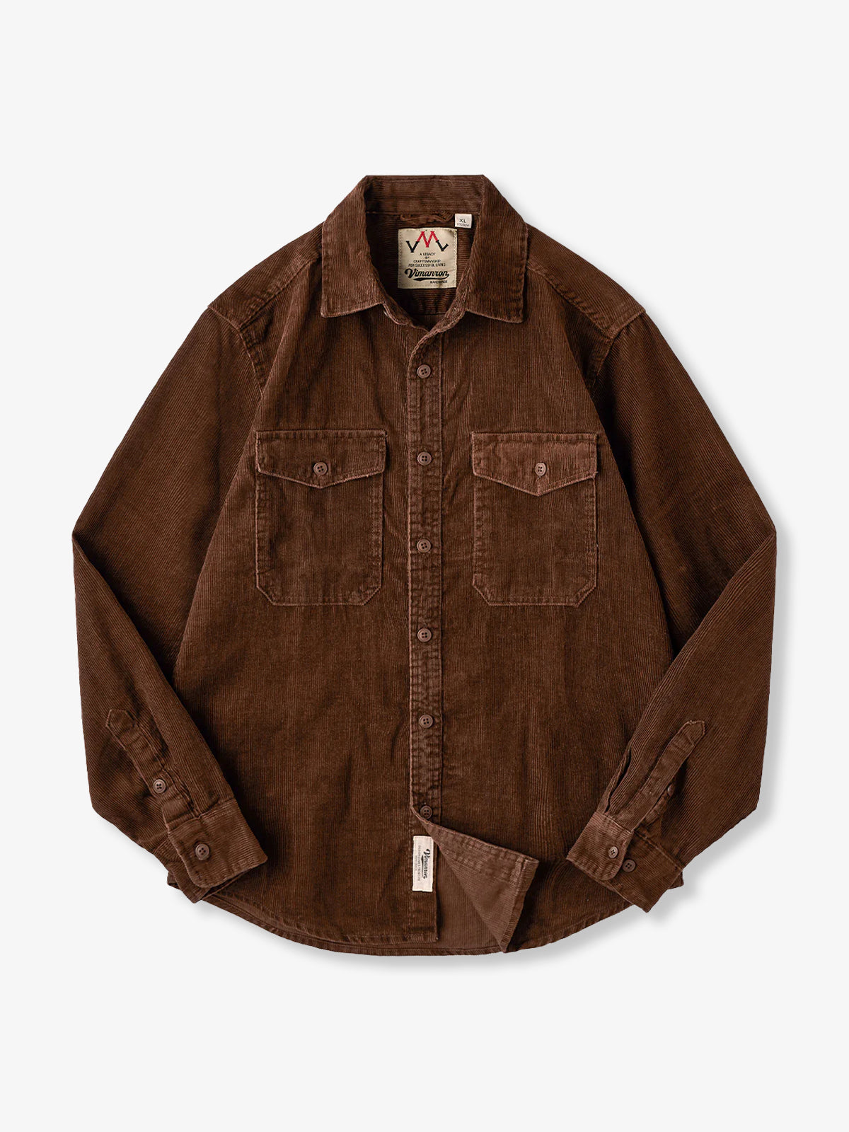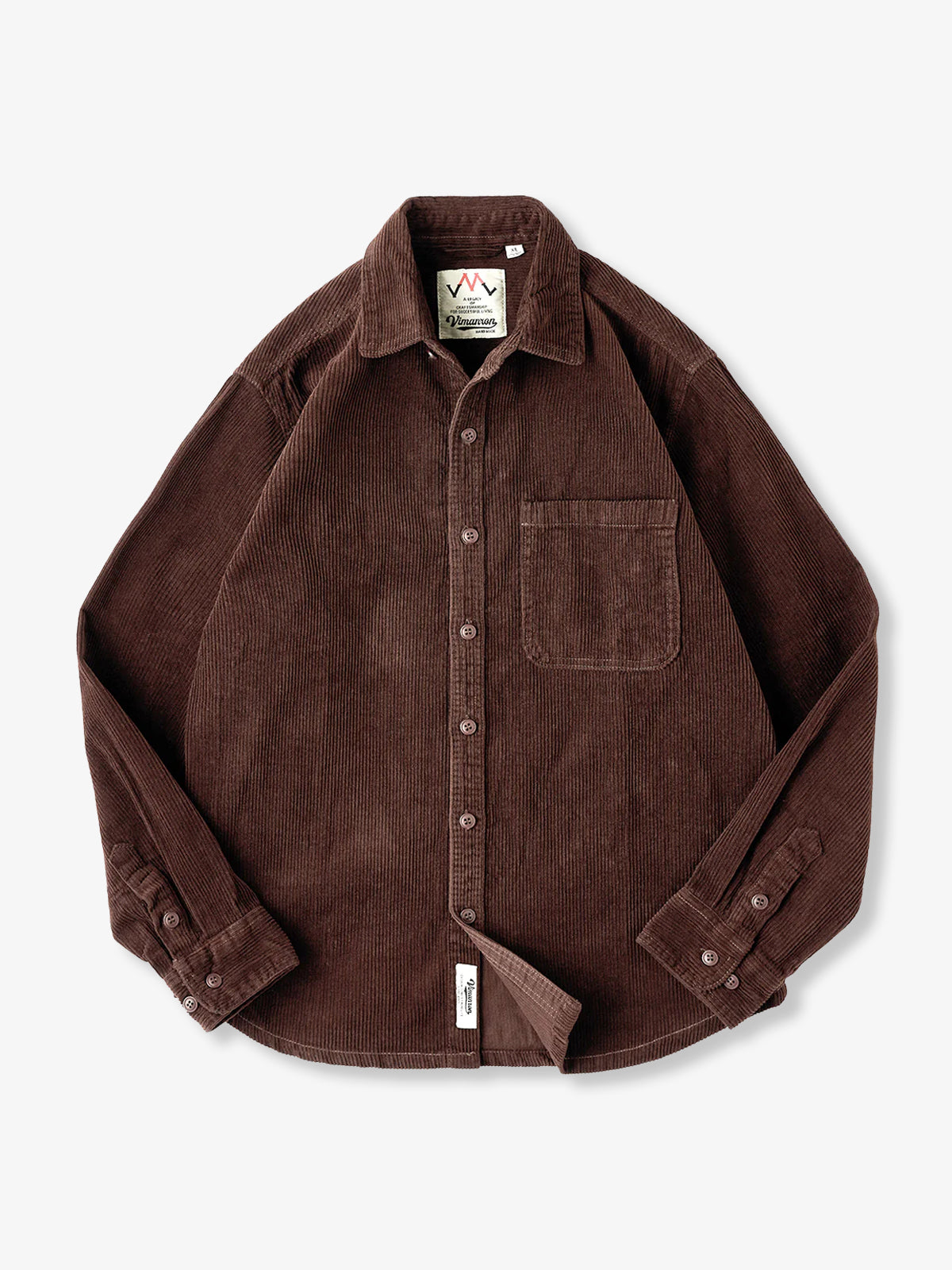Corduroy Long-Sleeve Shirt with Single Pocket