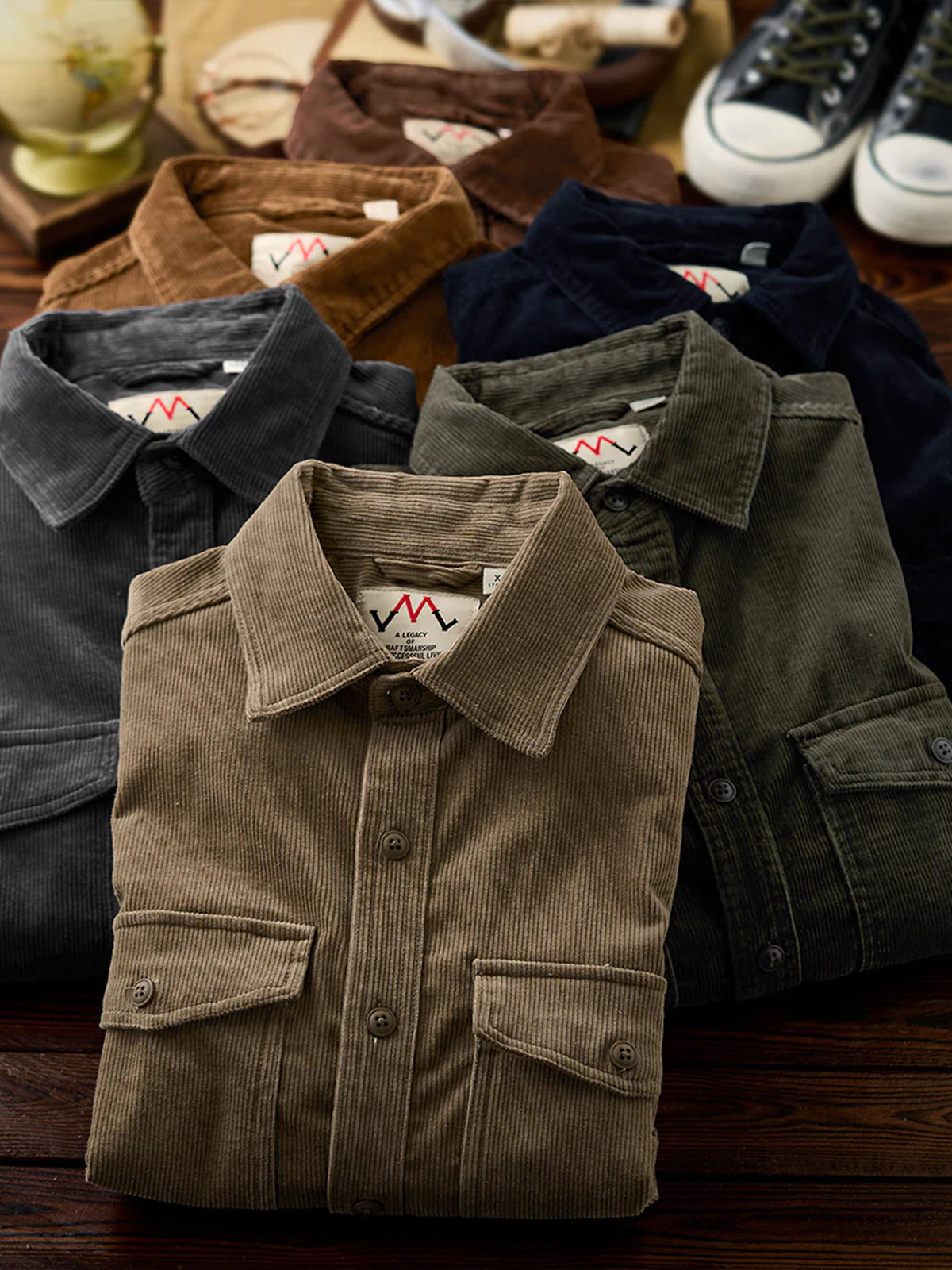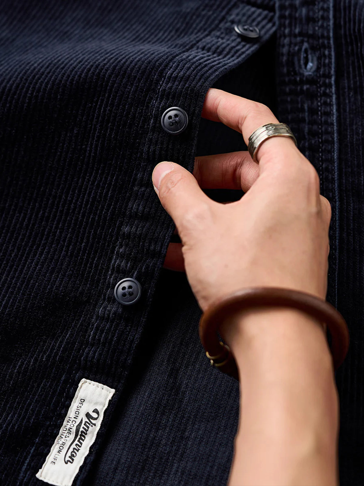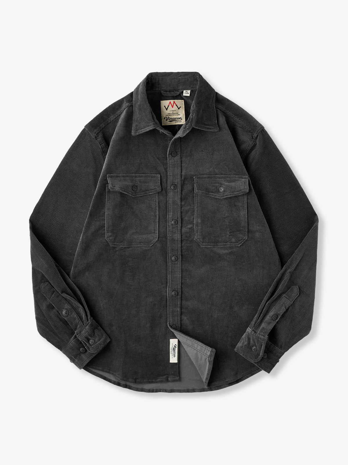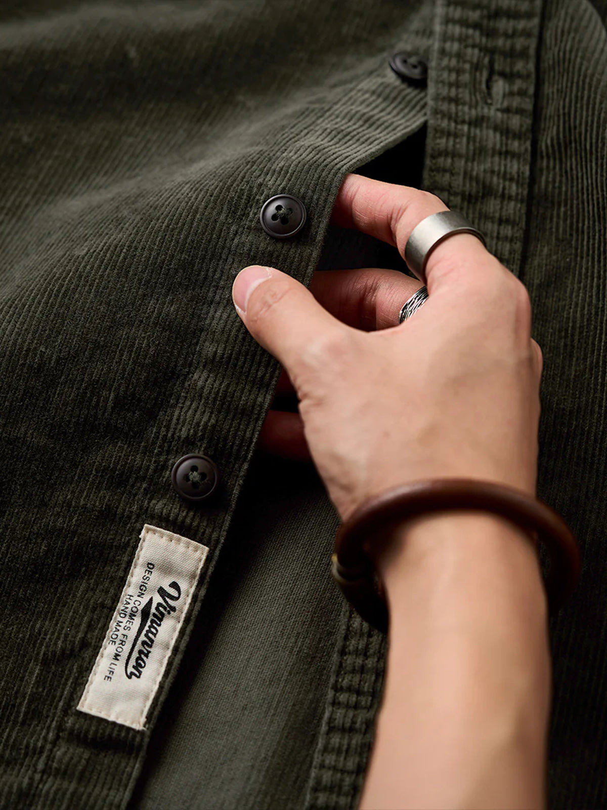 Corduroy Long-Sleeve Shirt with Single Pocket