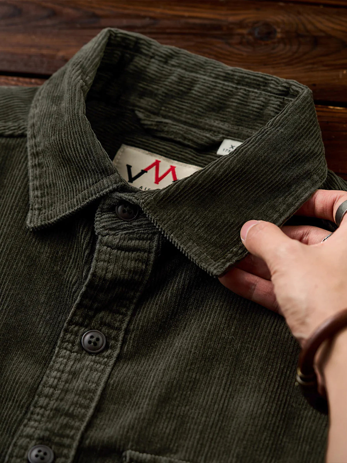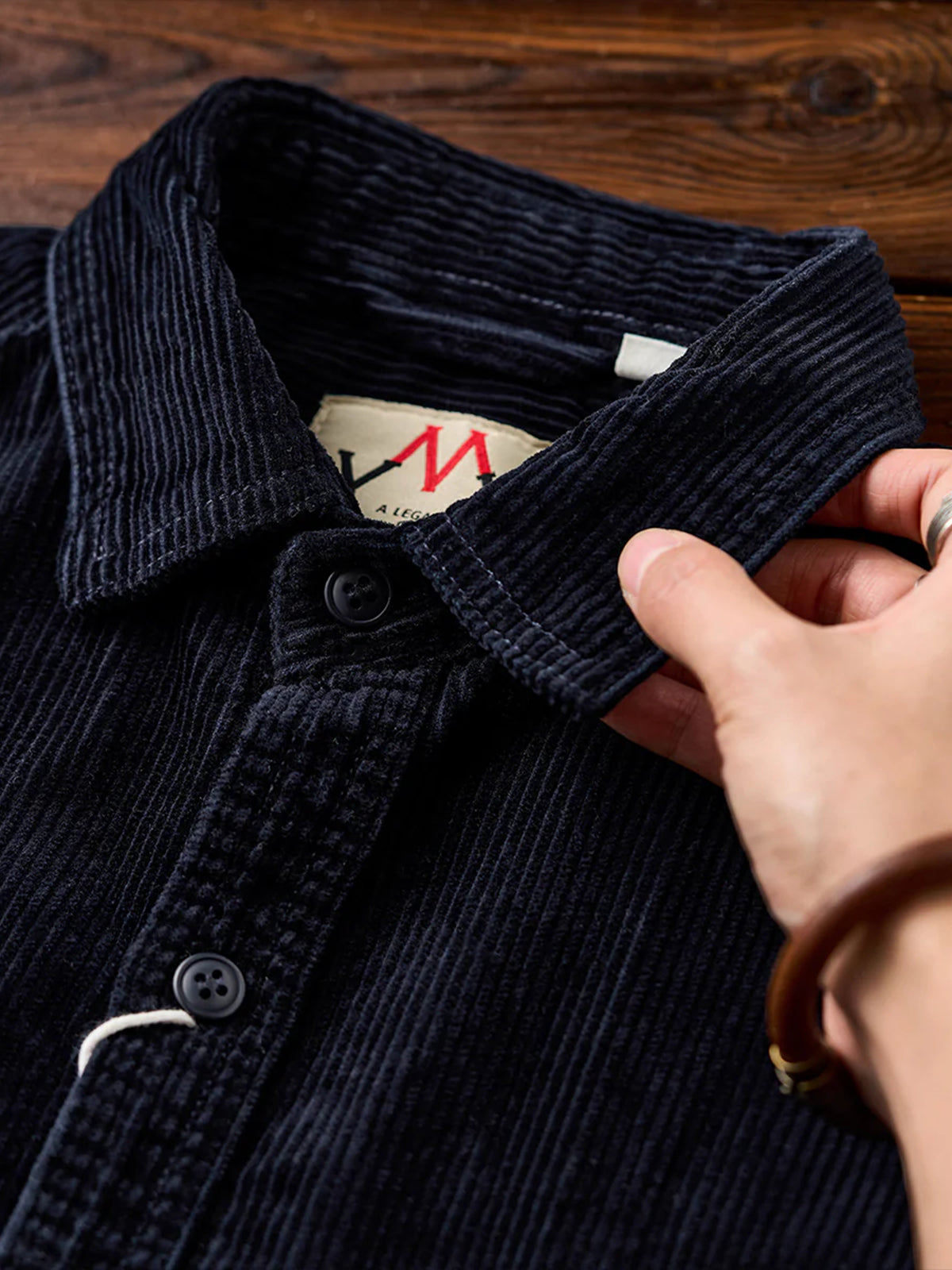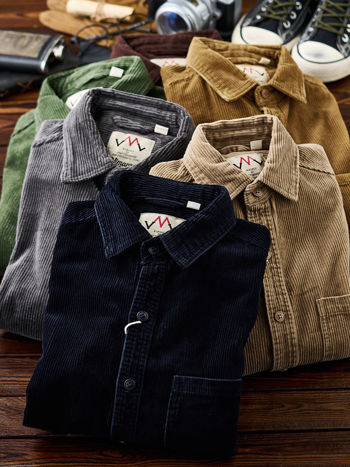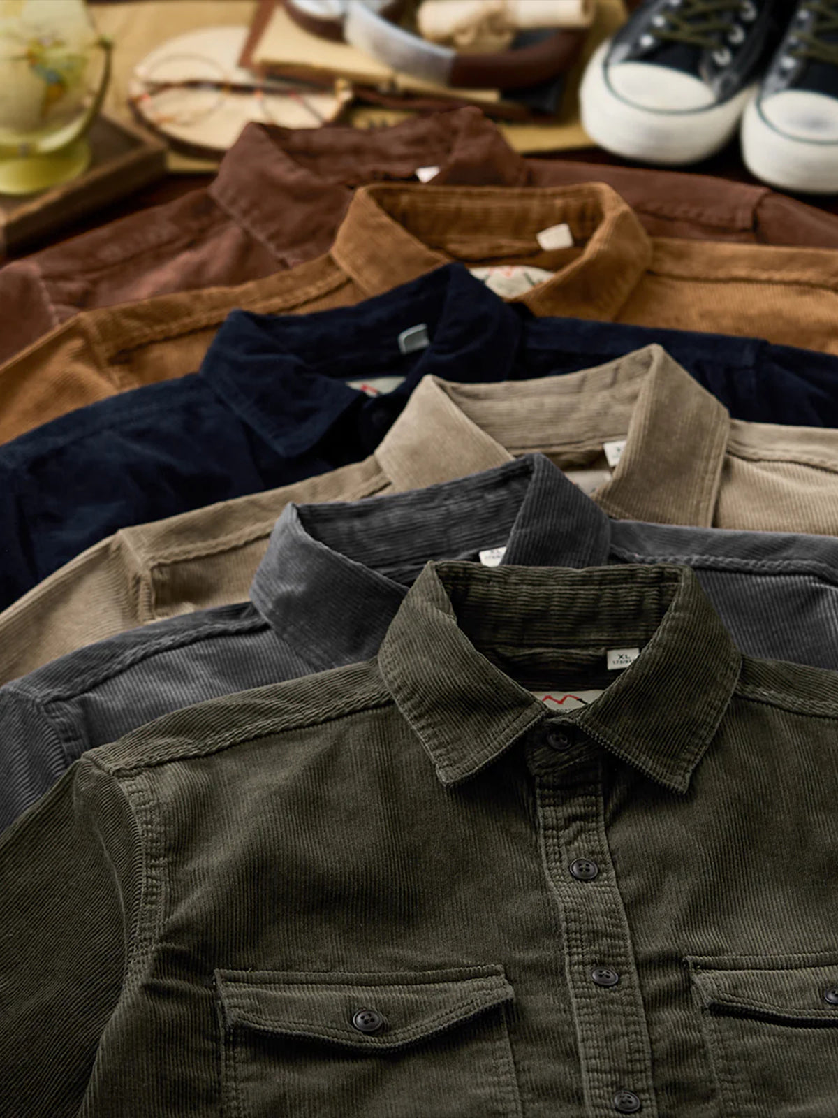 Corduroy Long-Sleeve Shirt with Single Pocket