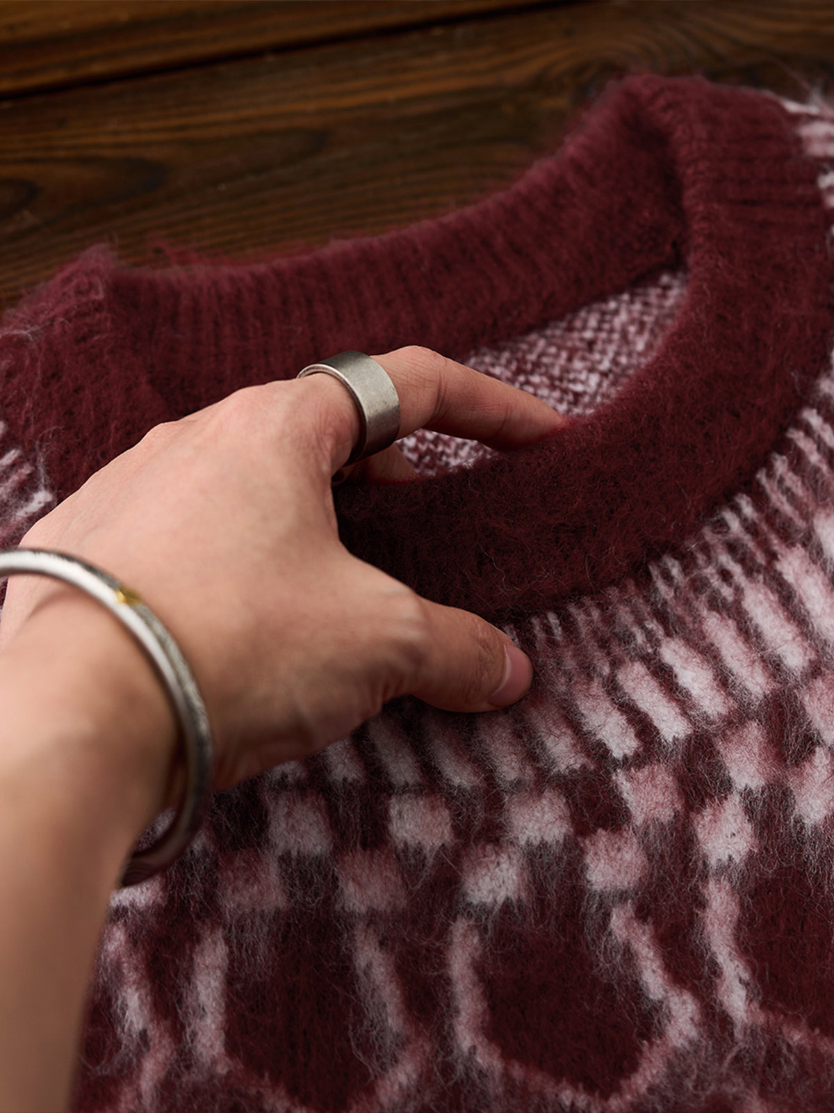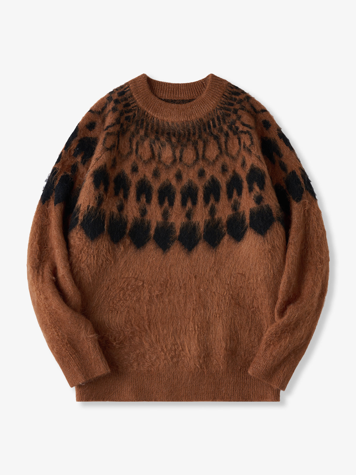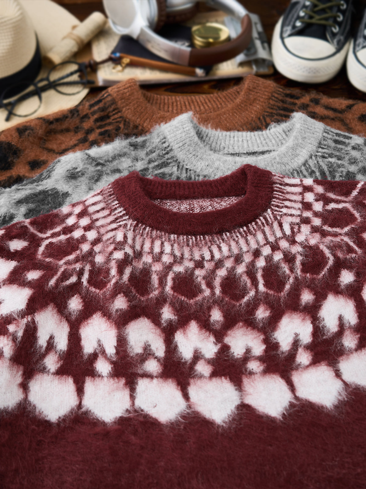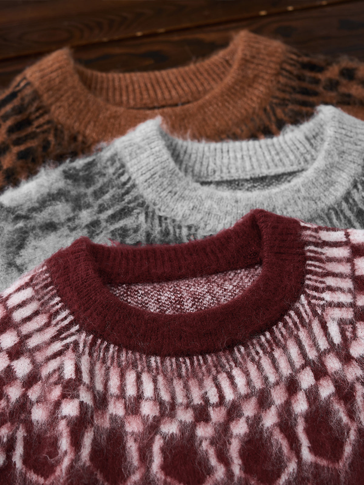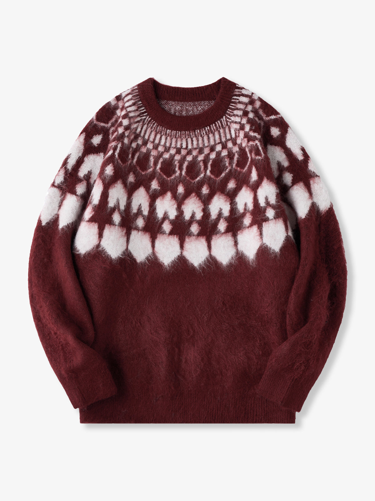 Geometric Pattern Jacquard Knit Crewneck Sweater