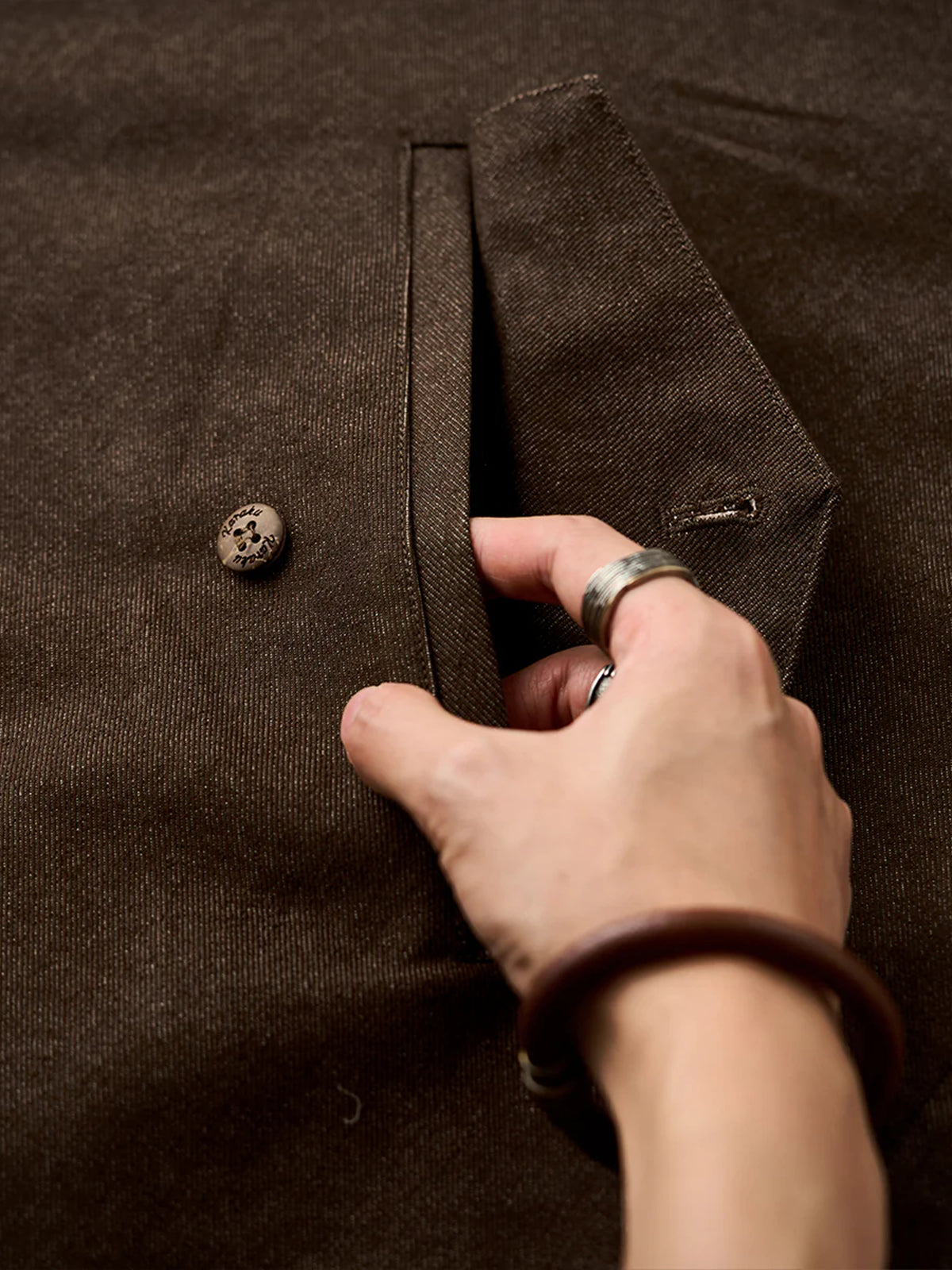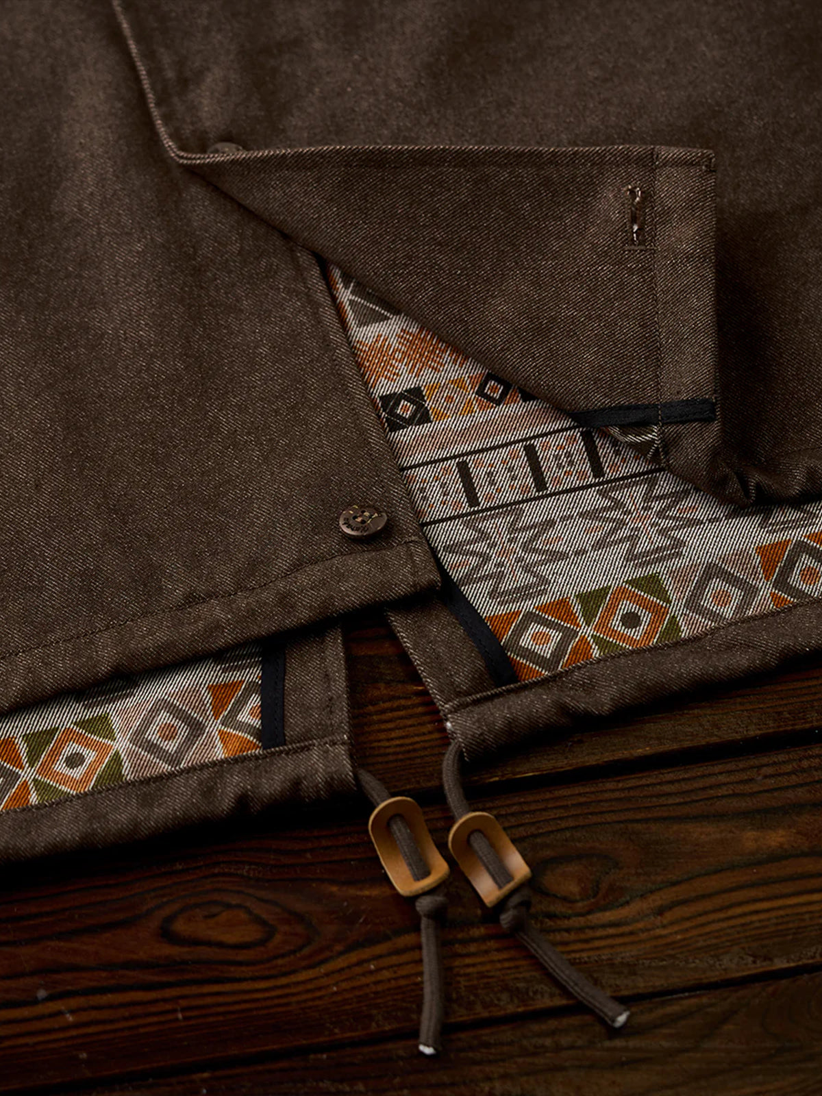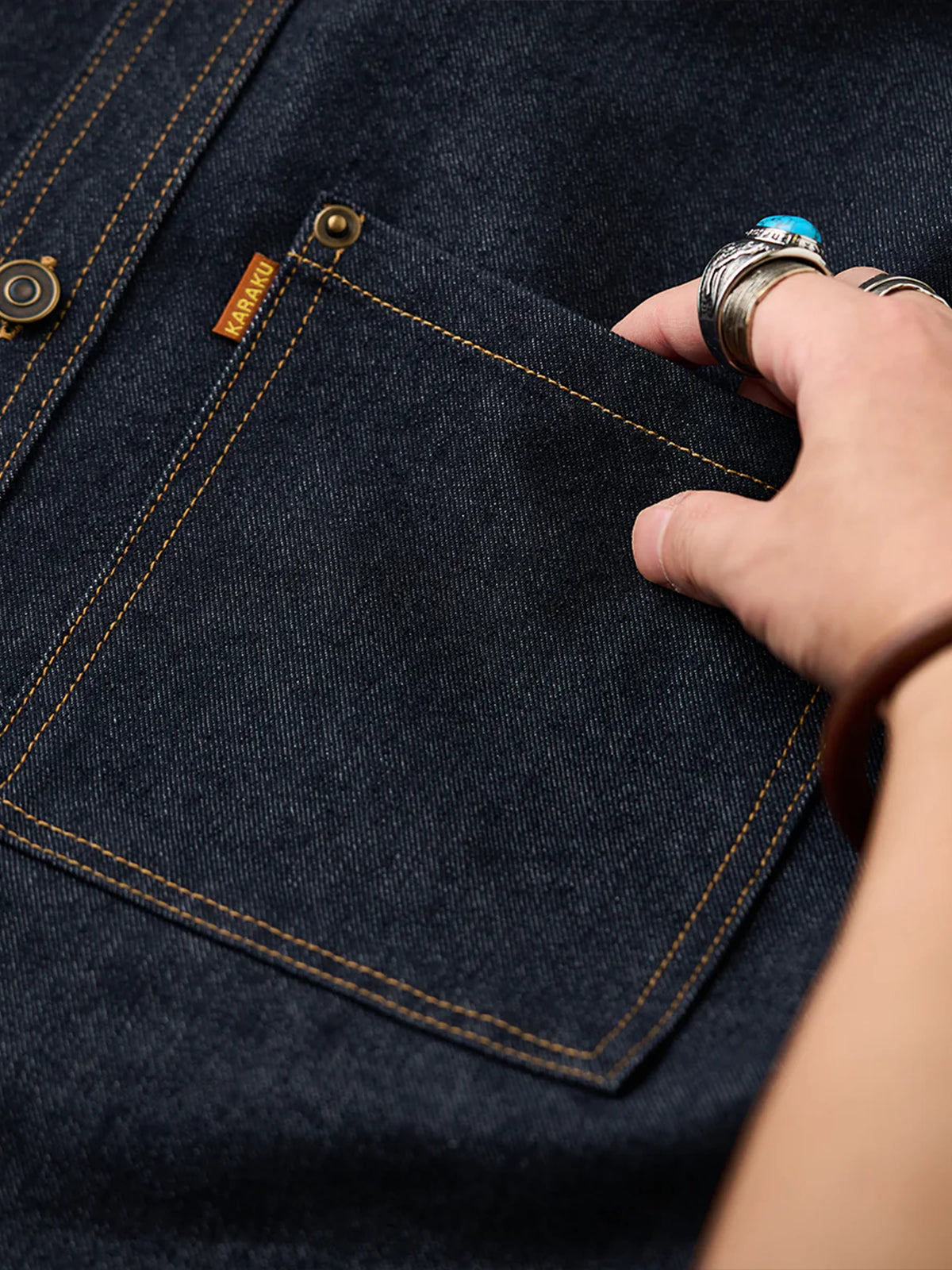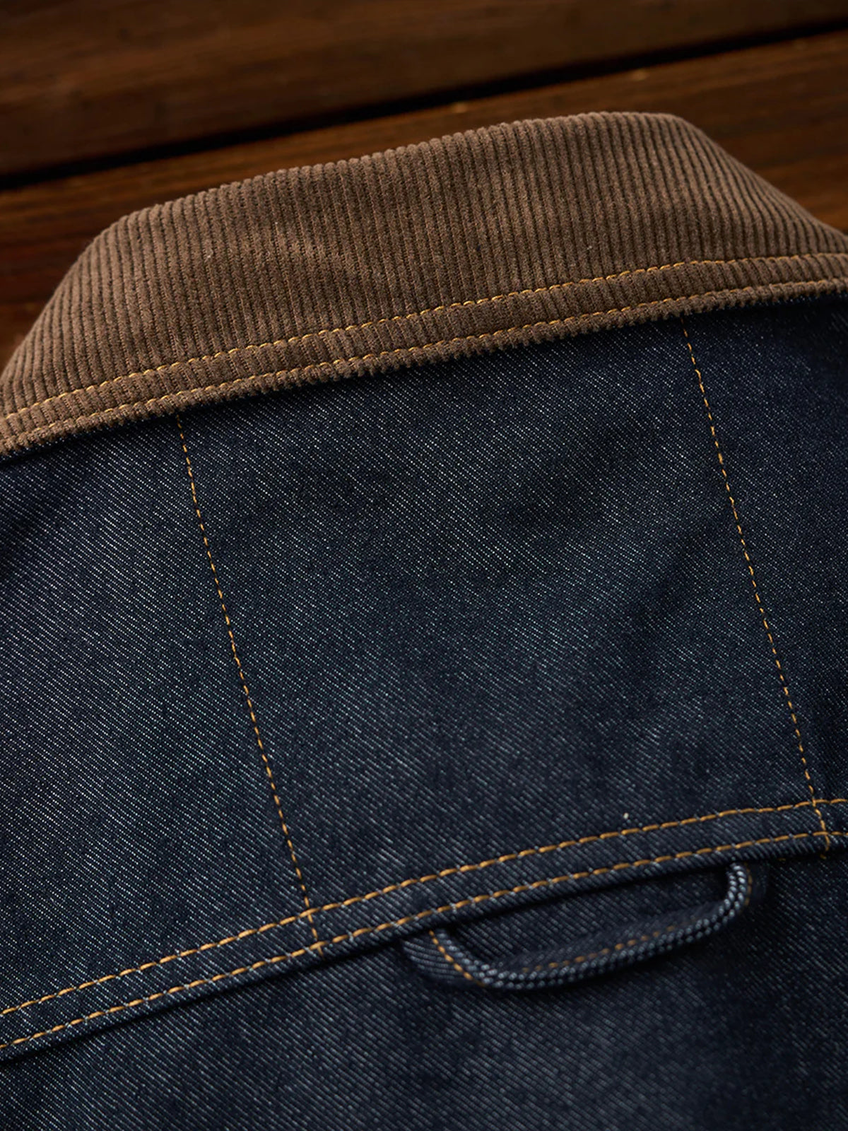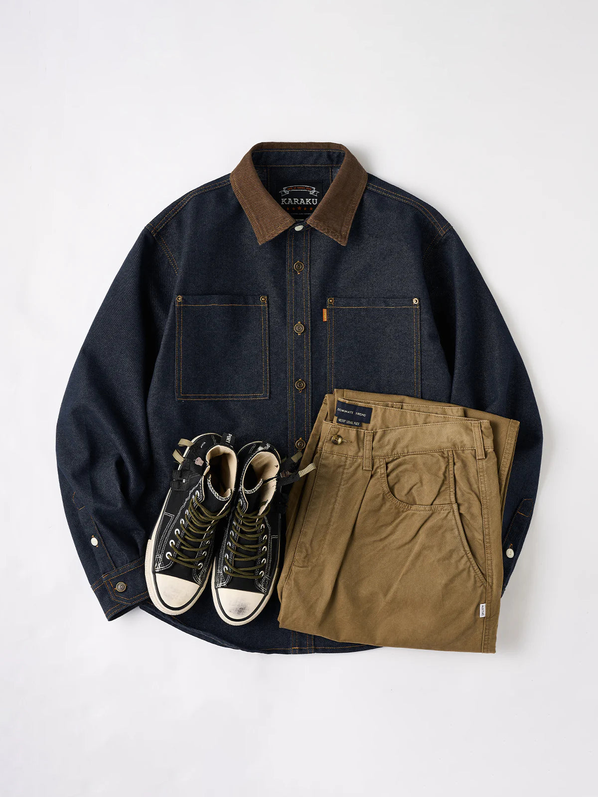 [Pre-Order] Corduroy Collar Denim Work Shirt with Ethnic Pattern Lining