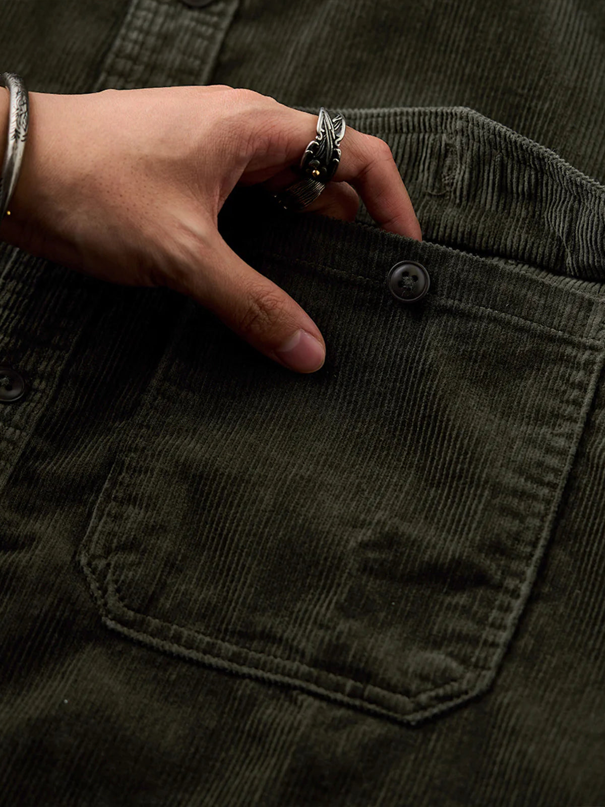 Fine-Wale Corduroy Long-Sleeve Shirt with Work Pockets