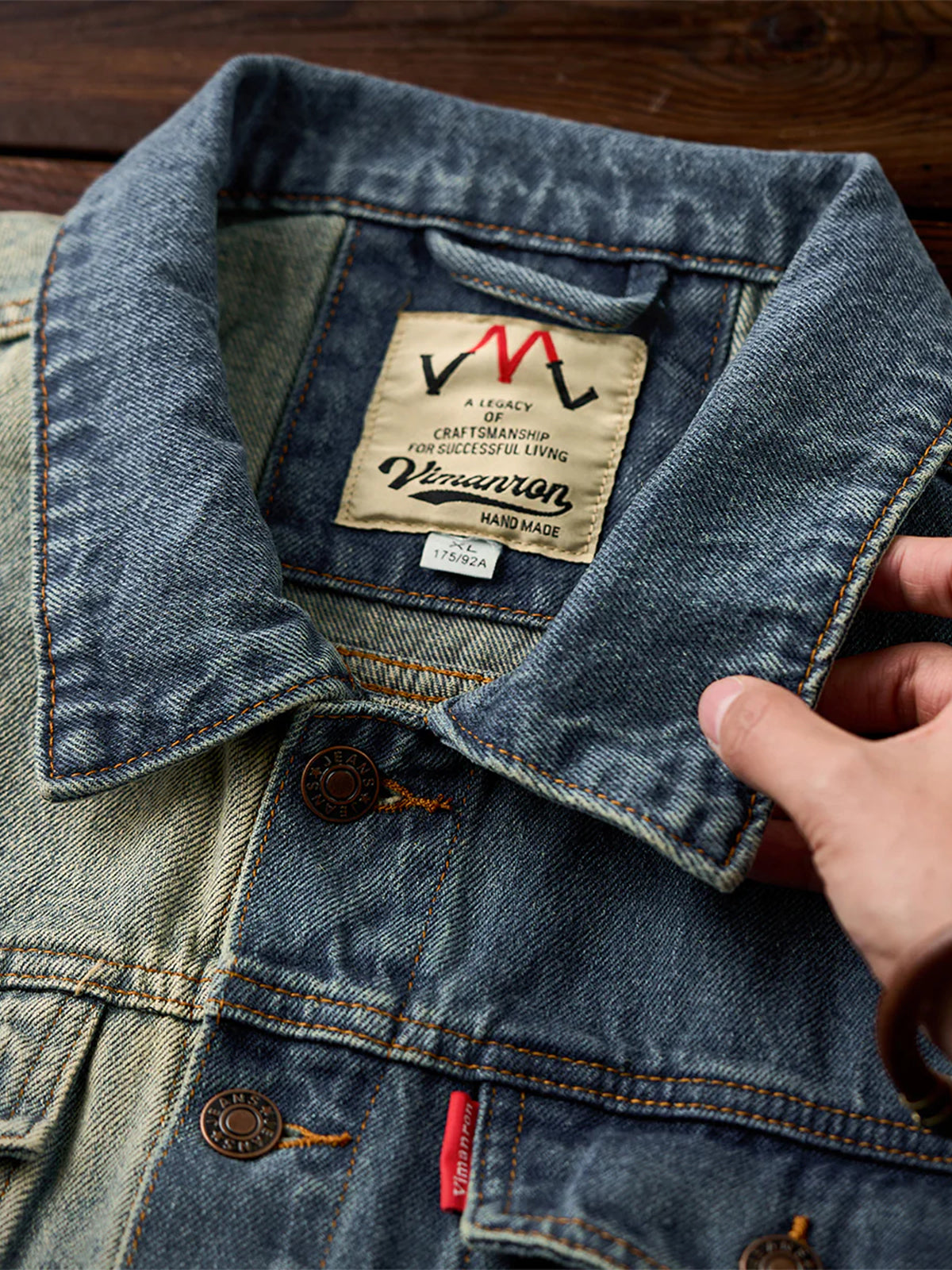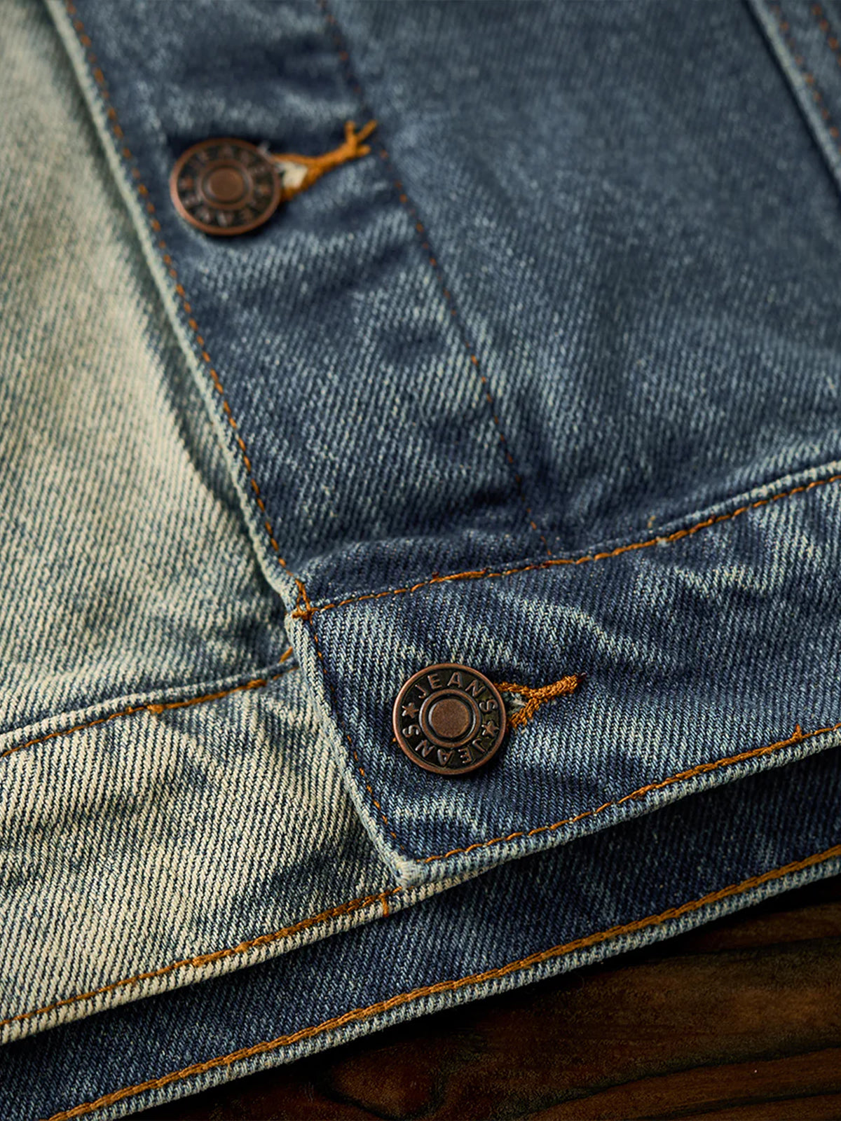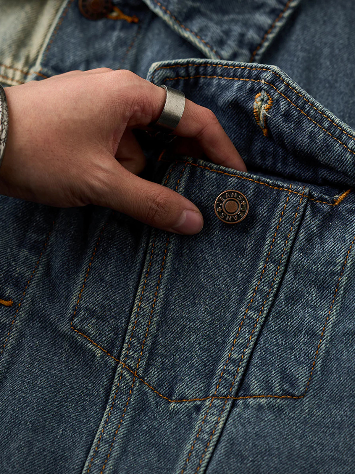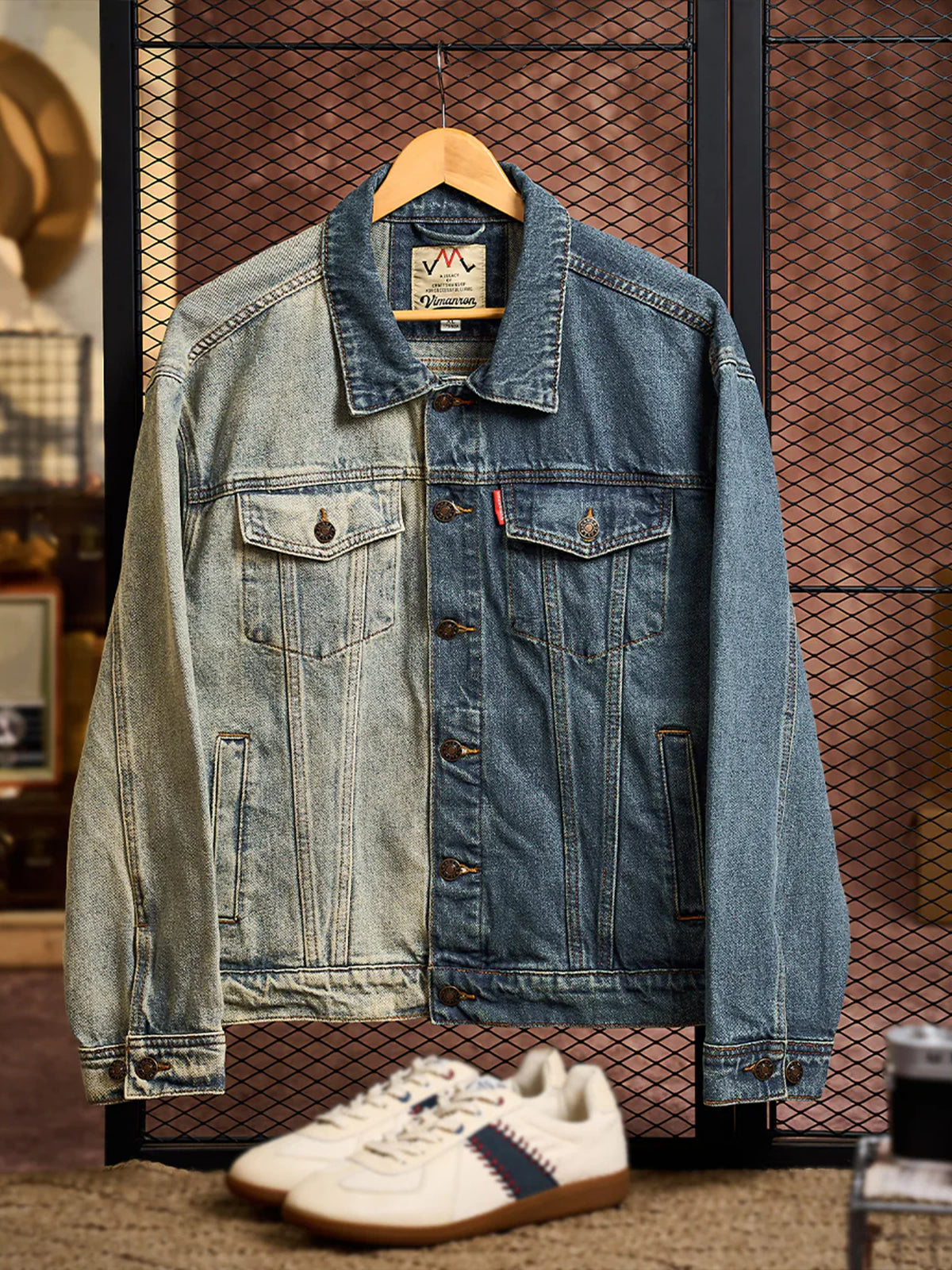 [Pre-Order] "STAY TRUE" Embroidered Patch Denim Collar Contrast Multi-Stripe Jacket