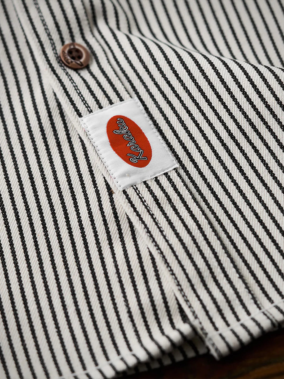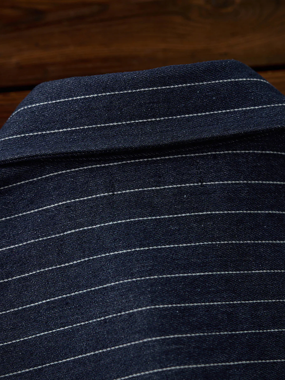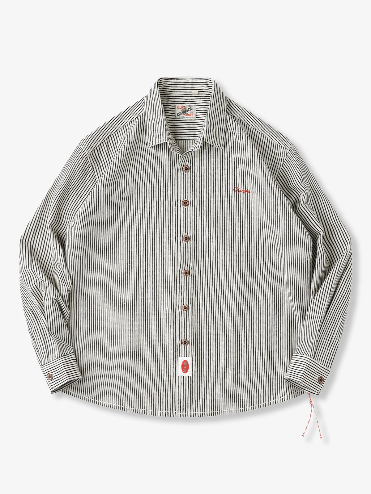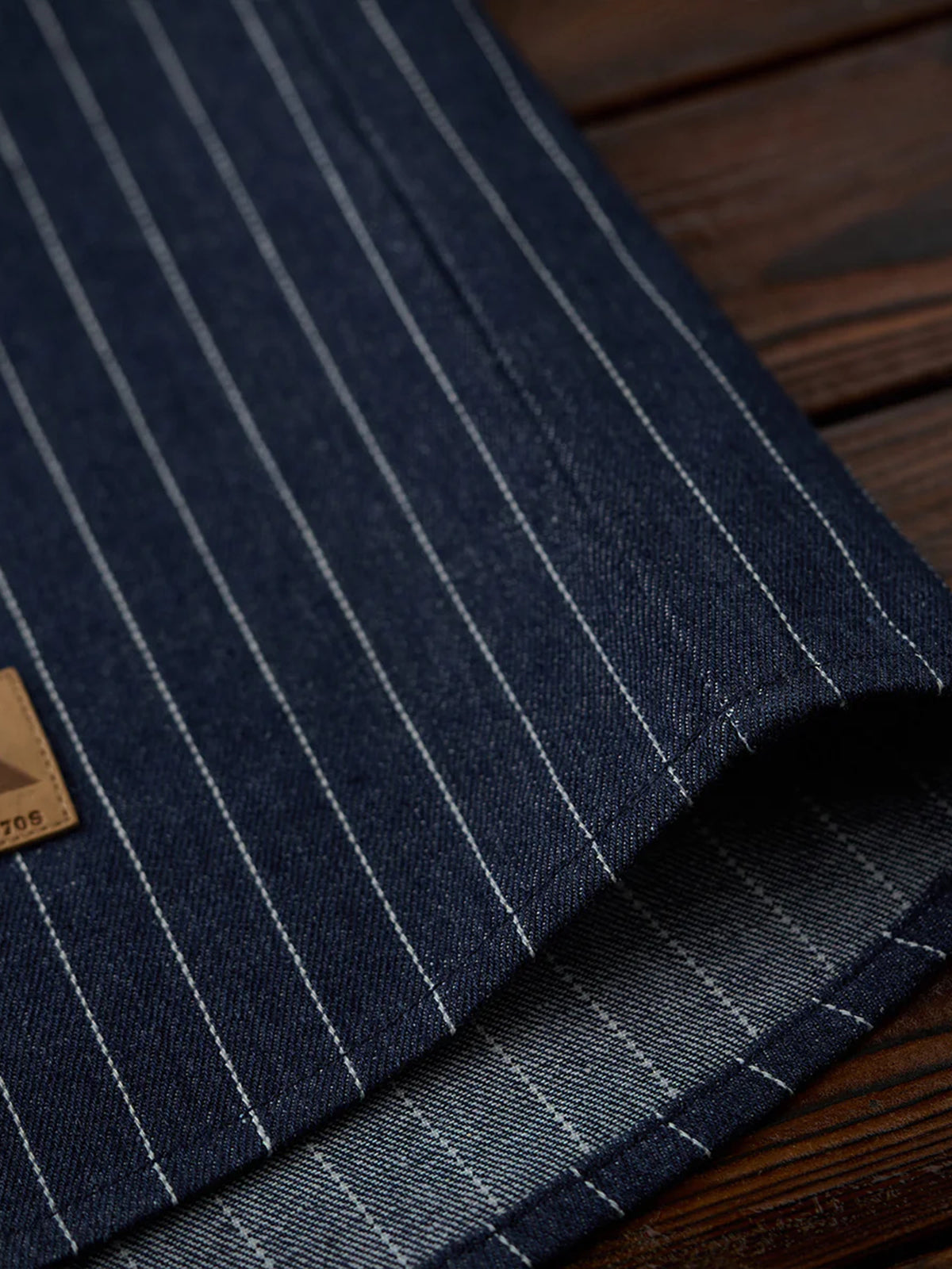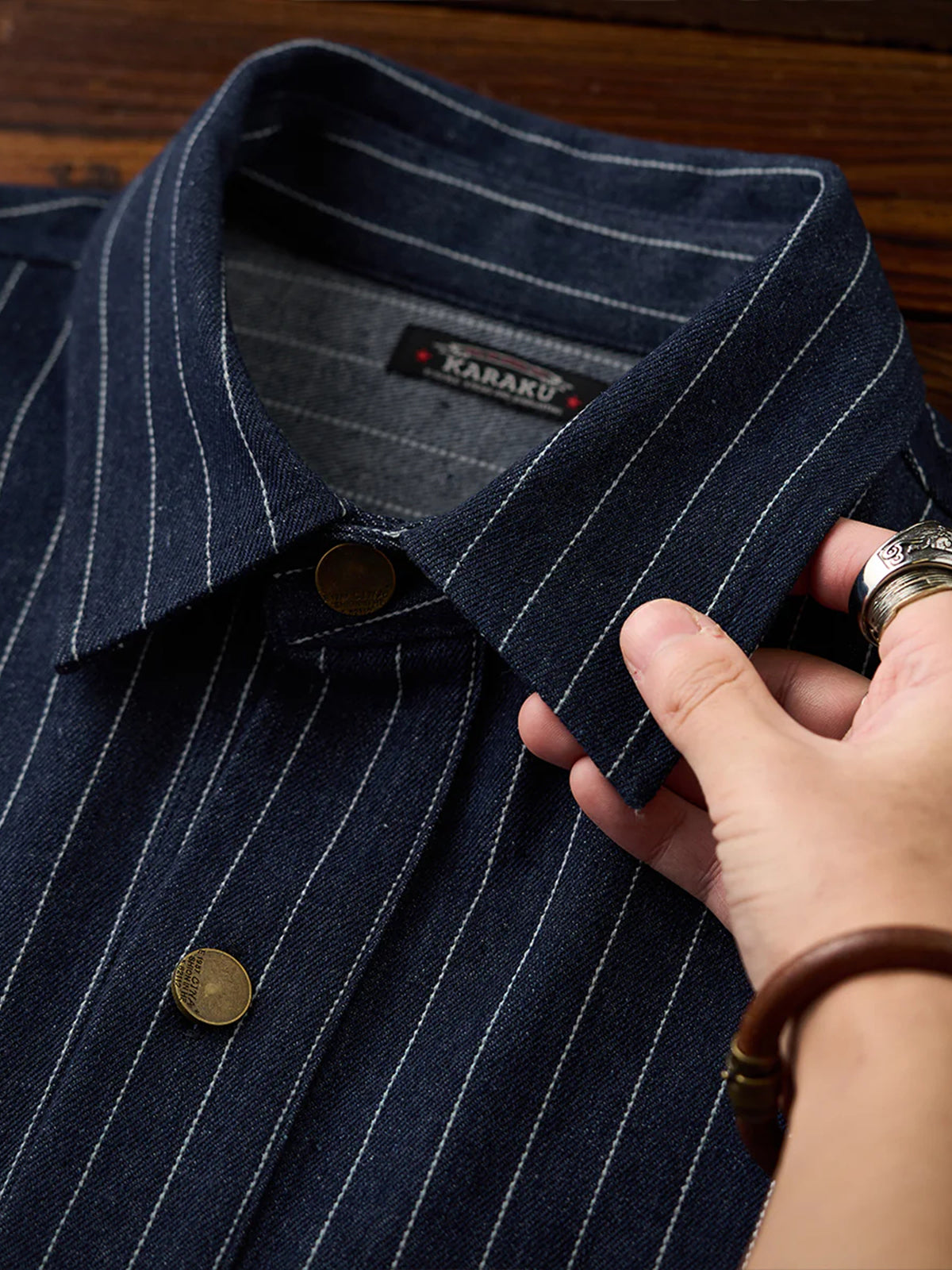 [Pre-Order] Striped Denim Pullover Shirt with Elbow Patches and Half Buttons