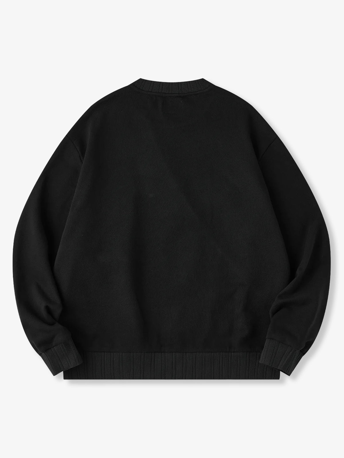 "STAY TRUE" Embroidered Patch Zigzag Jacquard Knit Sweatshirt