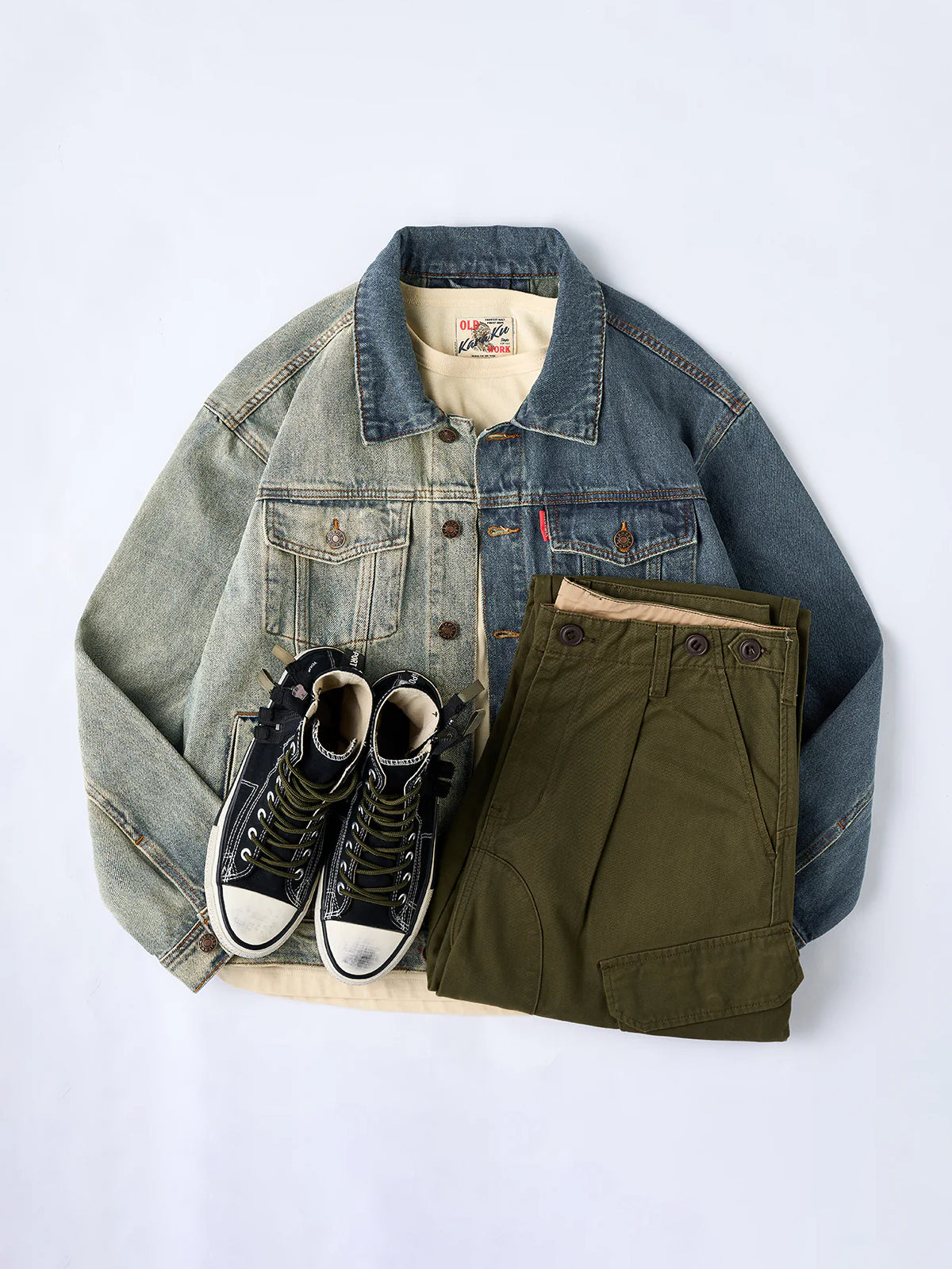 [Pre-Order] Washed Denim Shirt with Jacquard Paisley All-Over Pattern and Corduroy-Lined Sleeves