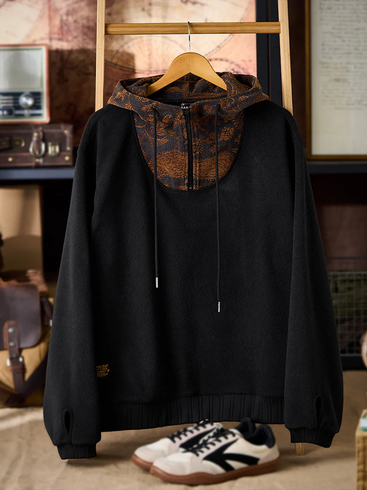 [Pre-Order] Half-Zip Fleece Hoodie with Paisley Chenille Panels