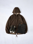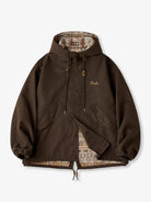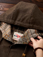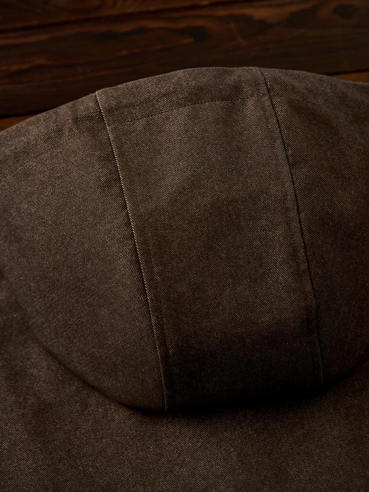 [Pre-Order] Denim Hooded Jacket with ‘Karaku’ Embroidered Logo and Ethnic-Pattern Lining