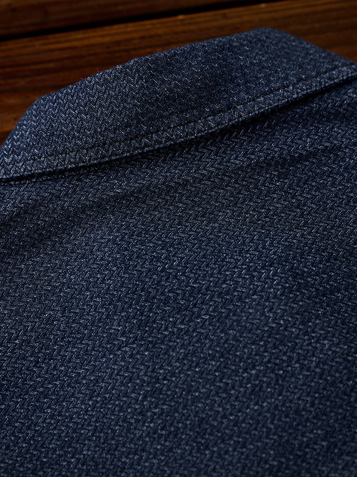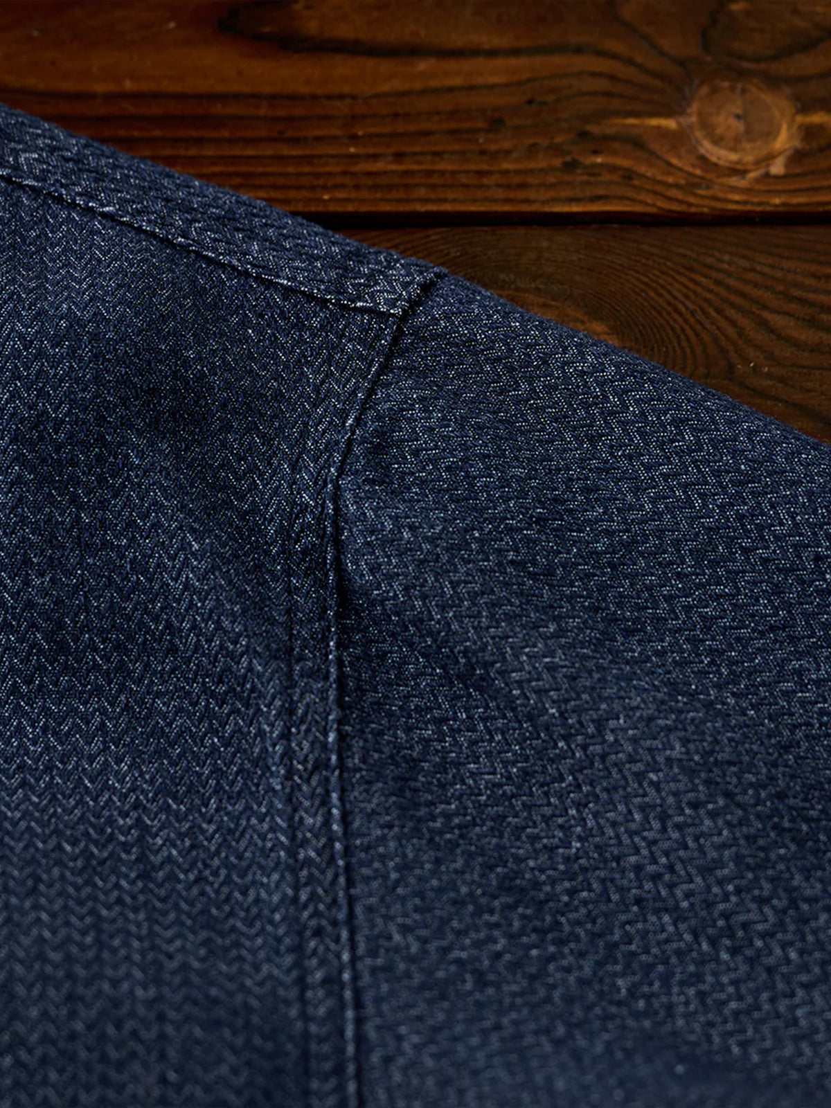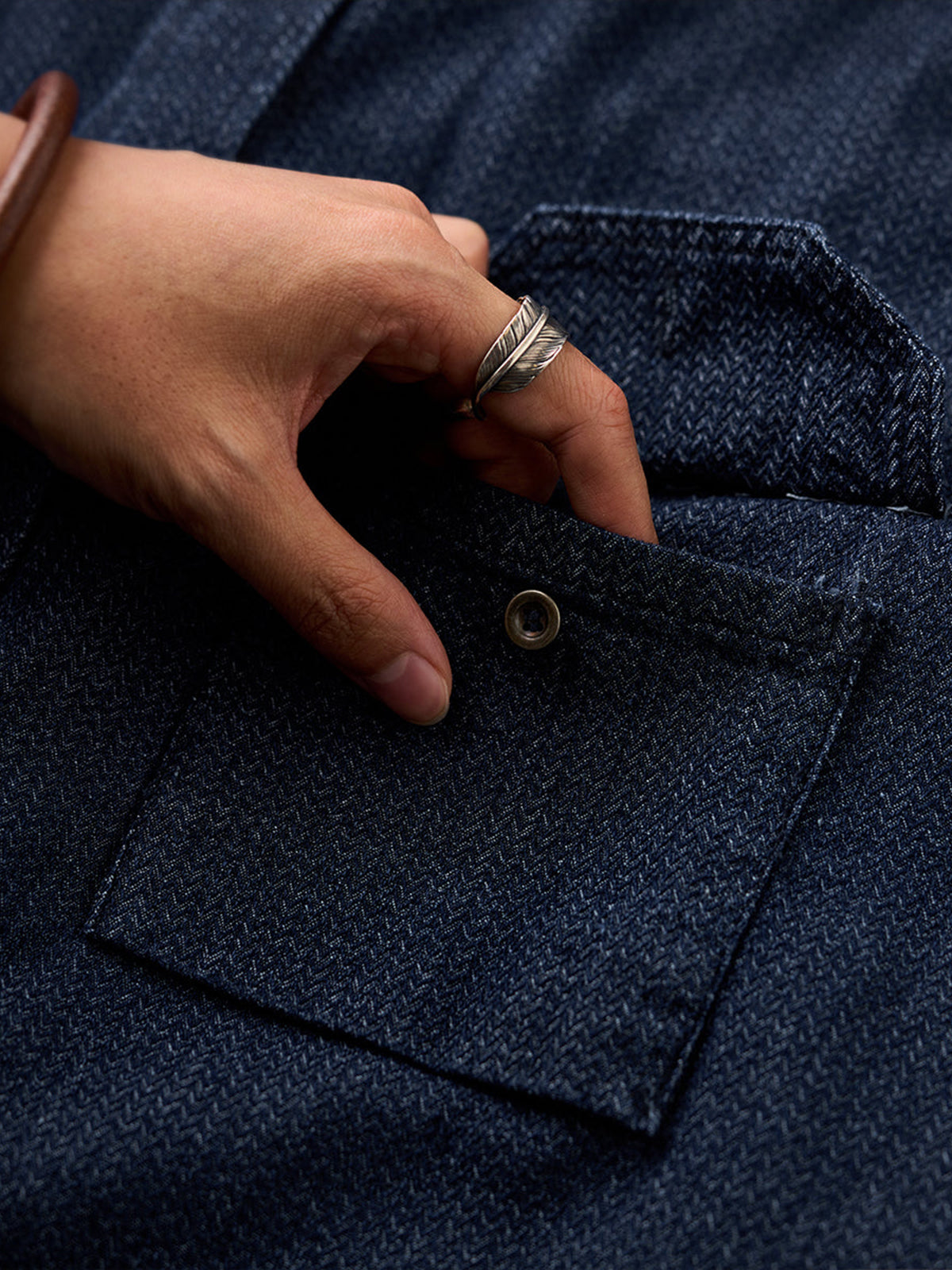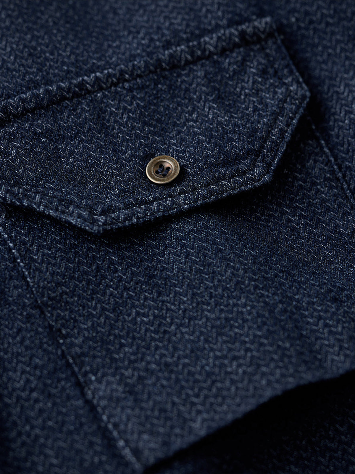 Herringbone Denim Work Shirt with Asymmetrical Pocket