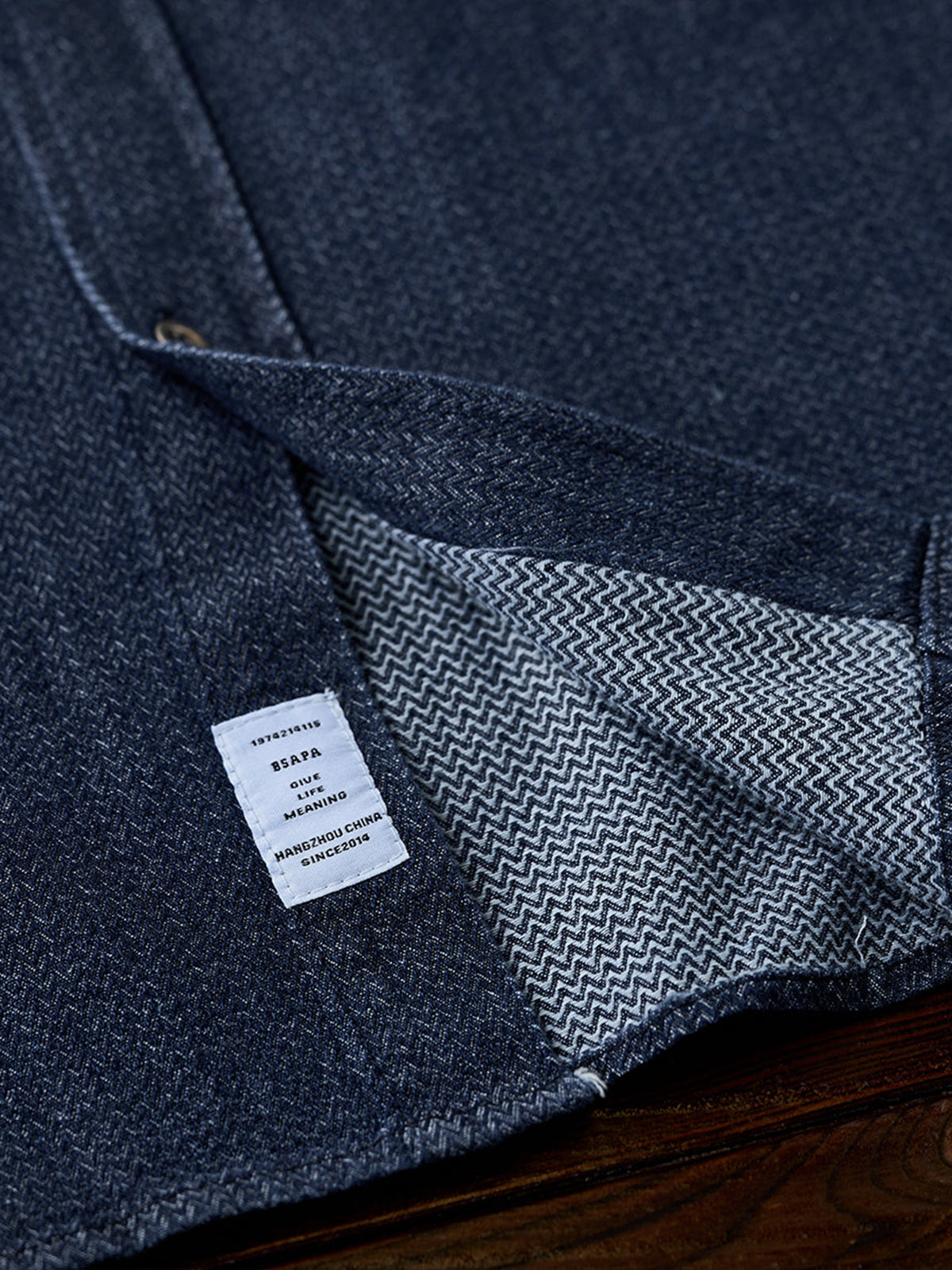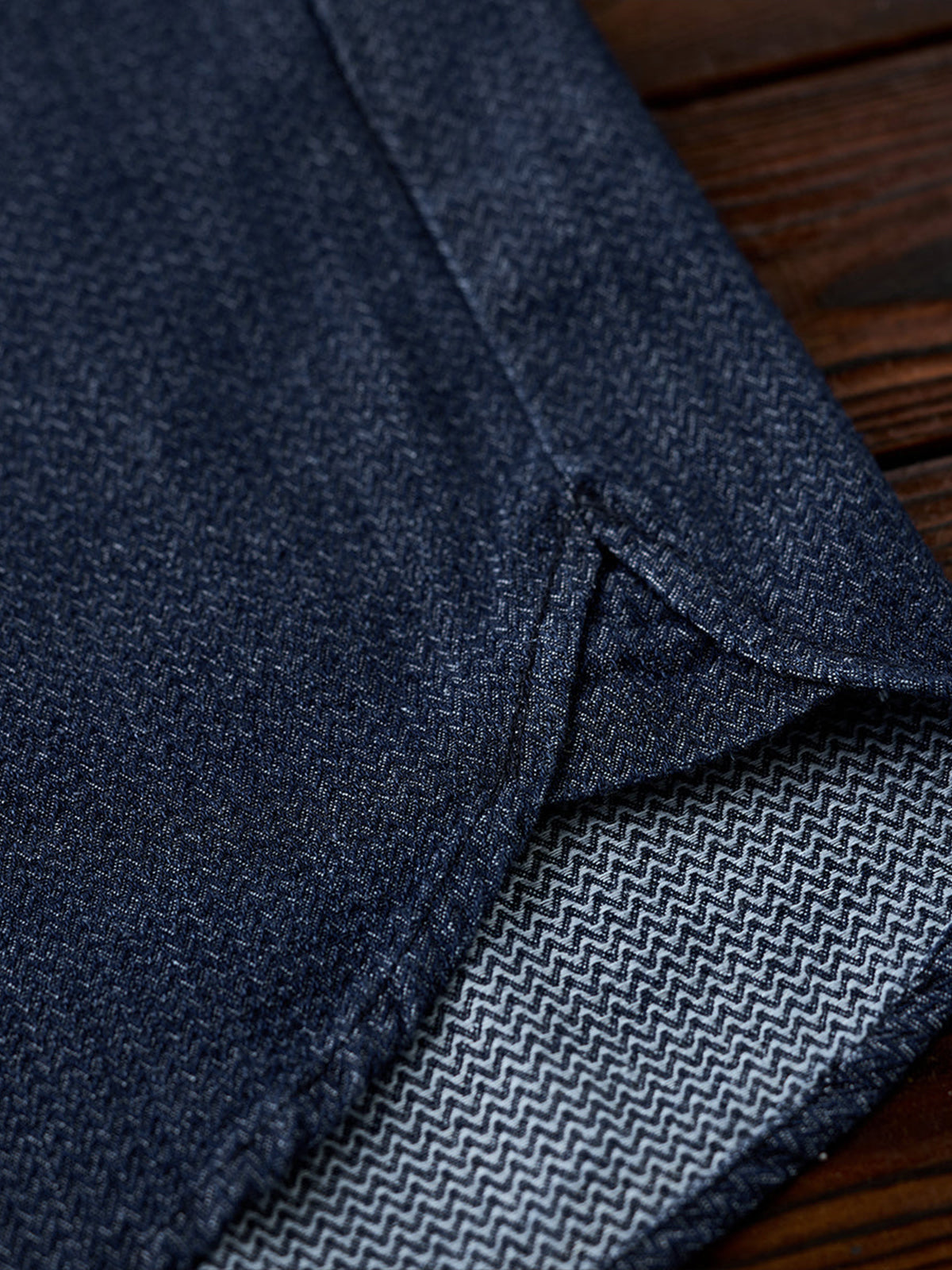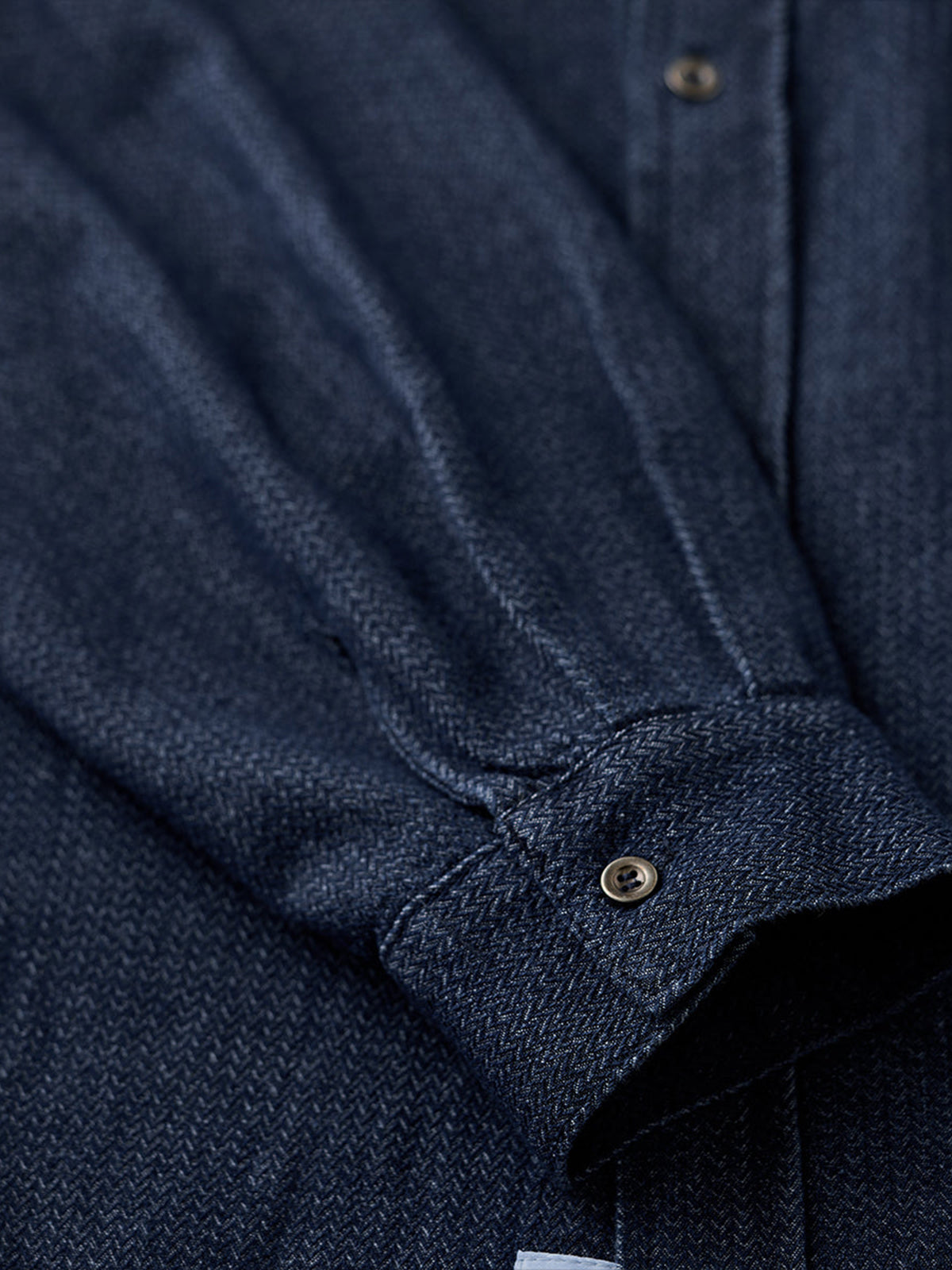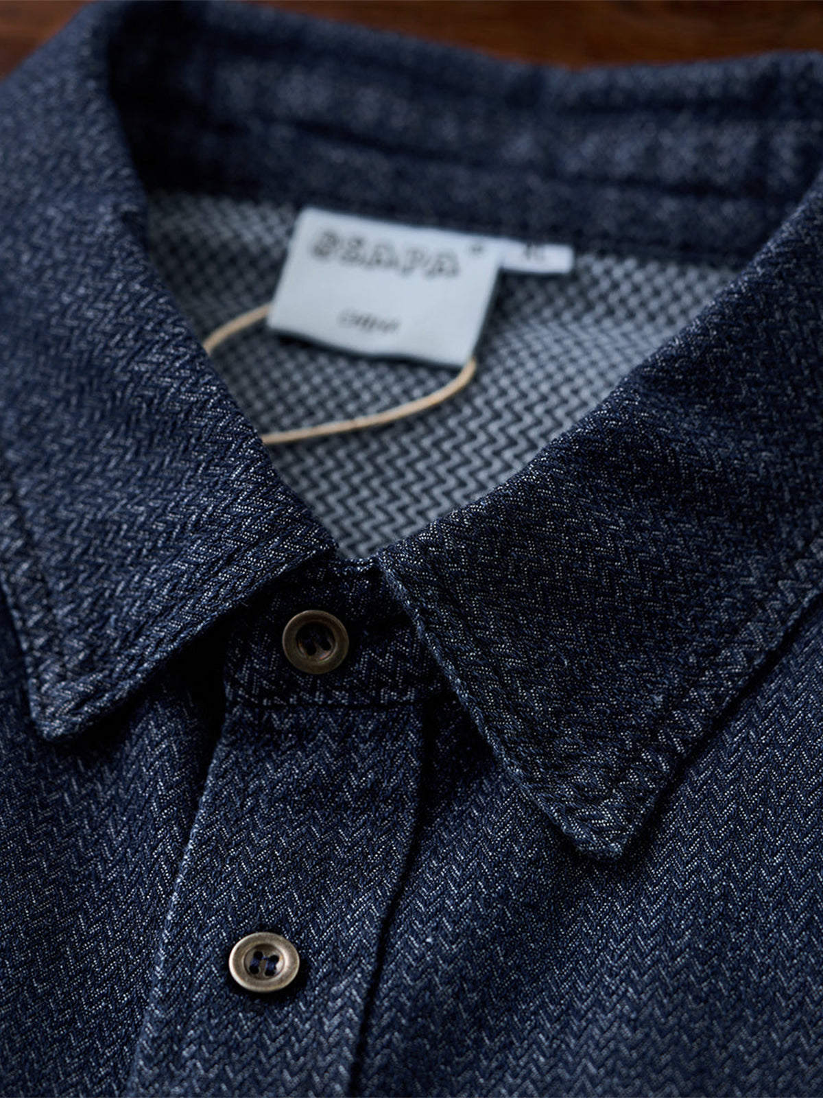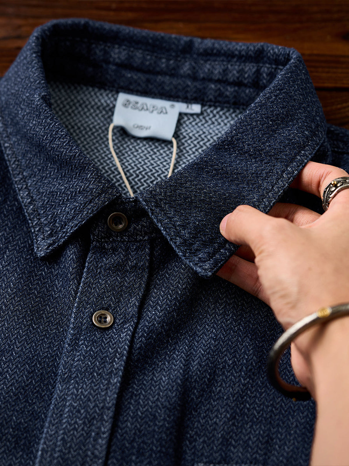 Herringbone Denim Work Shirt with Asymmetrical Pocket