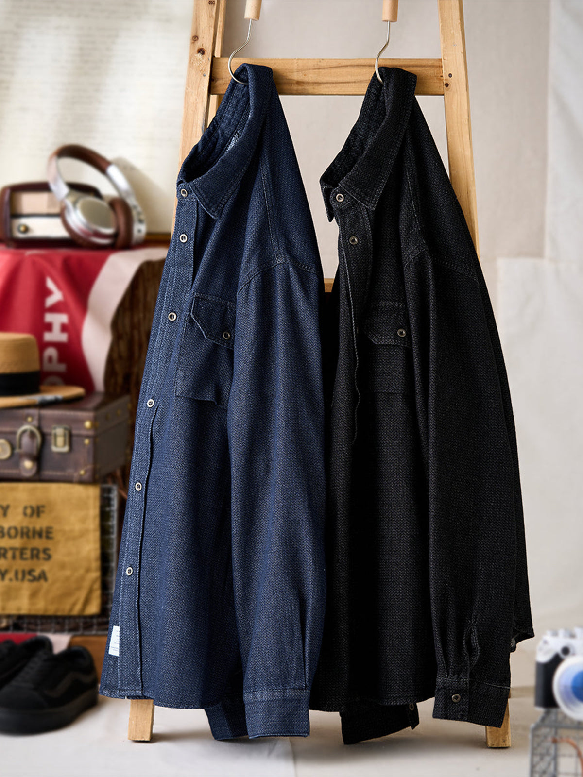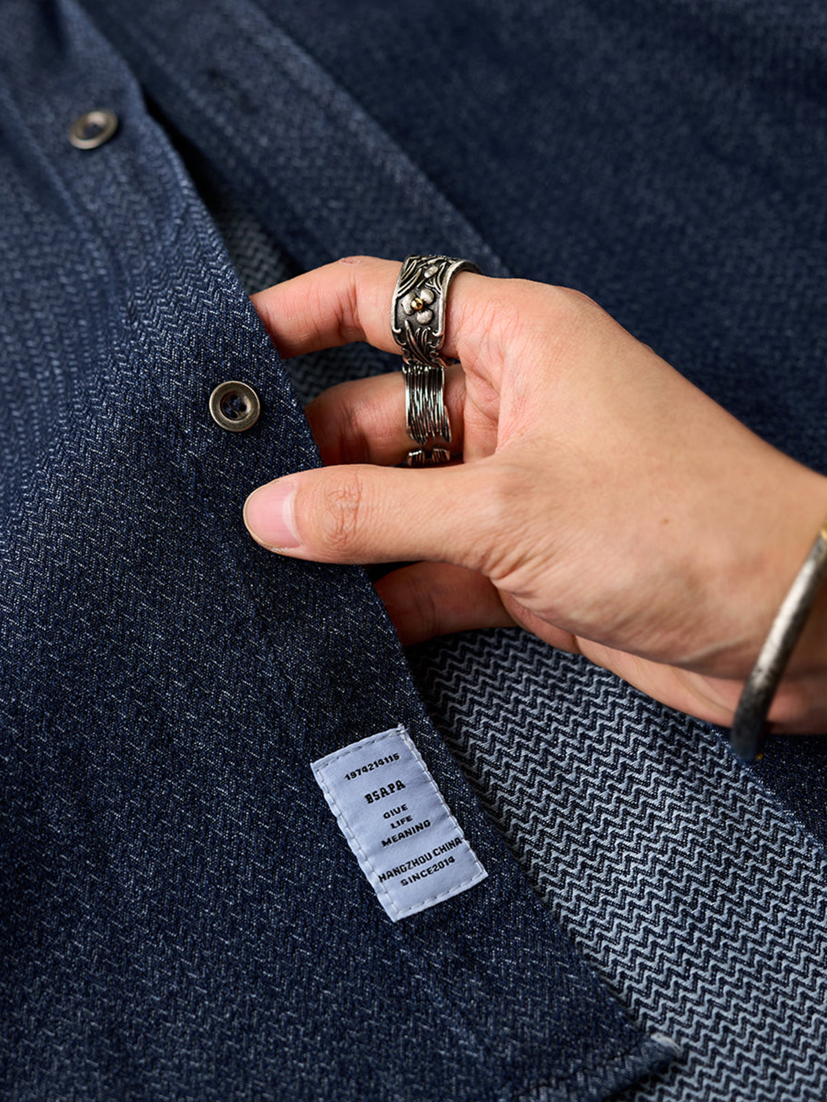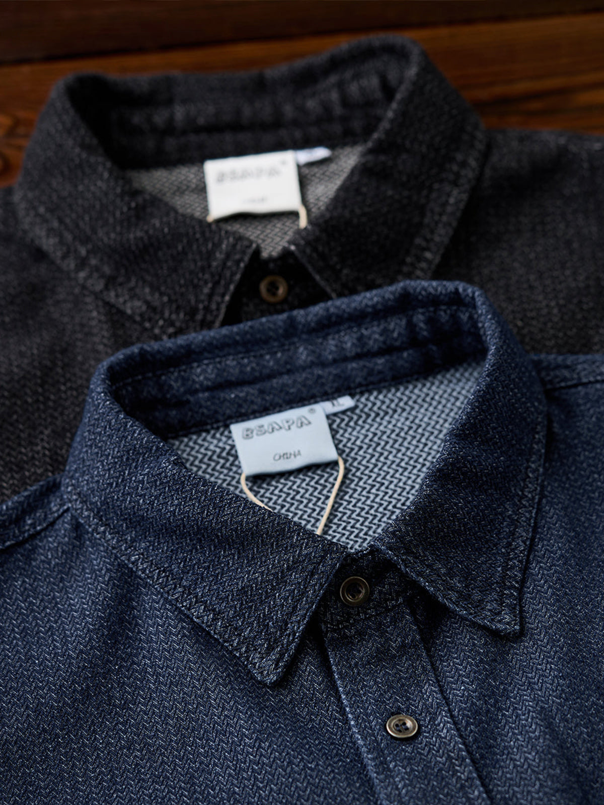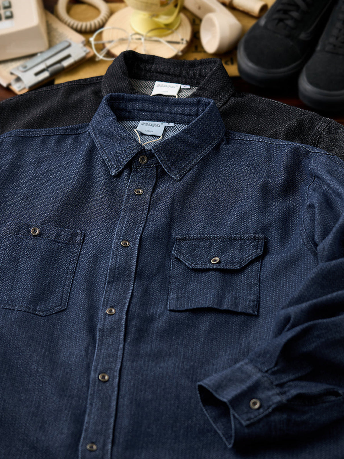 Herringbone Denim Work Shirt with Asymmetrical Pocket