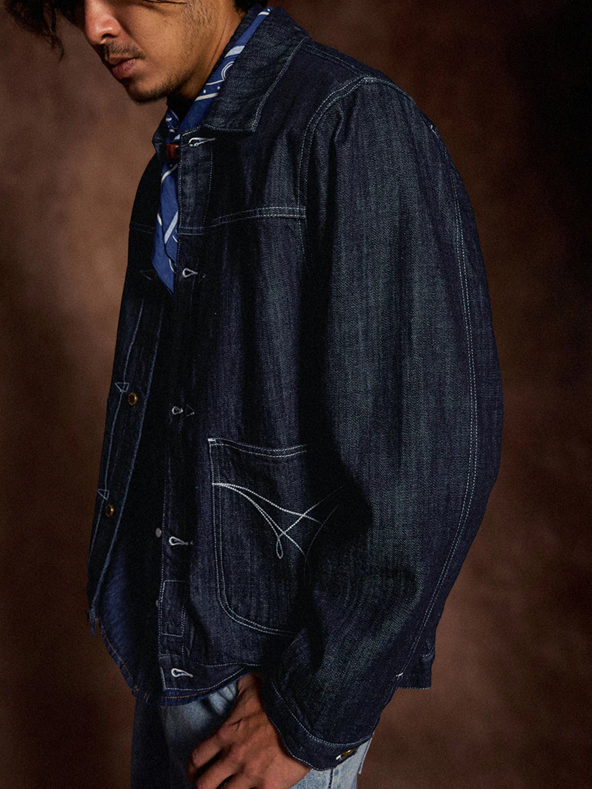 The rugged look of raw denim and the relaxed feel created by wash processing — this denim jacket is available in two types. Symmetrical stitching is applied to the front pockets, resulting in a classical and well-balanced design. The raw denim type allows you to enjoy a unique fading the more you wear it, while the washed type offers a soft texture and vintage feel right from the start. With a basic silhouette that is easy to coordinate, it is a versatile outerwear piece that suits a wide range of styles, from casual to street.