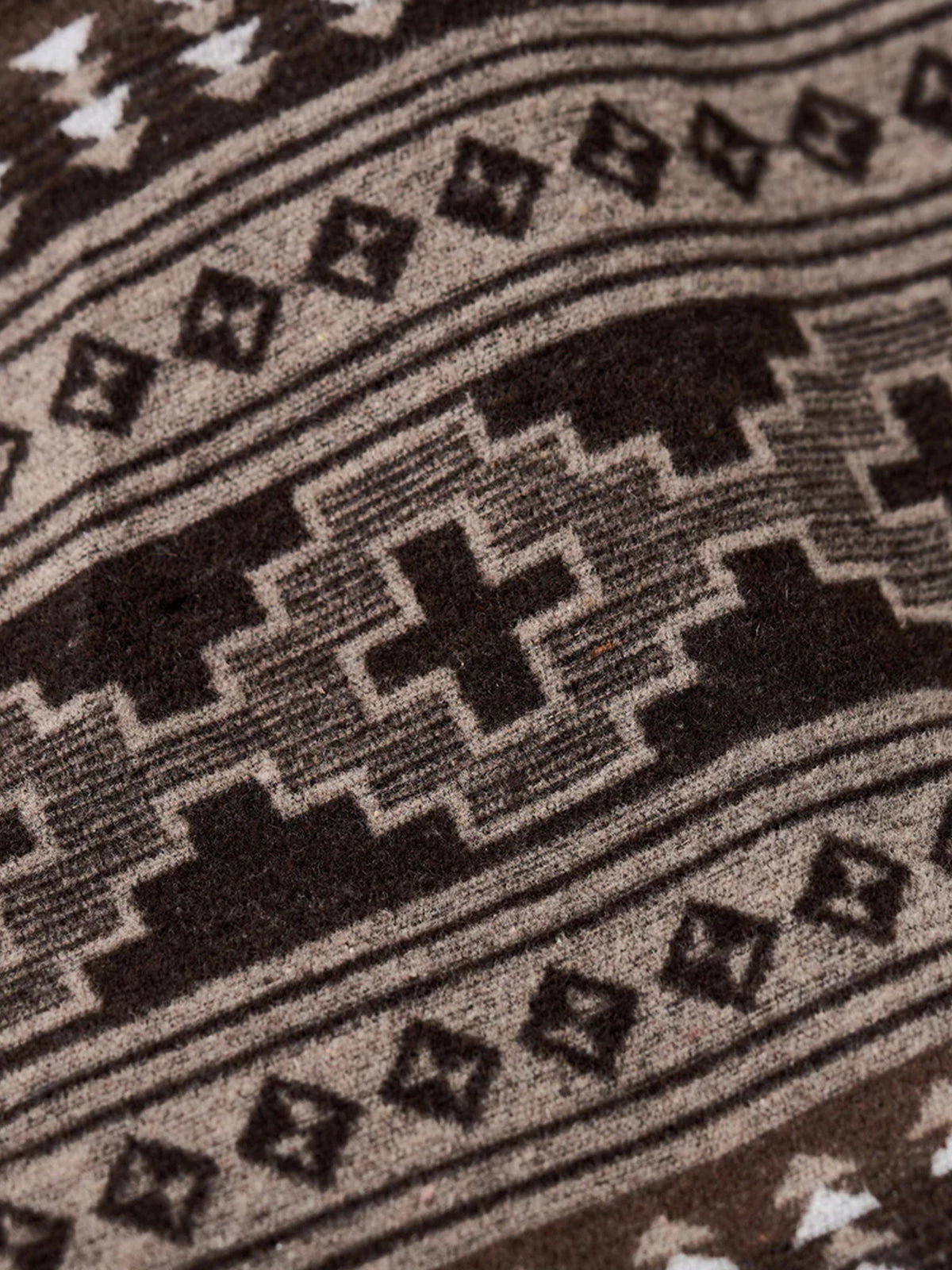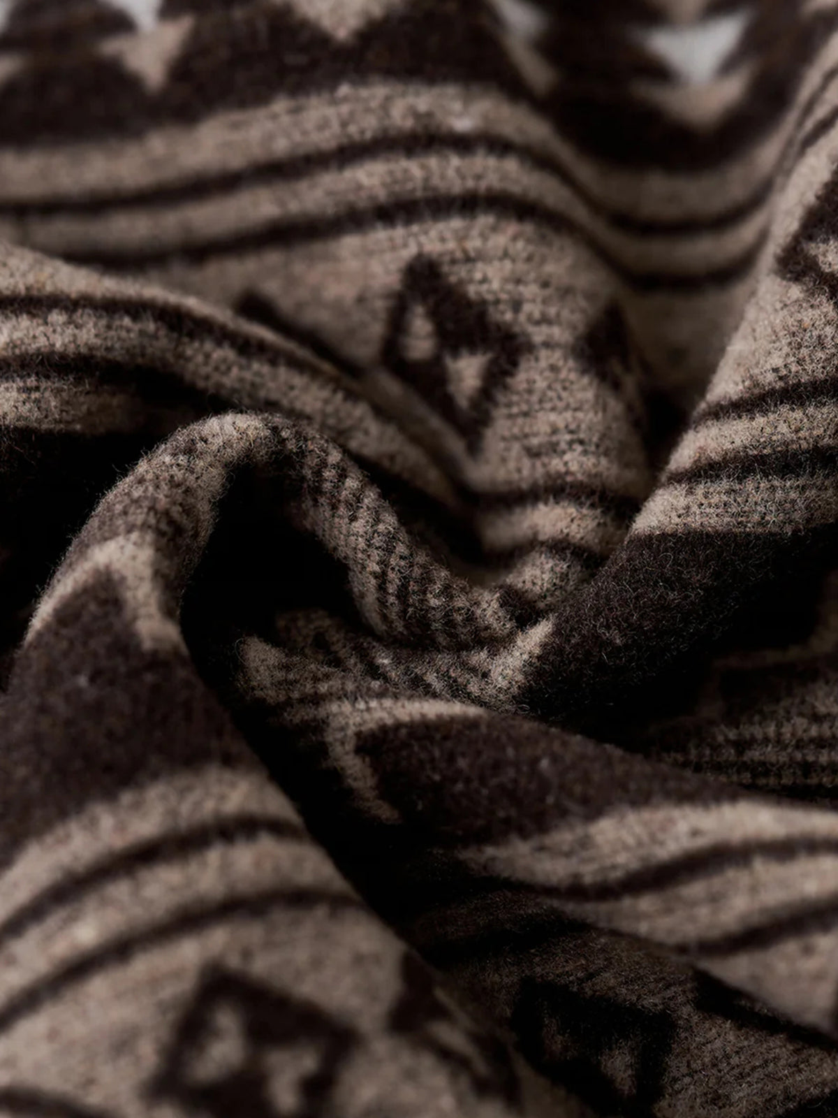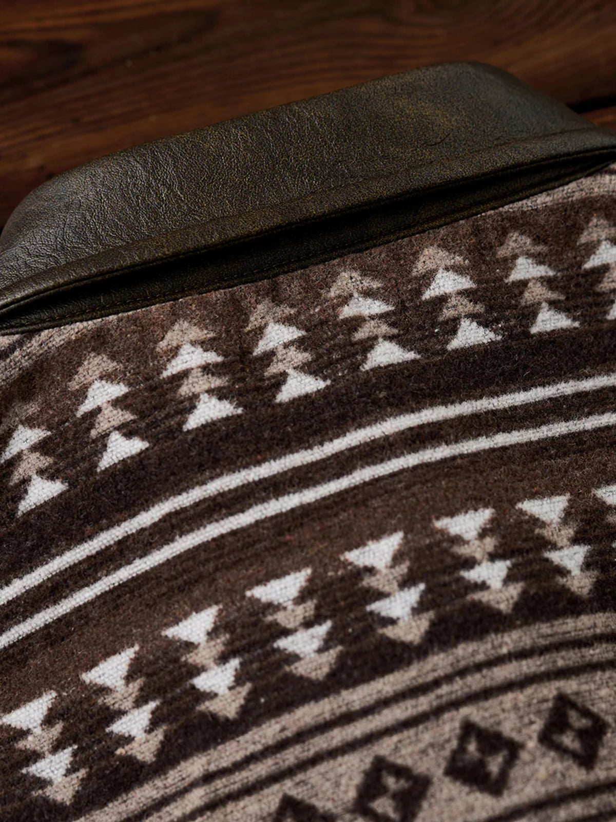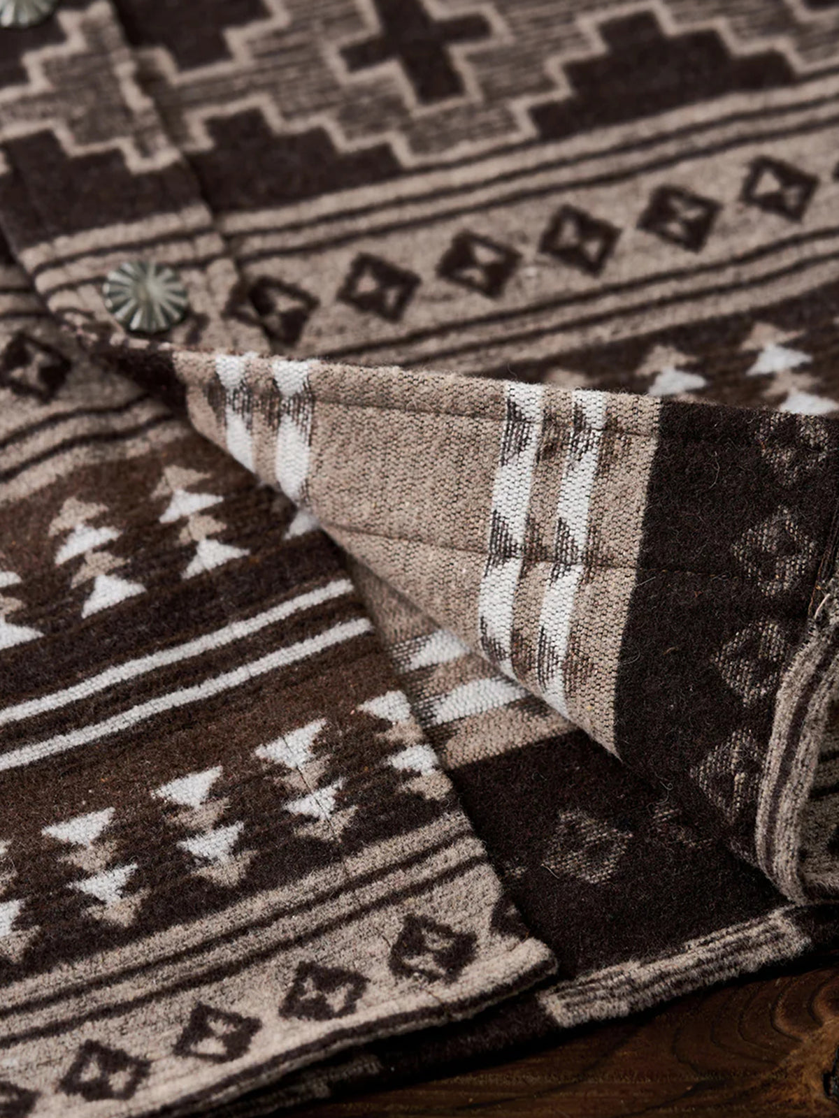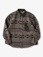 Ethnic-Inspired Wool-Blend Tweed Shirt with Leather Collar & Pocket Accents