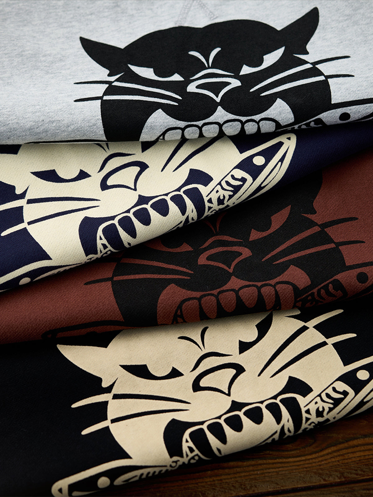 The print is created using an advanced discharge printing technique that offers vivid colors and a soft feel, while the triple-needle stitching enhances the garment’s strength and longevity. The loopback cotton material is not only cozy but also highly breathable, making it perfect for cooler seasons where both comfort and style are essential.