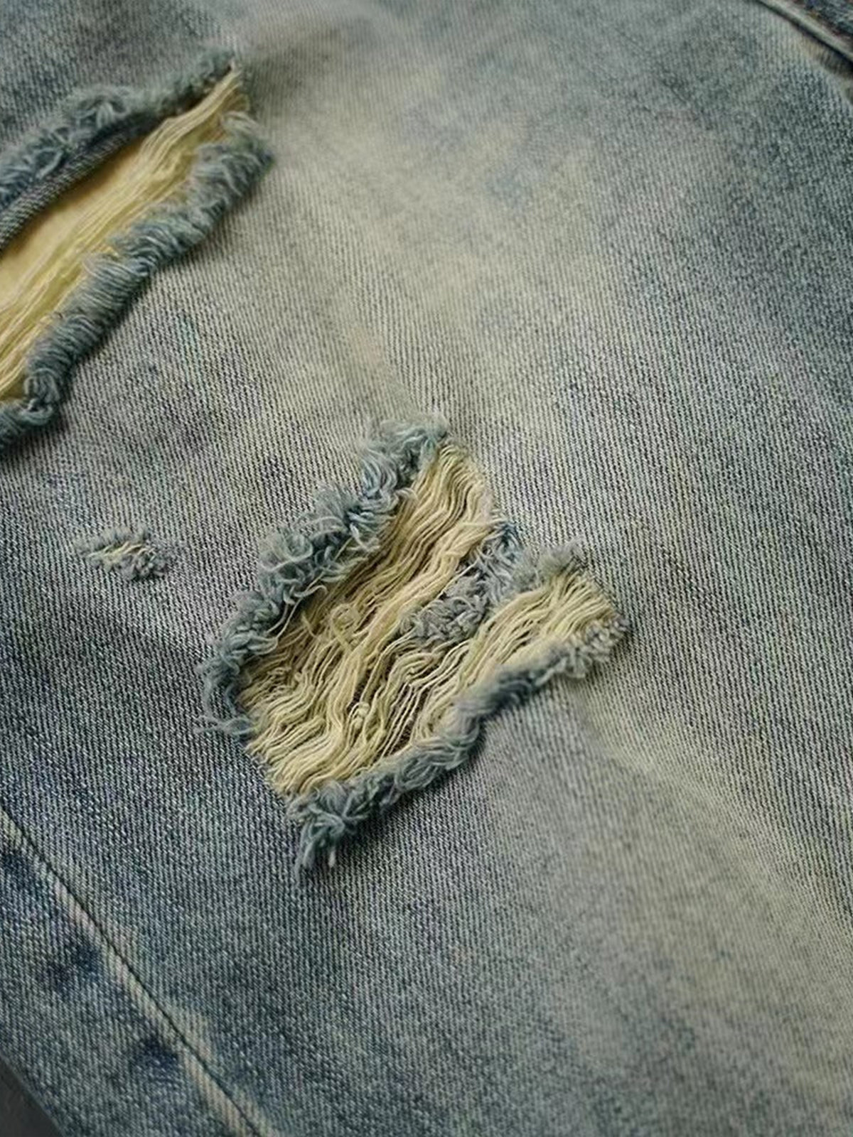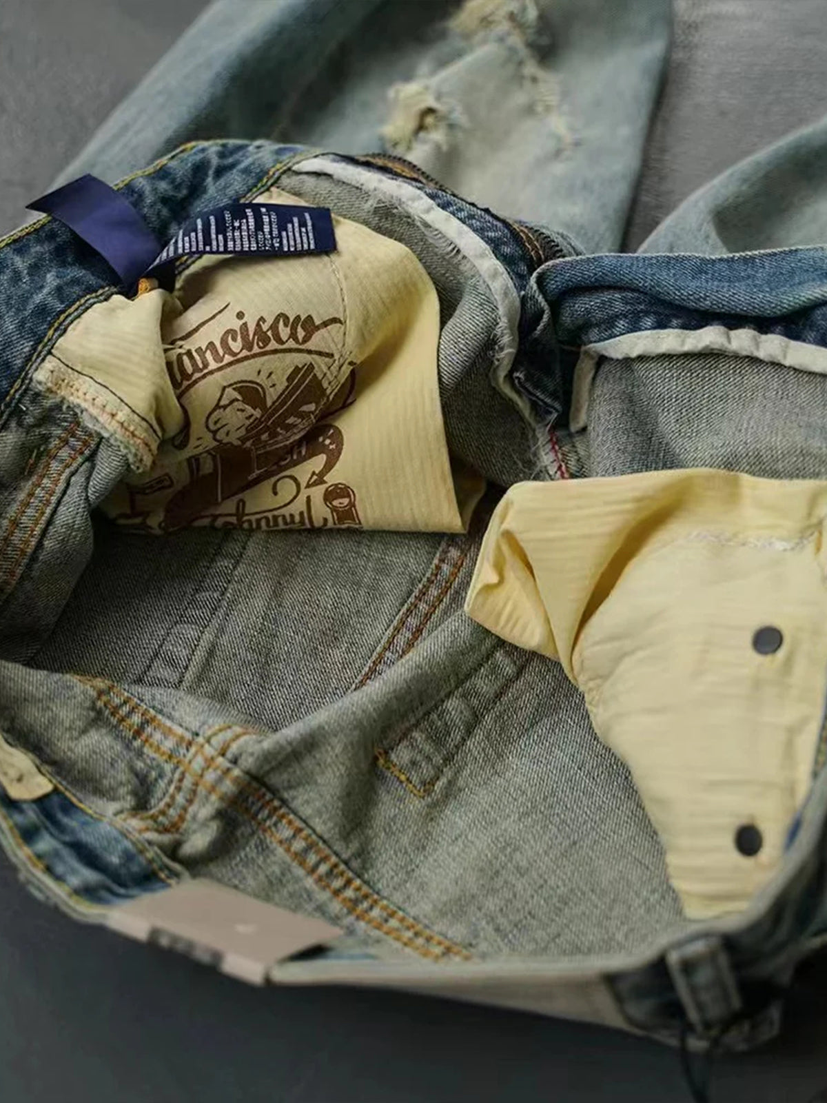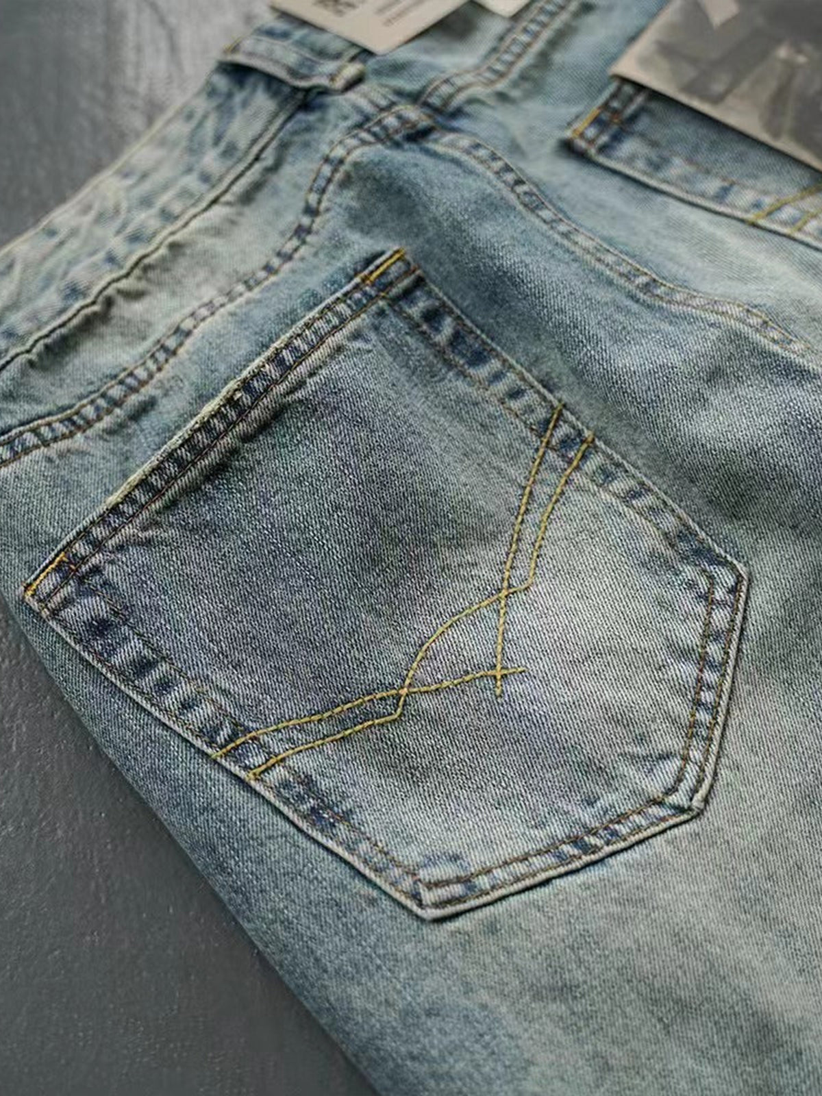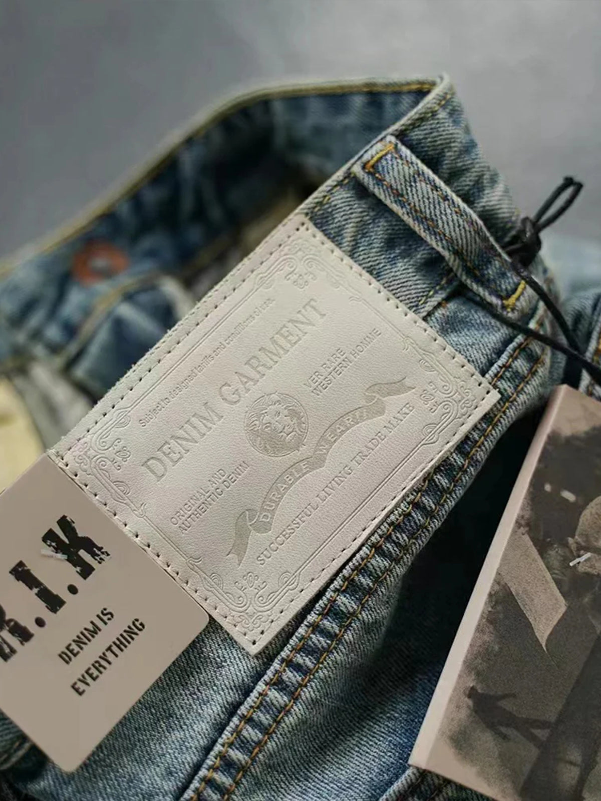 The design is full of details and textures, and the design that fully expresses personality is attractive. Overall, it is performed with light colors, lightness and washes, and the colors that seem to fade naturally add a tidal finish to the shape. The bleached and washed design on the front of the thigh, the metallic buttons and gibs, and the thick leather labels.