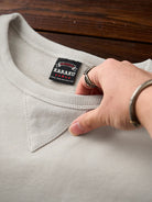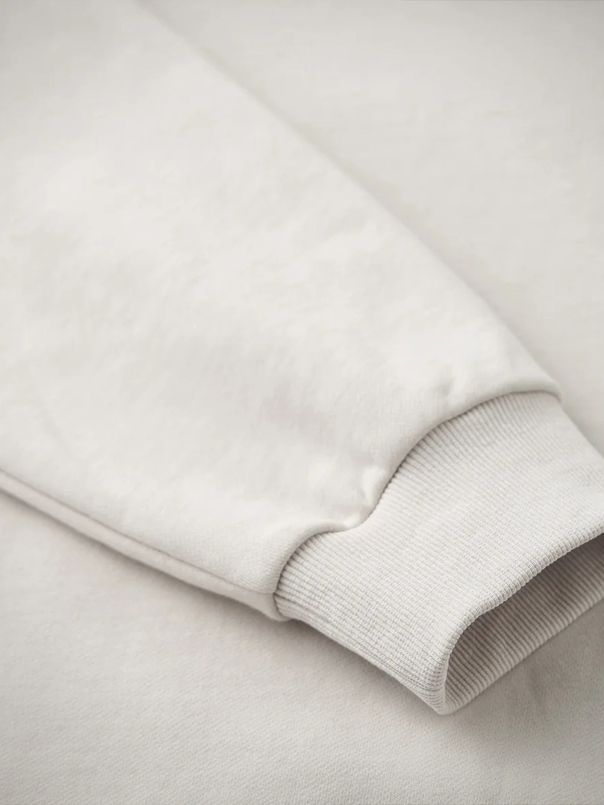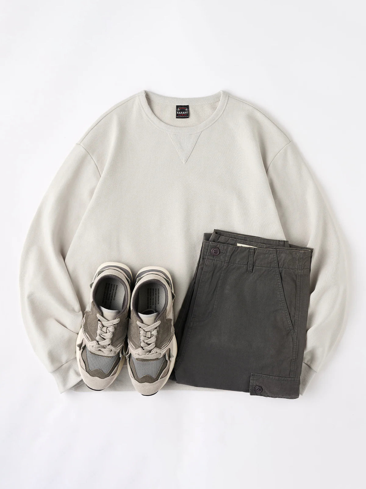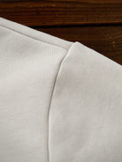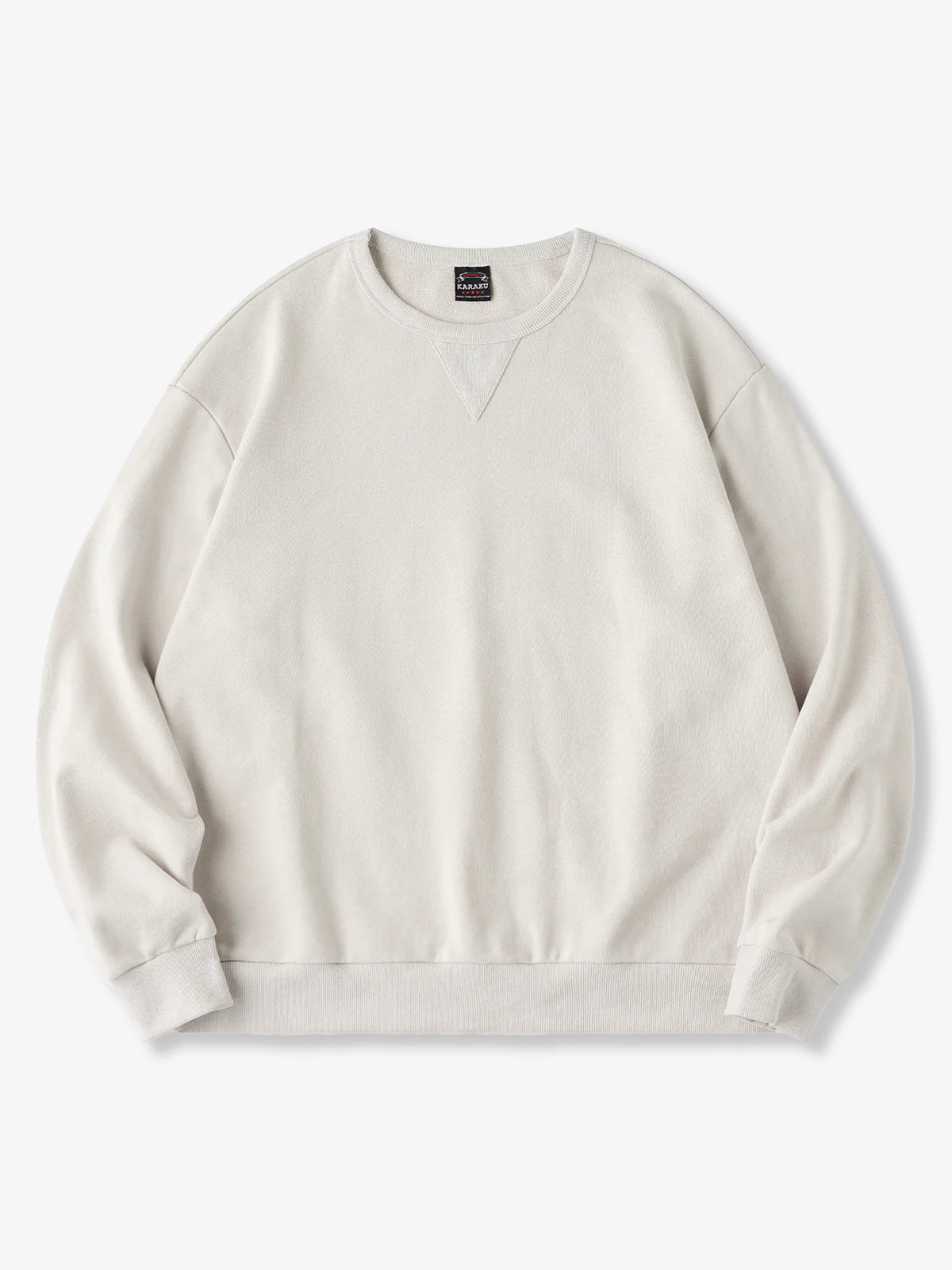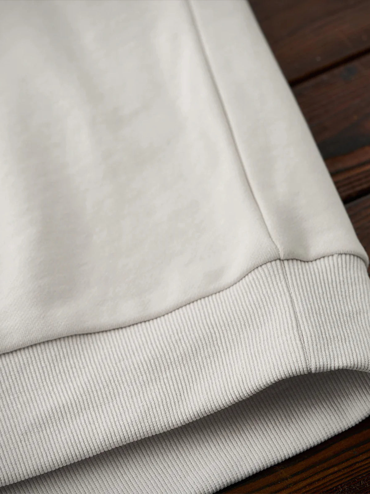 The sweatshirt features a V-shaped gusset placed under the neckline, a classic detail that adds a vintage touch. This traditional element also serves a functional role by reinforcing the garment.