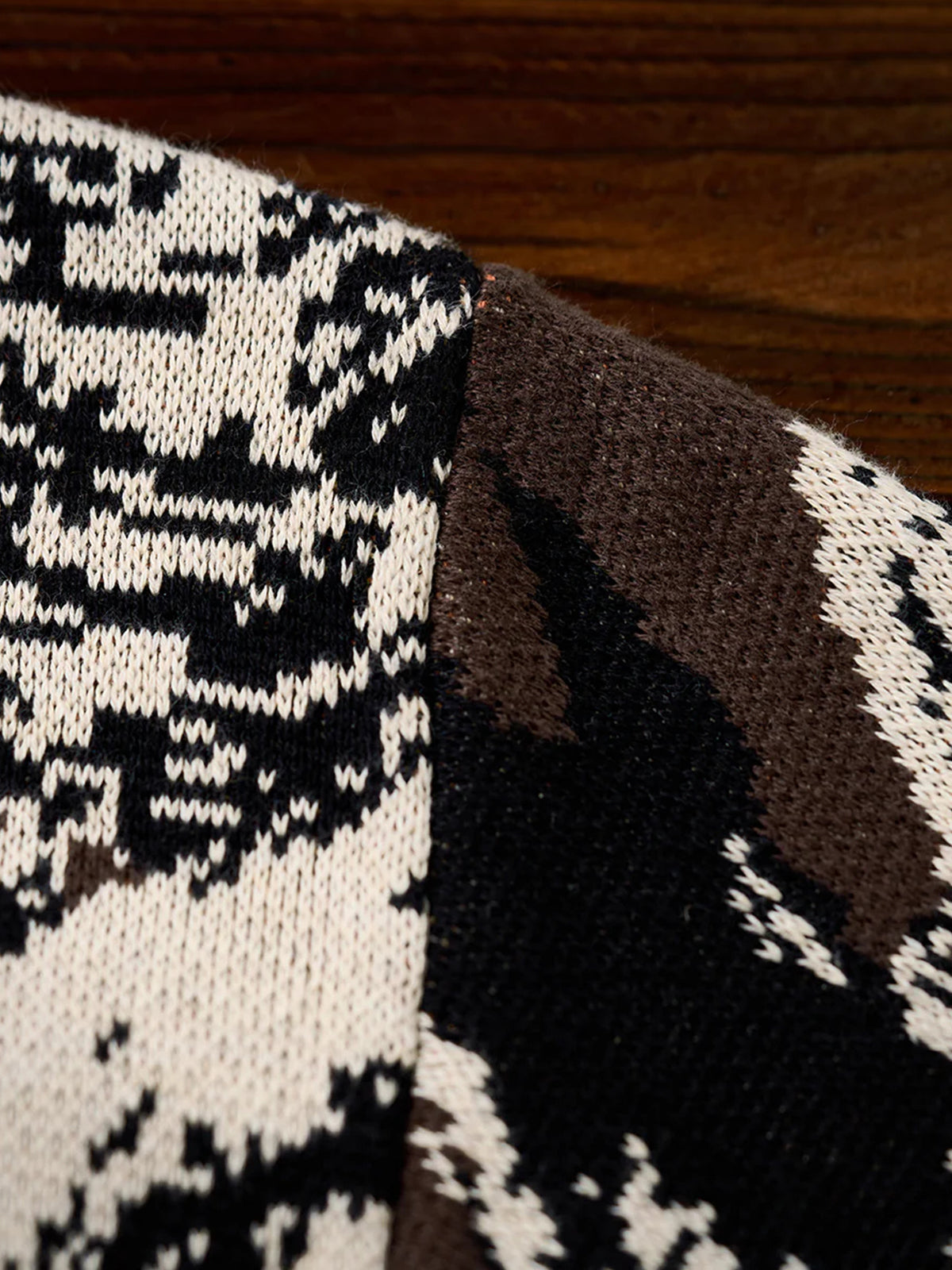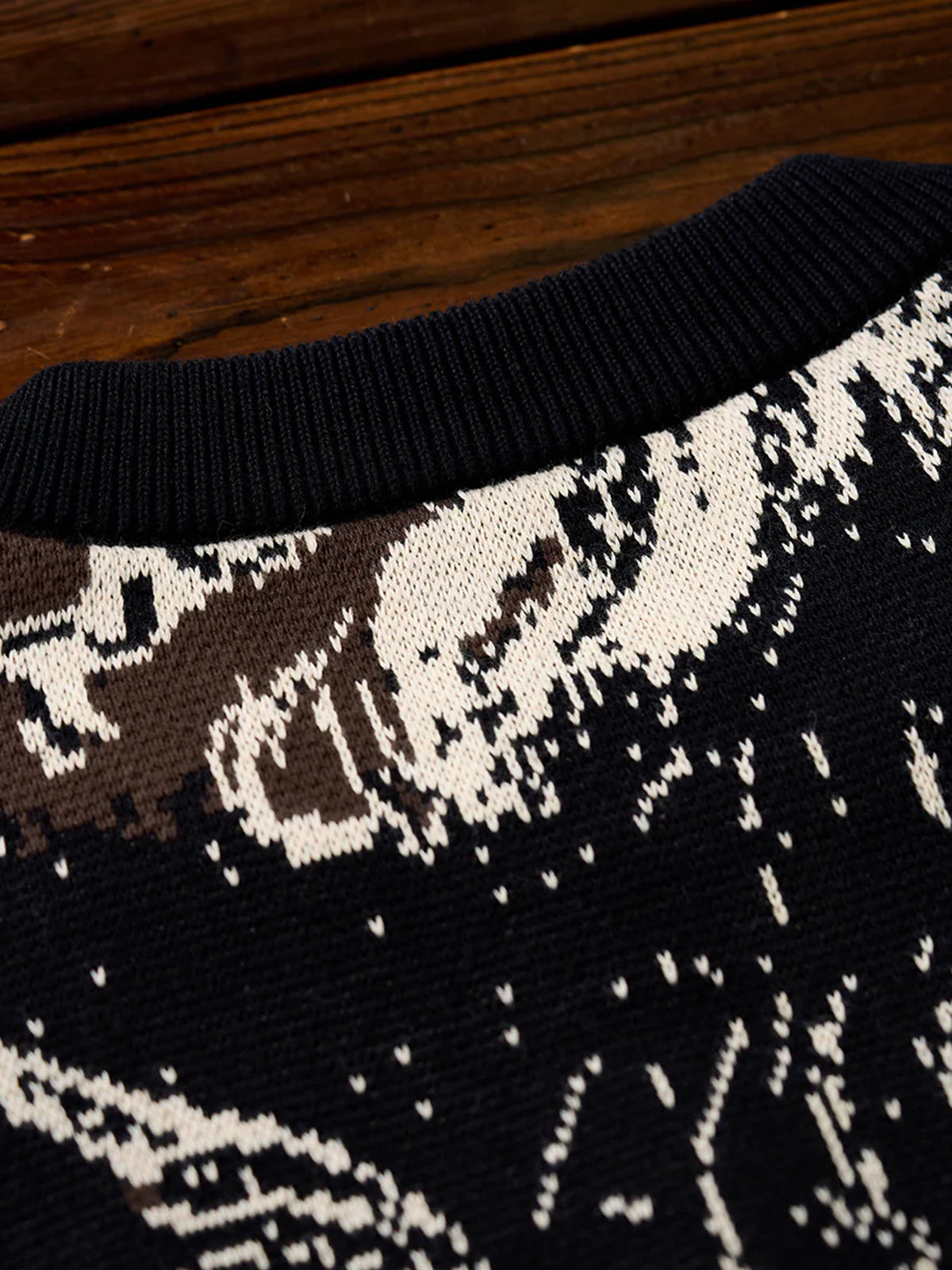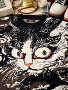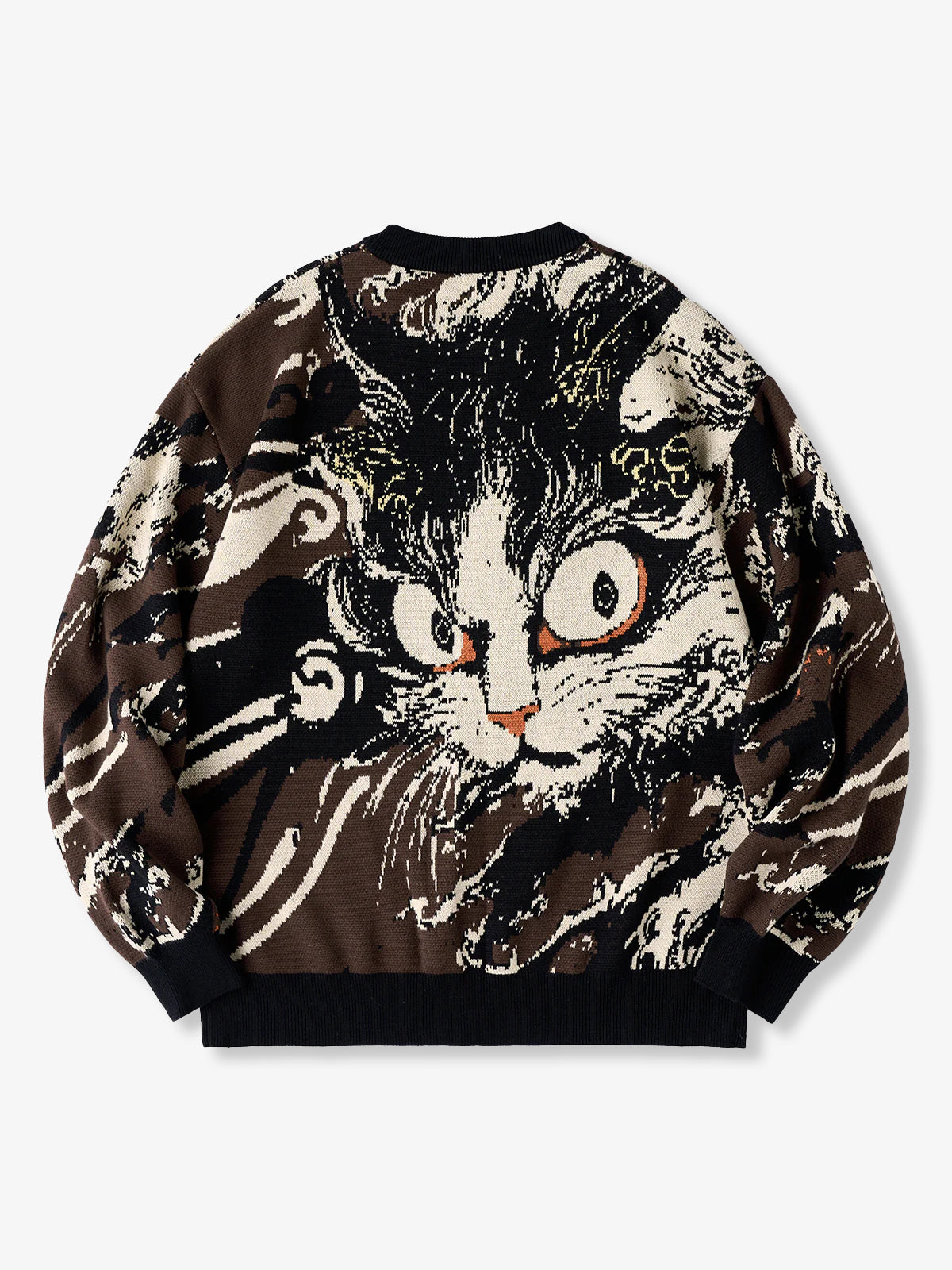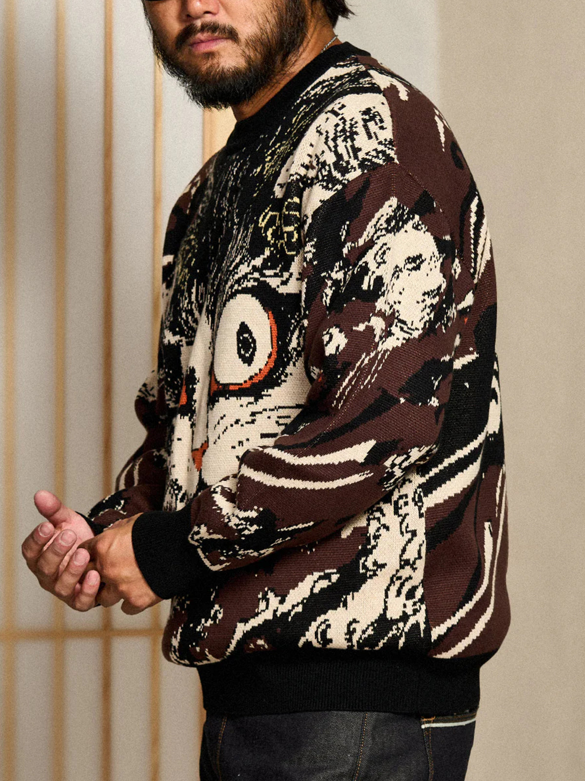 Ukiyo-e Style Jacquard Sweater with “Bakeneko” Folklore Motif
