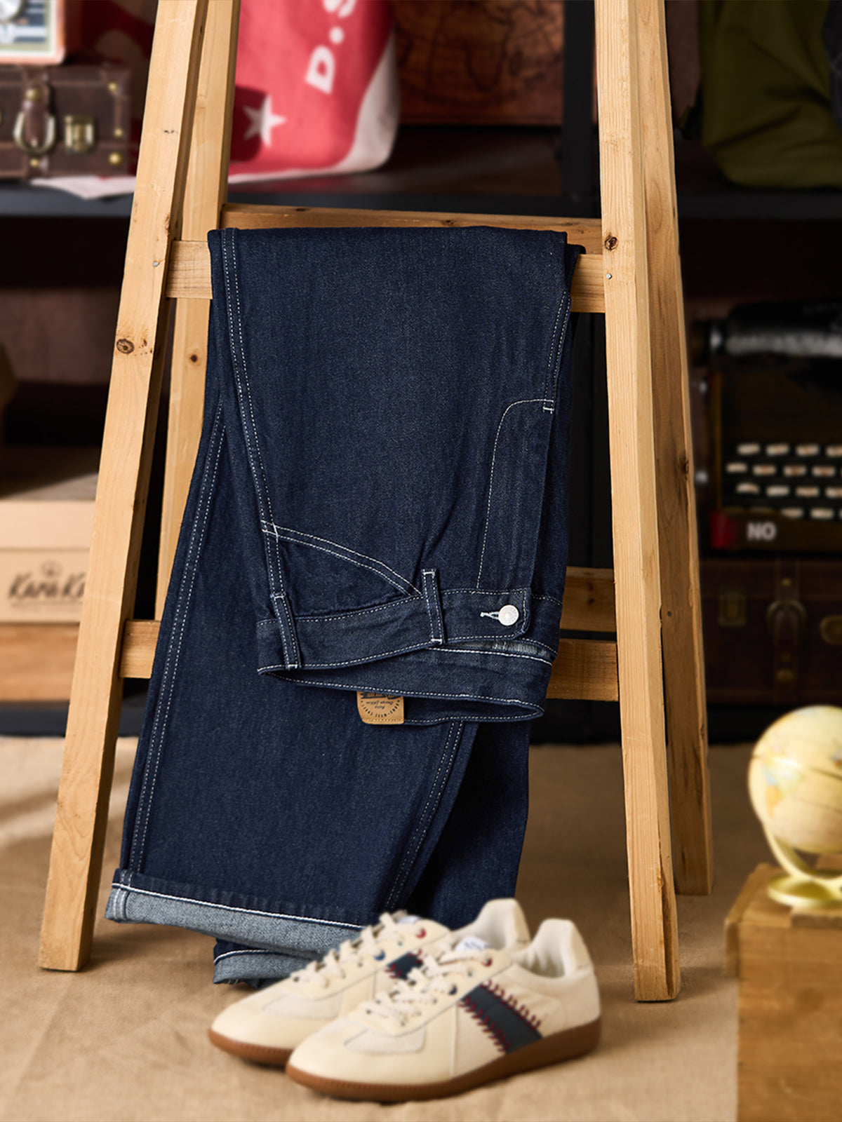 Selvedge Denim Straight-Leg Pants with Orange Stitching