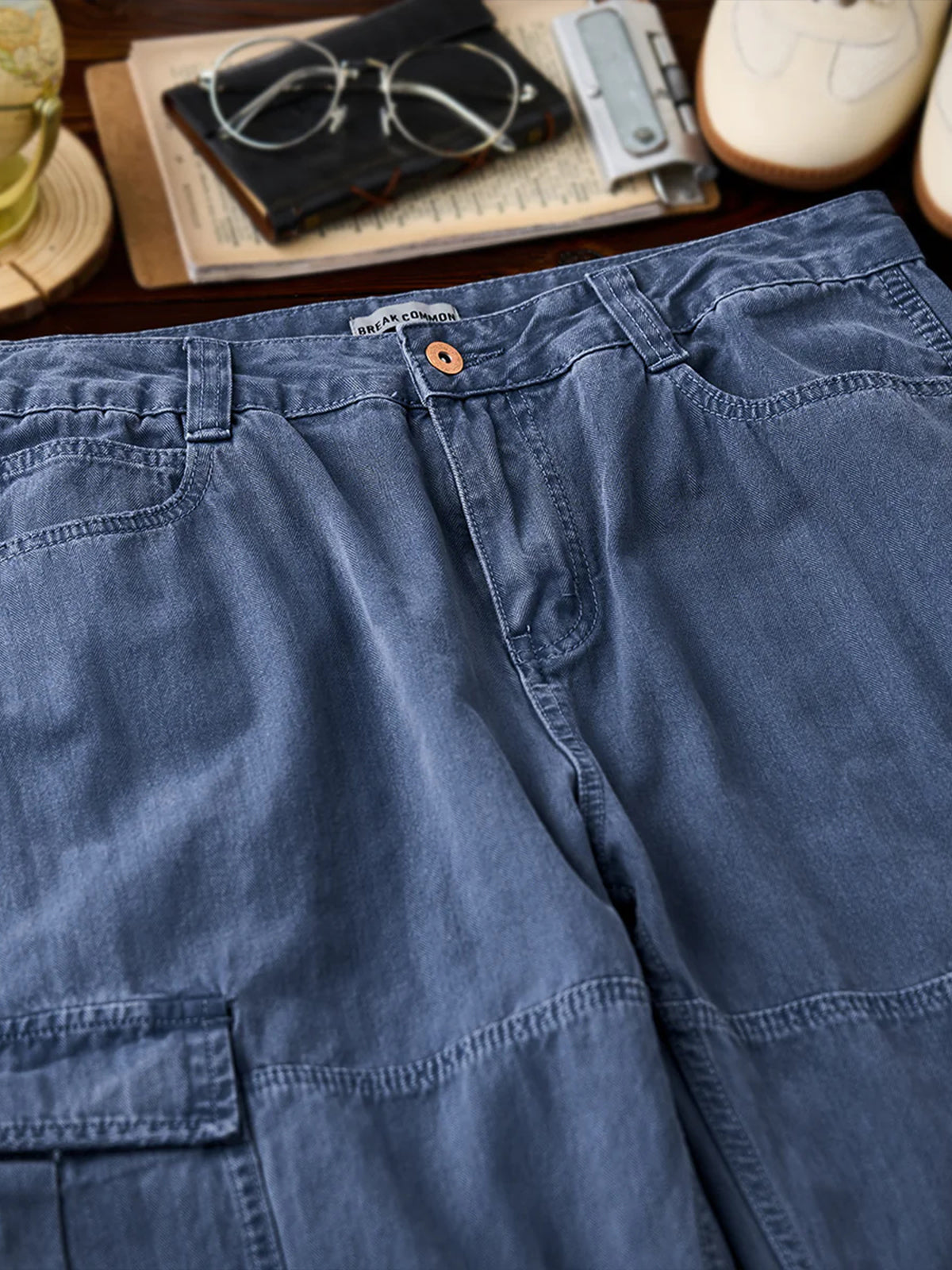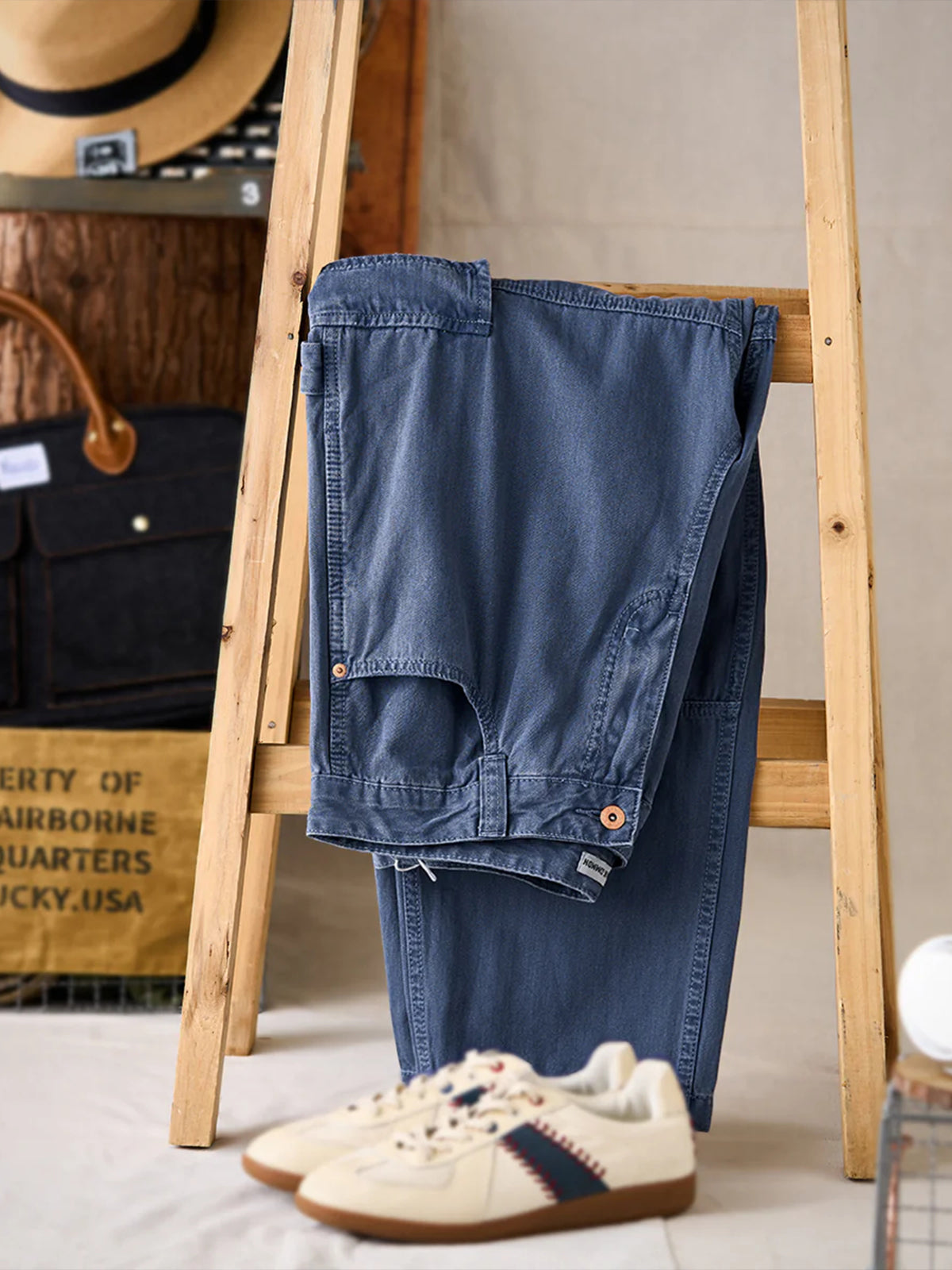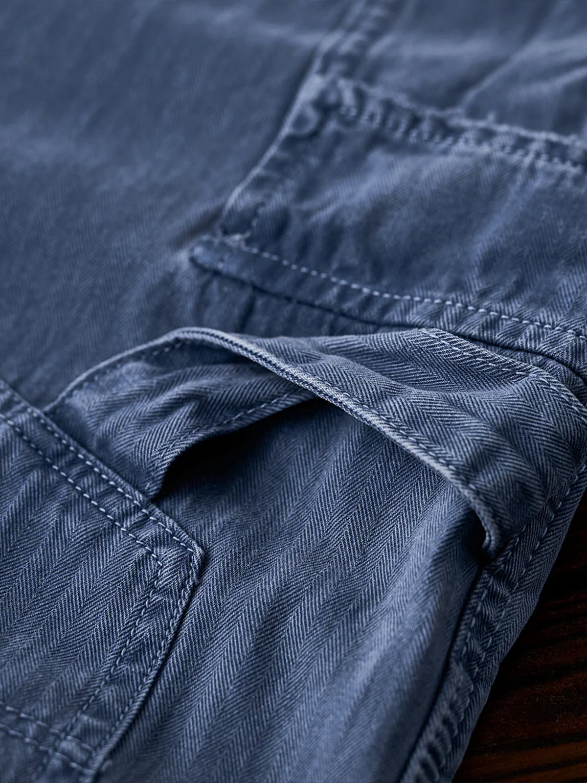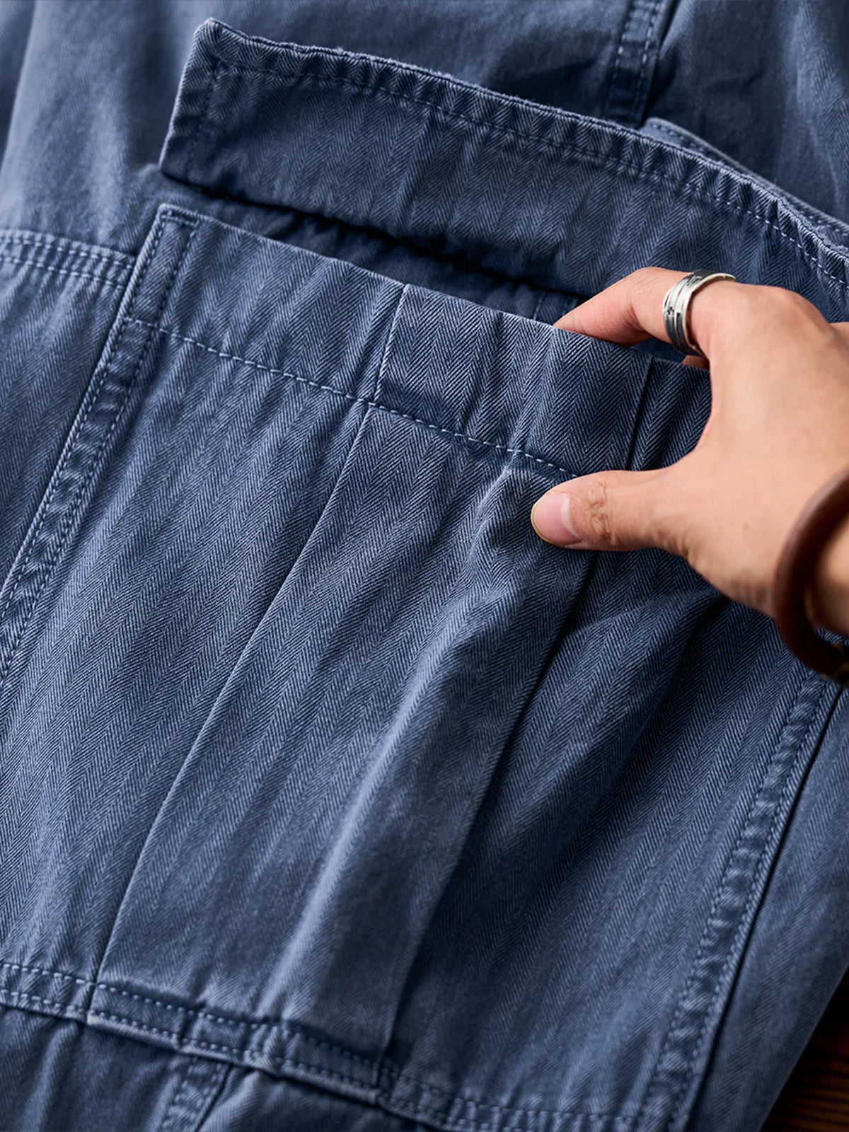 Herringbone Twill Denim Cargo Pants with Hammer Loop