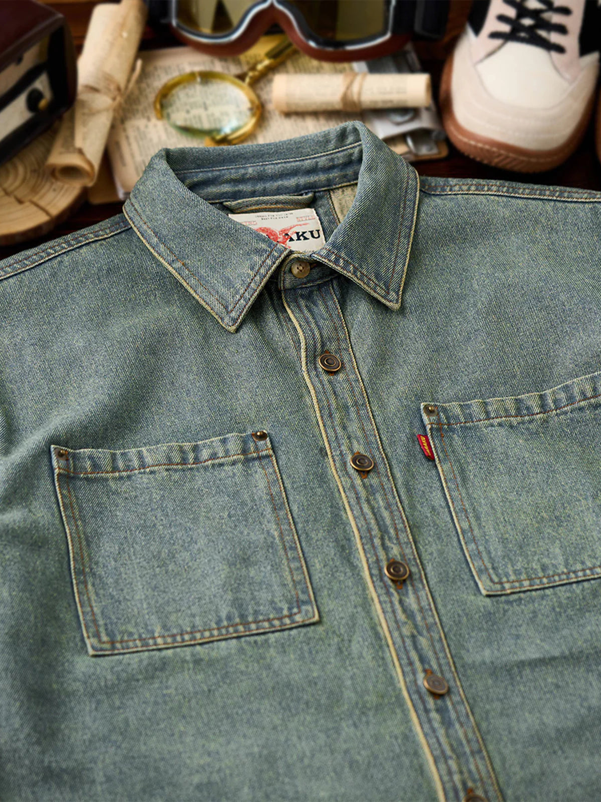Washed Double Pocket Denim Shirt