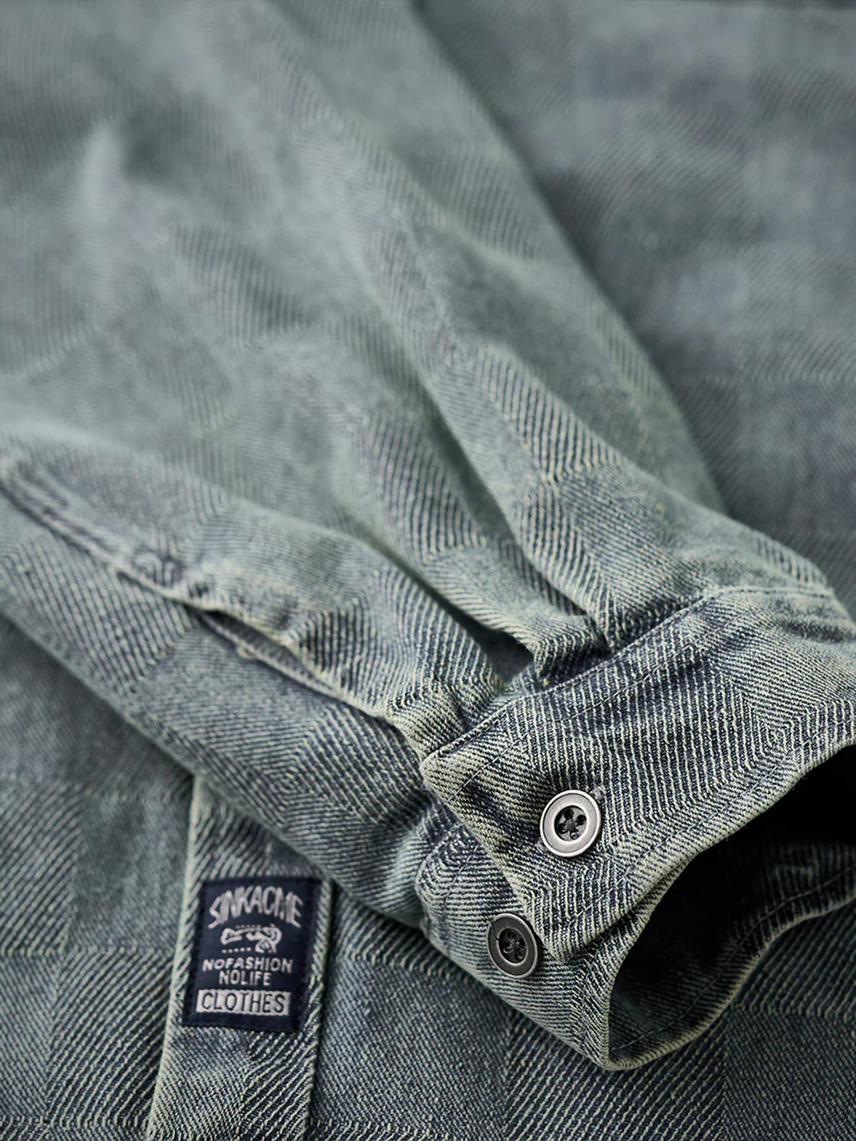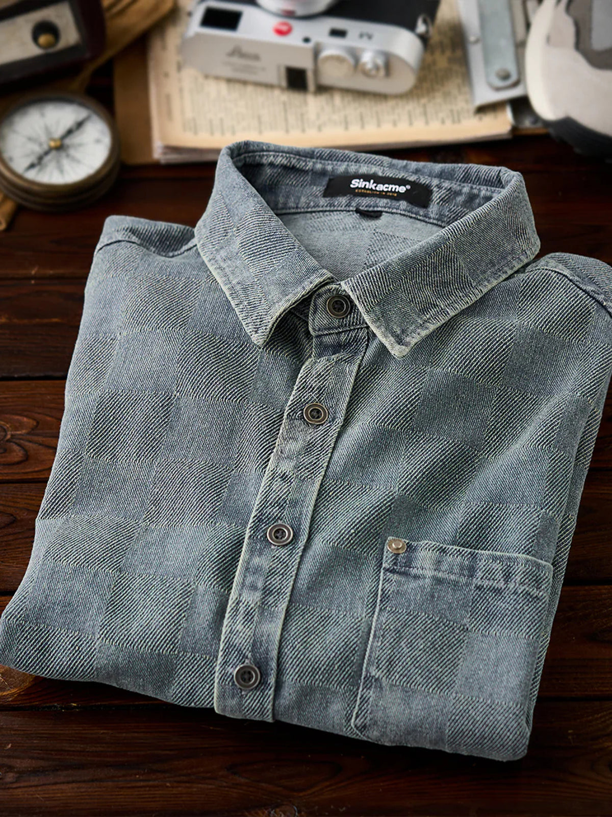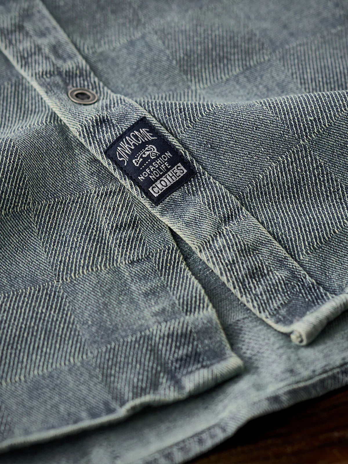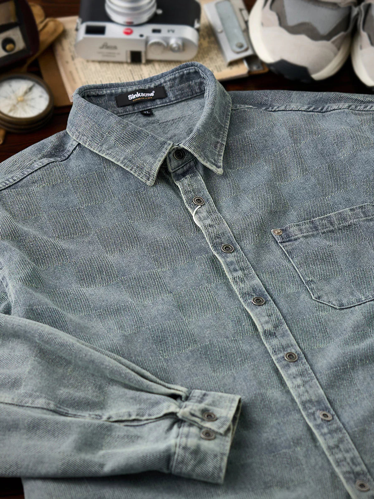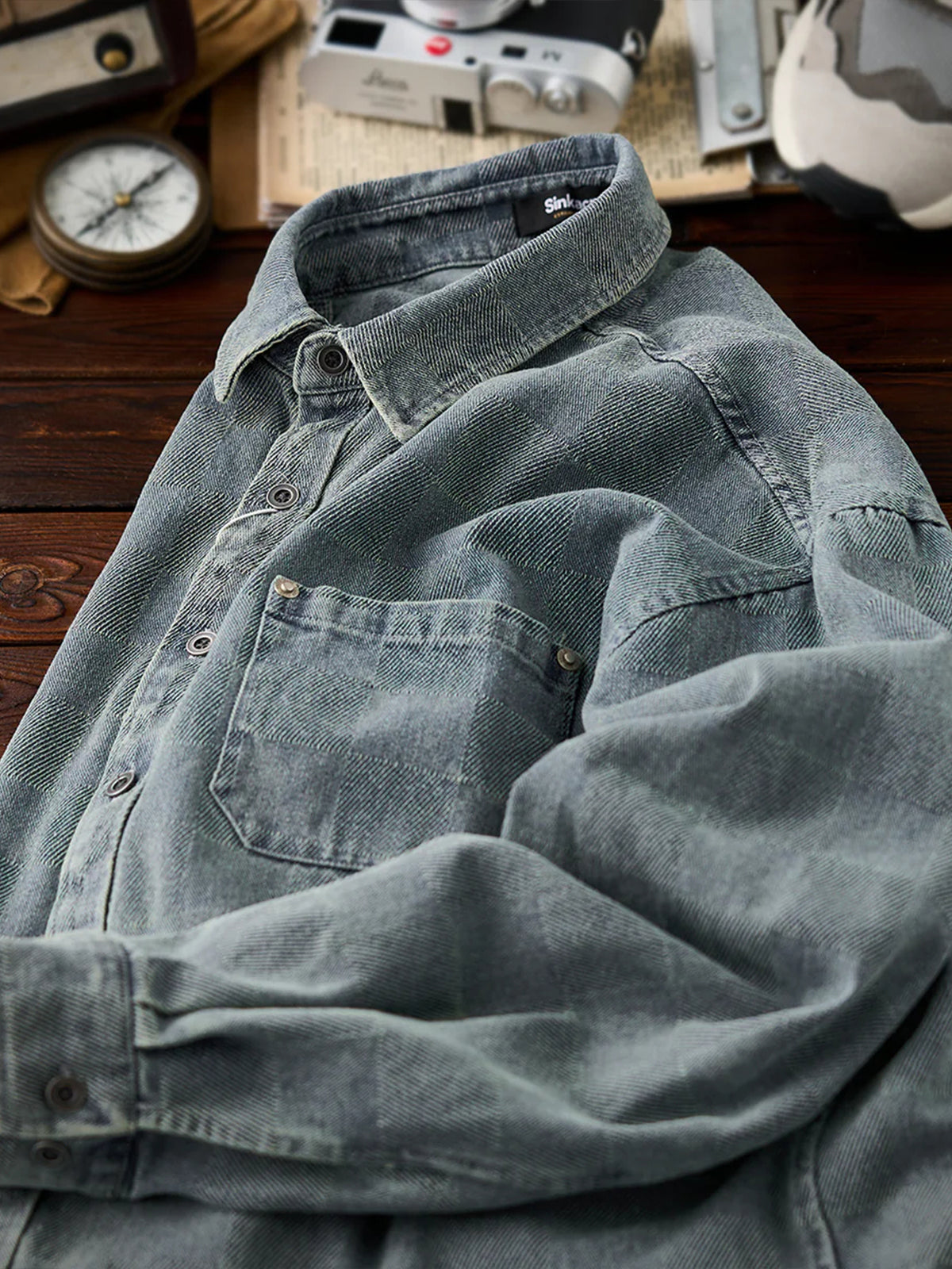 Distressed Check Denim Work Shirt