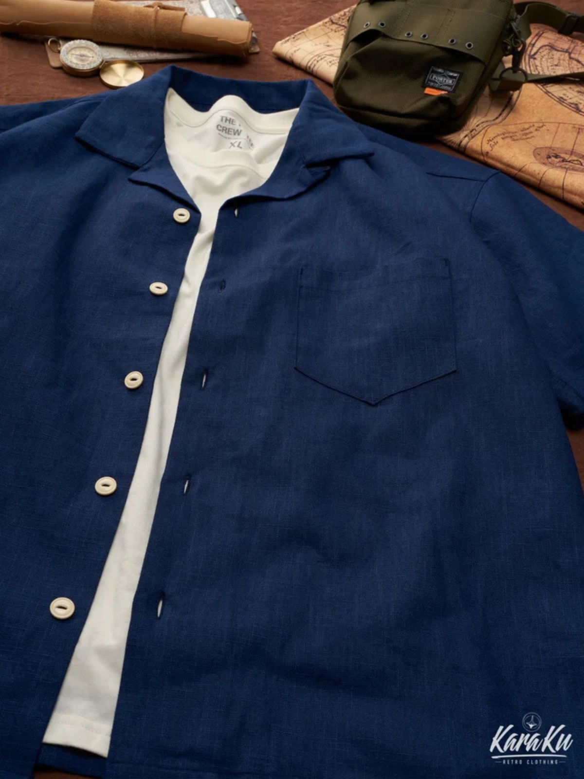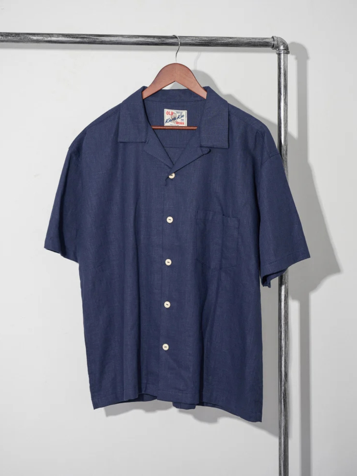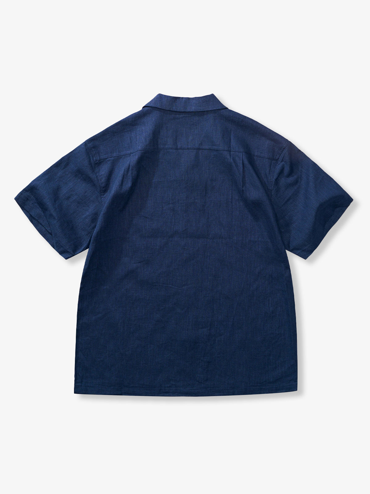 Indigo-dyed dropped shoulder cotton and linen Cuban shirt