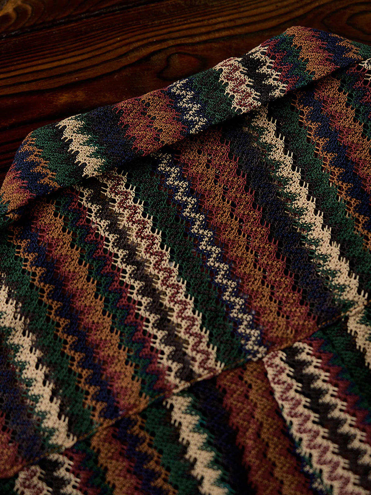Color Scheme Striped Openwork Lace Knit Shirt