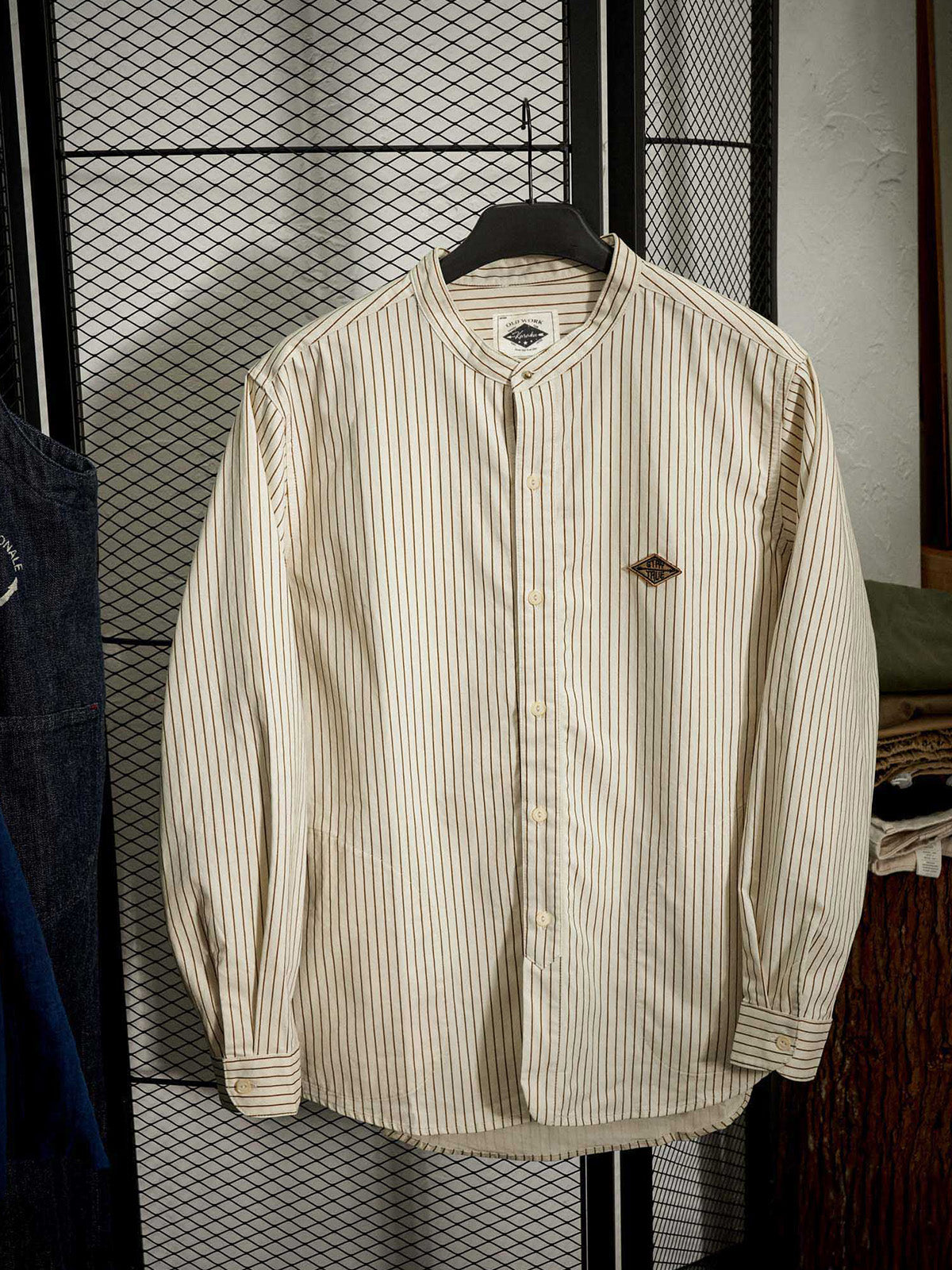 Triple Stripe Open-Collar Work Shirt