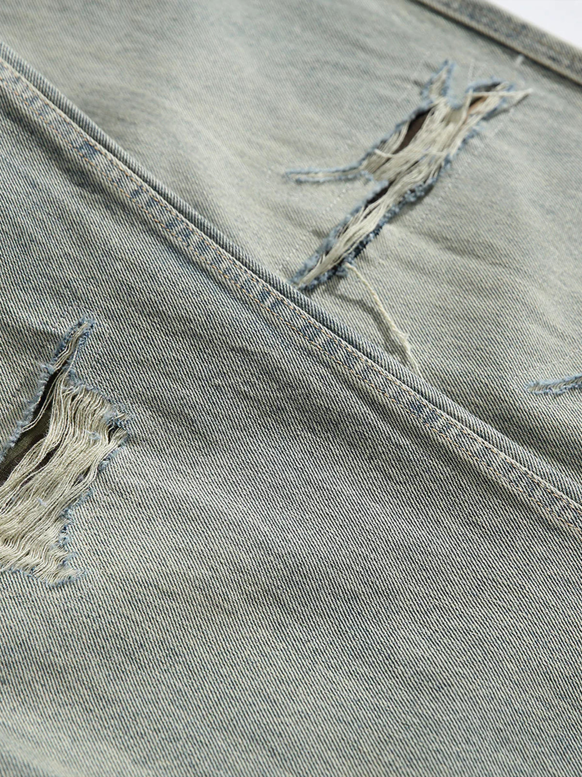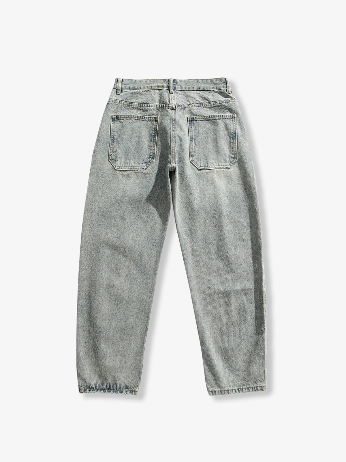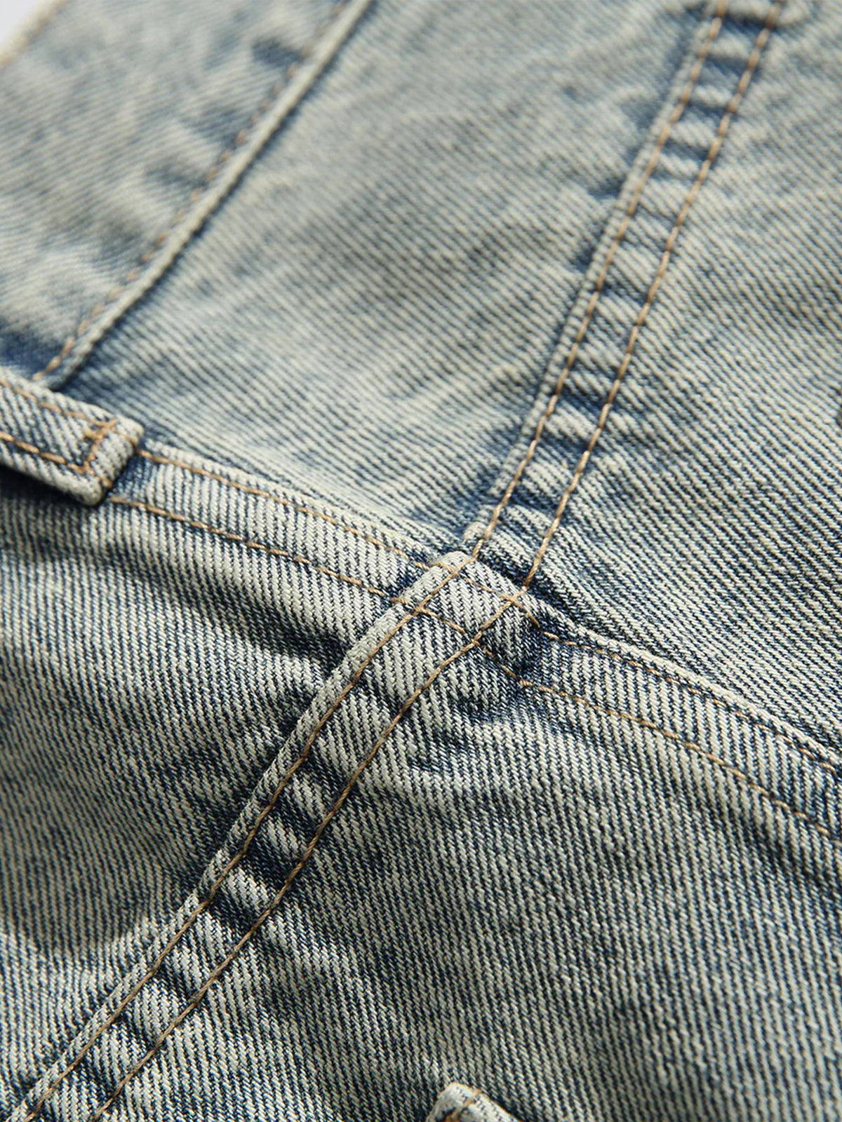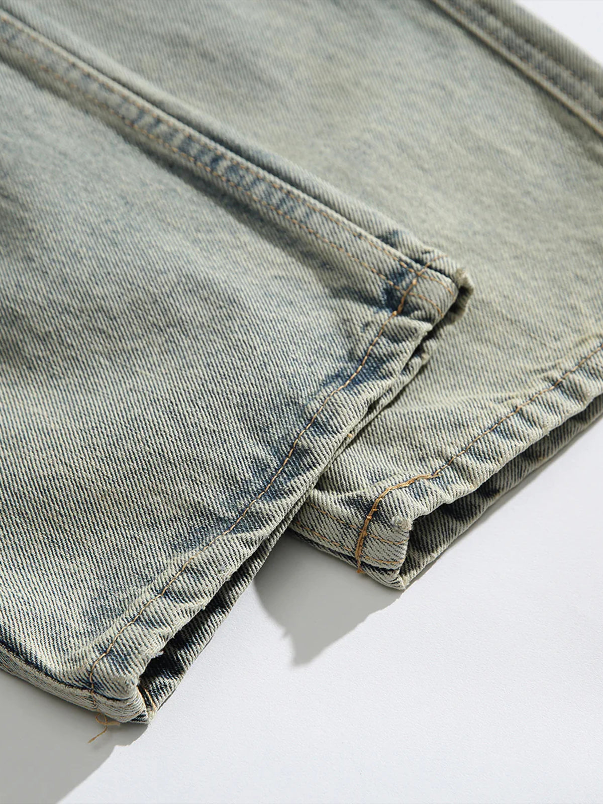 The jeans have been carefully hand-damaged and washed to bring out the deep texture, creating a natural look that is different from artificial uniformity. The silhouette features a tapered line that squeezes neatly to the hem while leaving room at the waist. The styling effect is also excellent, giving a casual yet sophisticated impression. Wear it with a T-shirt for a rugged look, or with a shirt or jacket for a more mature look.
