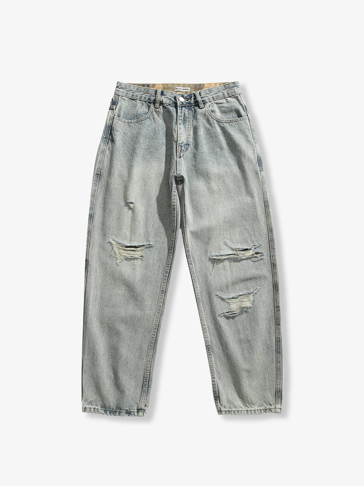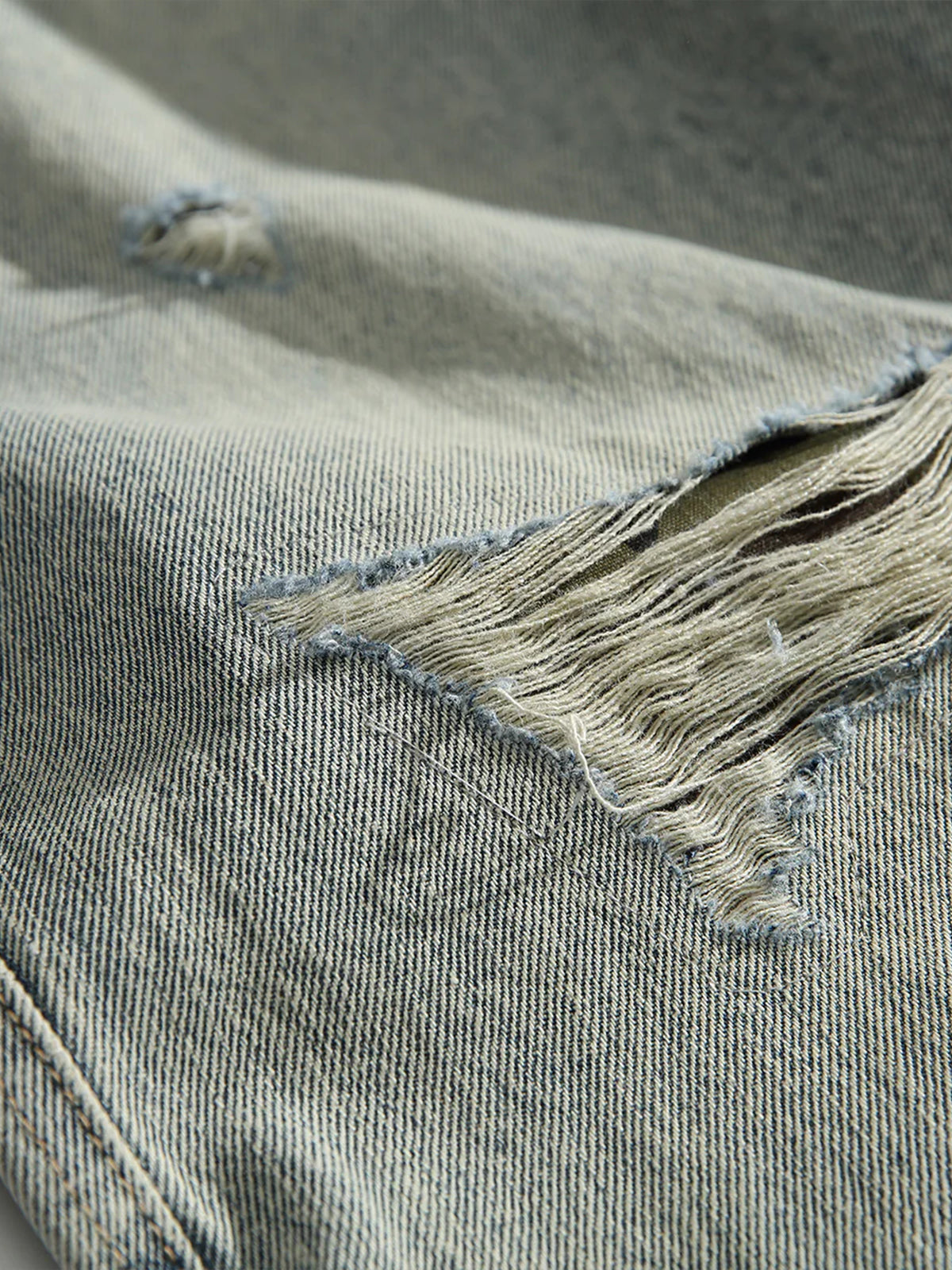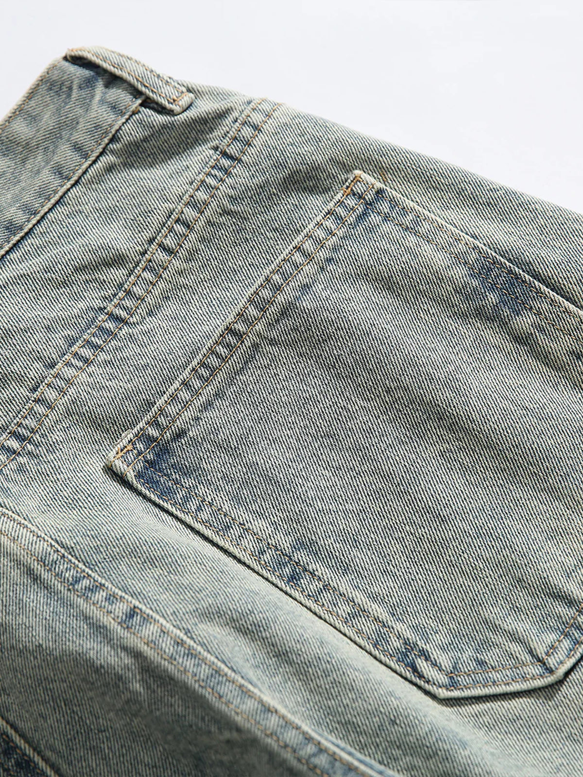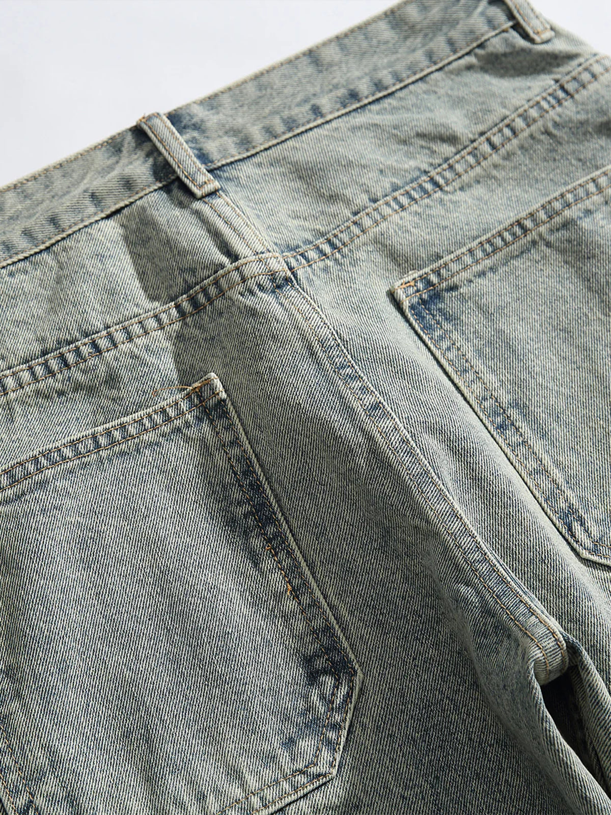 The jeans have been carefully hand-damaged and washed to bring out the deep texture, creating a natural look that is different from artificial uniformity. The silhouette features a tapered line that squeezes neatly to the hem while leaving room at the waist. The styling effect is also excellent, giving a casual yet sophisticated impression. Wear it with a T-shirt for a rugged look, or with a shirt or jacket for a more mature look.