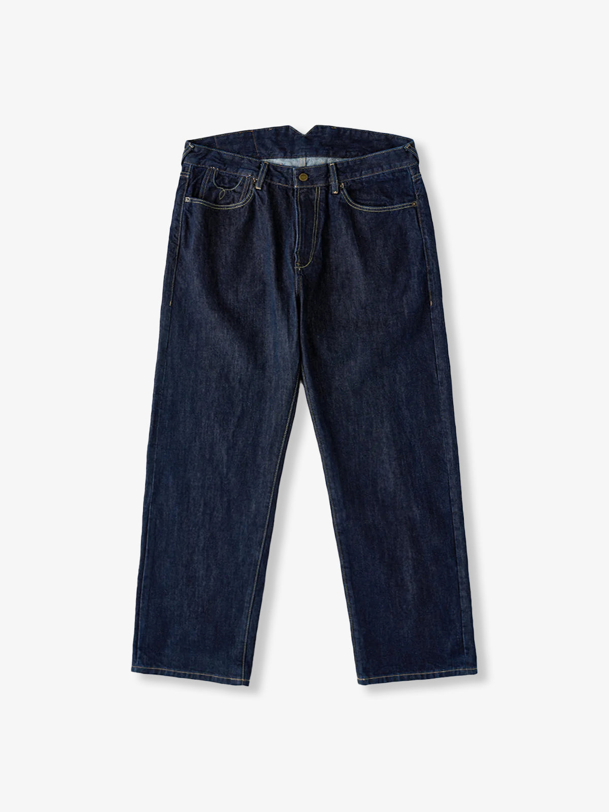 A classic-looking pair made with 14.75oz heavyweight denim. The back waist features a cinch back, originally devised in an era when belts were not yet widespread, to adjust the fit around the waist. It not only offers workwear-like functionality but also gives a distinctive presence to the rear view. The fabric comes in two types: “raw denim,” which allows you to cultivate your own fades as you wear it in, and “one-wash denim,” which lets you enjoy a natural texture. The more time passes and the more you wear it, the deeper the character becomes, and together with the workwear-derived details, it develops into a unique pair that is yours alone.