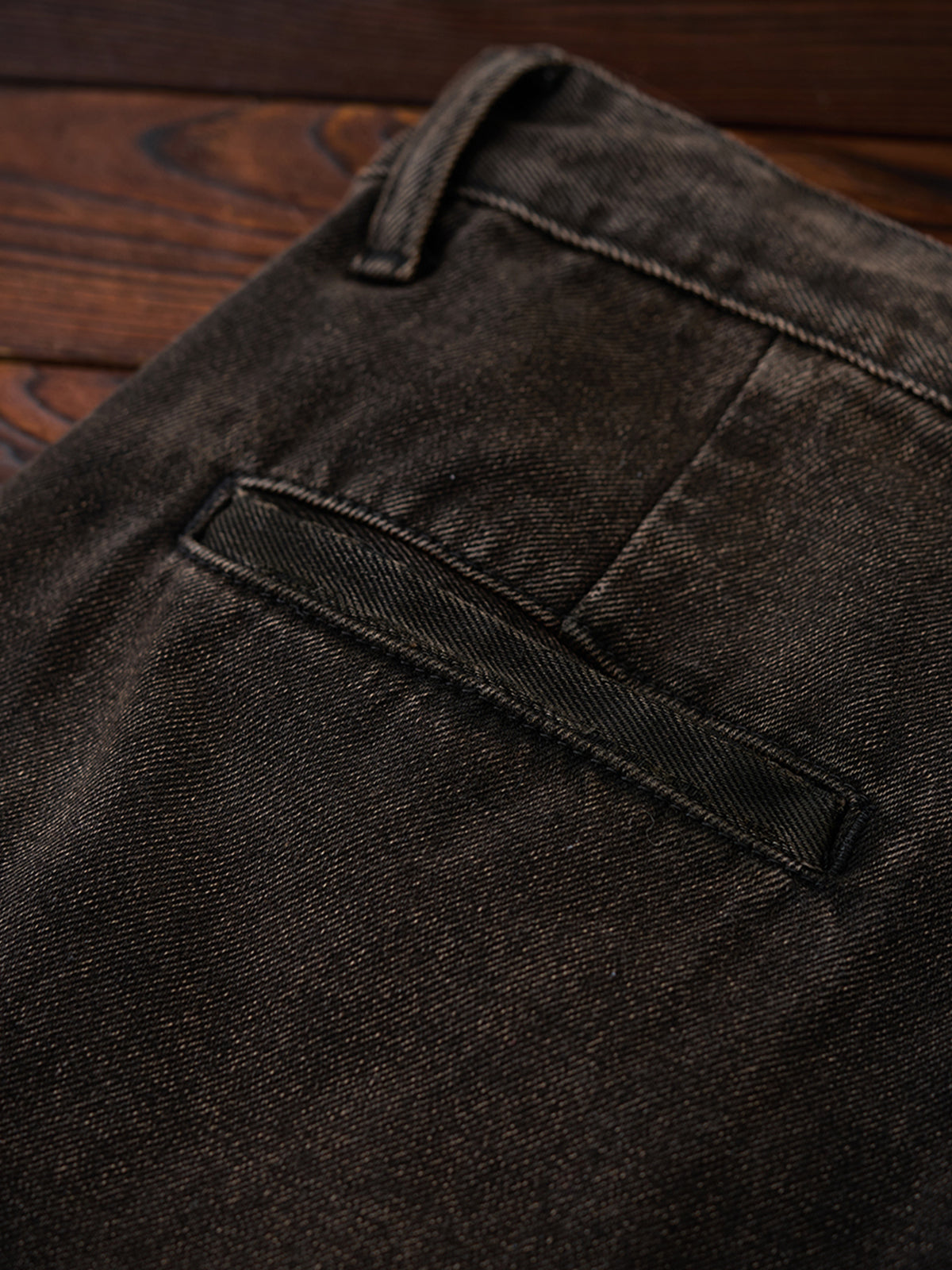 Crafted from a cotton-polyester blend (83% cotton, 17% polyester), the fabric balances softness with durability. The deep-washed treatment enhances its texture and creates a lived-in character that evolves with wear, while the cotton ensures breathability and comfort, and the polyester adds resilience to maintain the pants’ shape.
