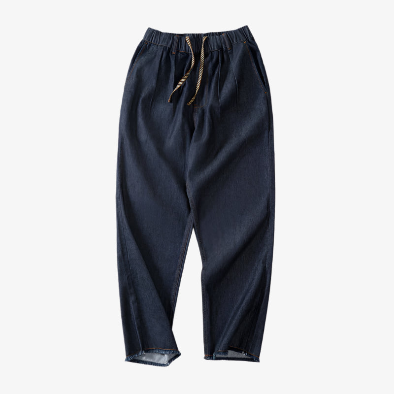 The C-Blend fabric combines elasticity, luster, and silkiness. Made from a premium blend of cotton, polyester, and sustainable Tencel, these jeans are exceptionally soft and smooth, stronger than cotton, wrinkle-resistant, and drapey. With an elastic waist, drawstring, and frayed hem detailing, these pants are stylish and easy to wear.