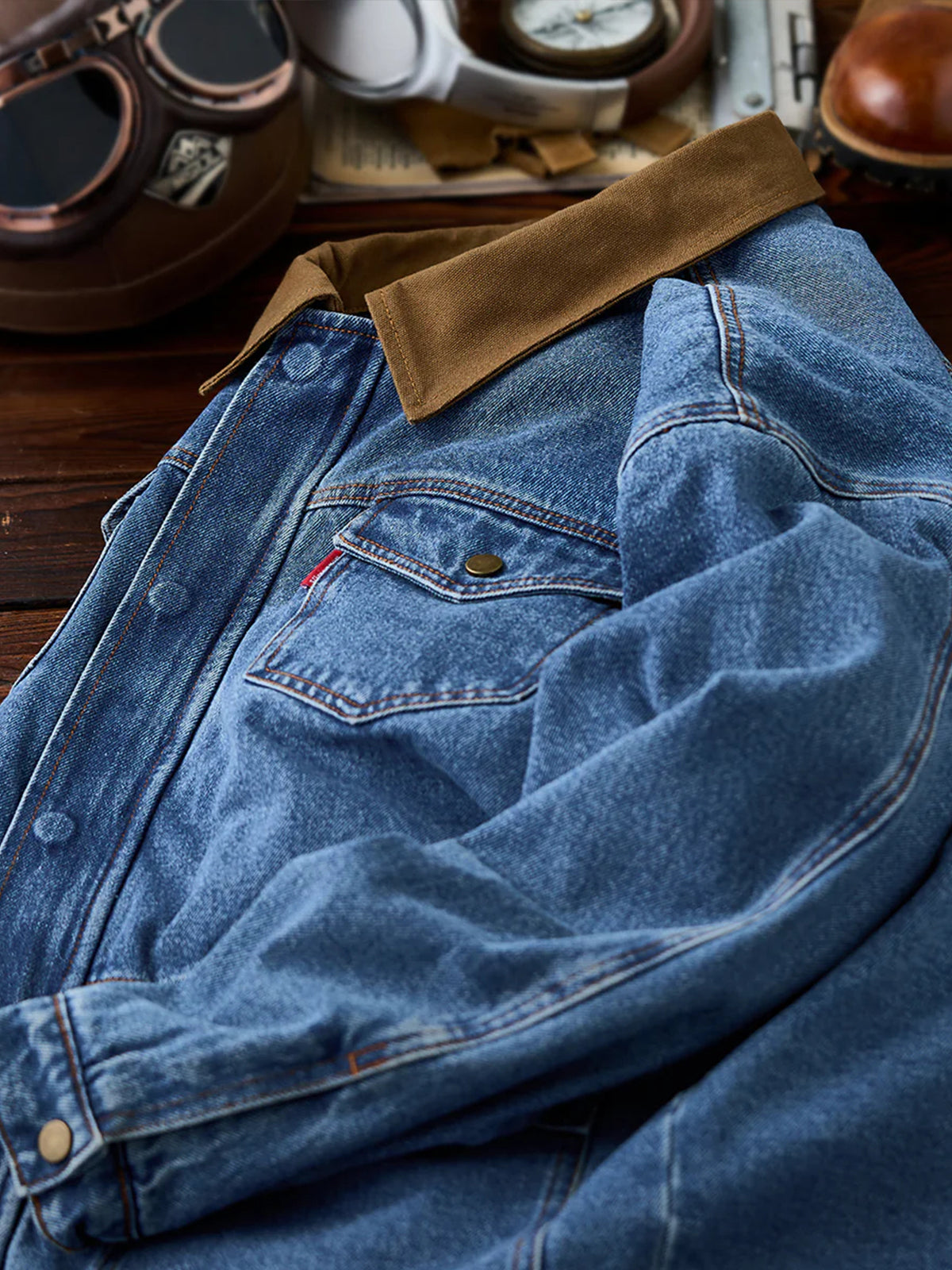 Western-Style Washed Denim Jacket with Stripe Stitching