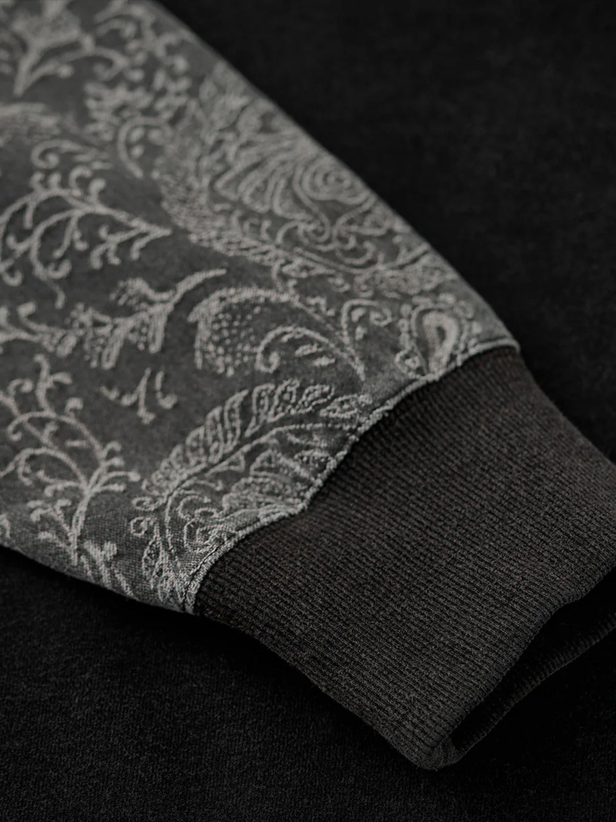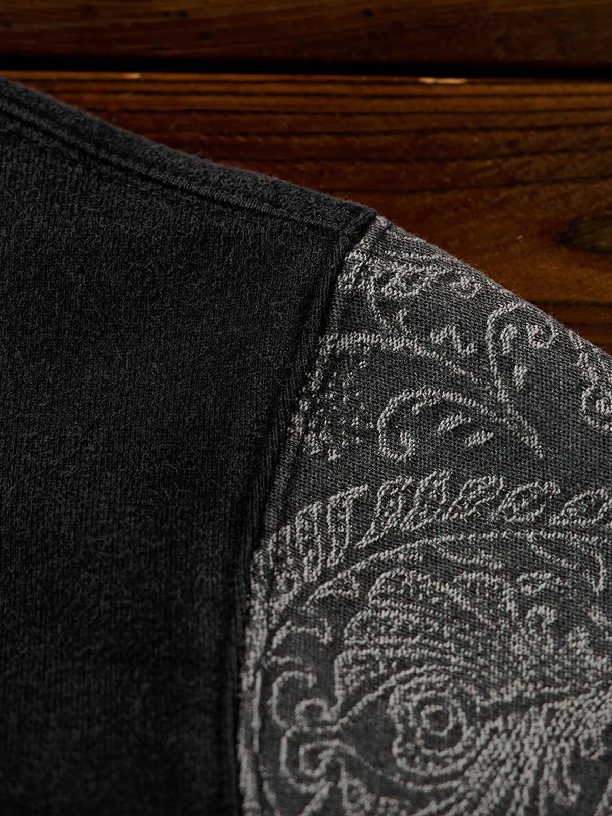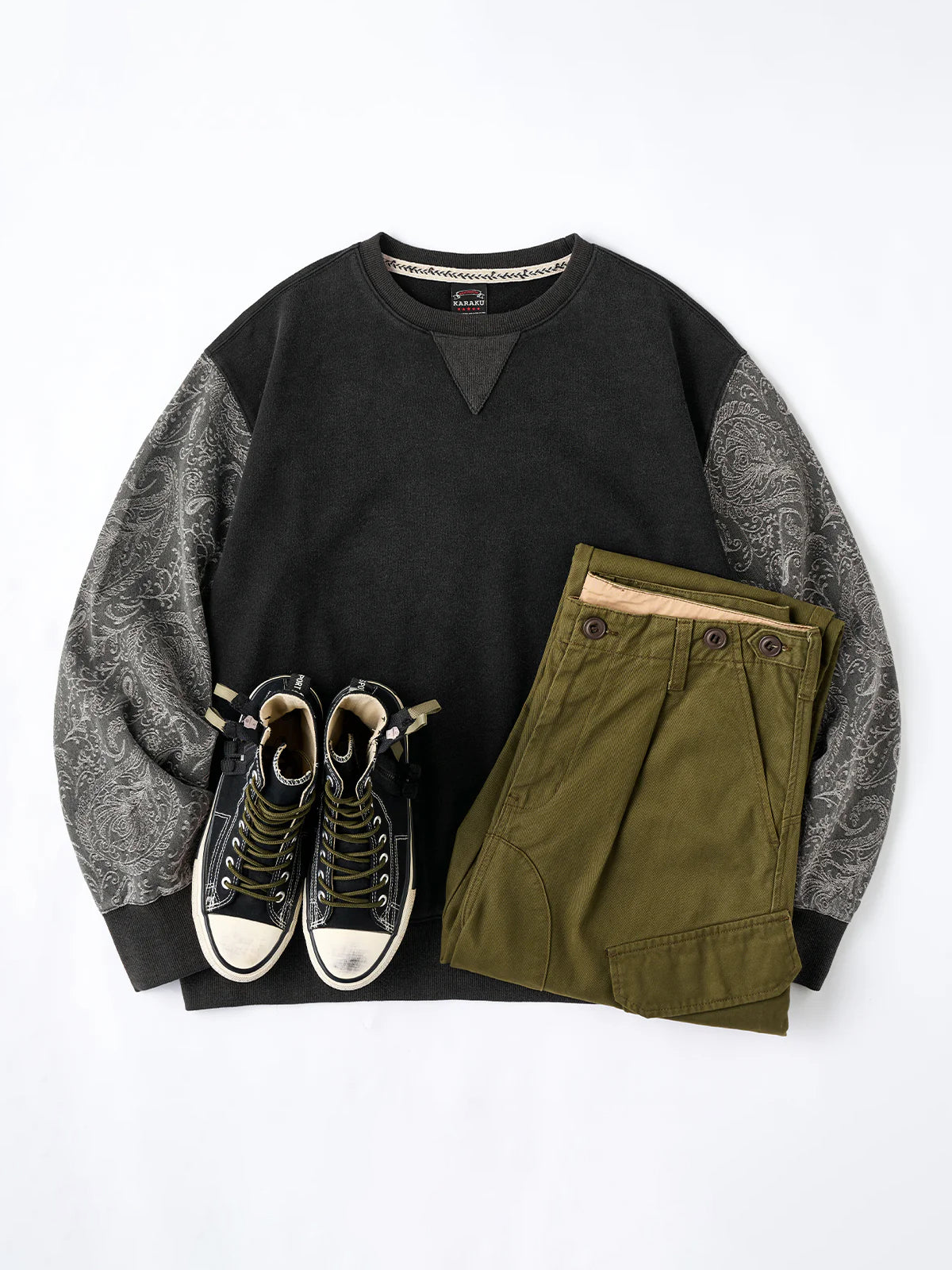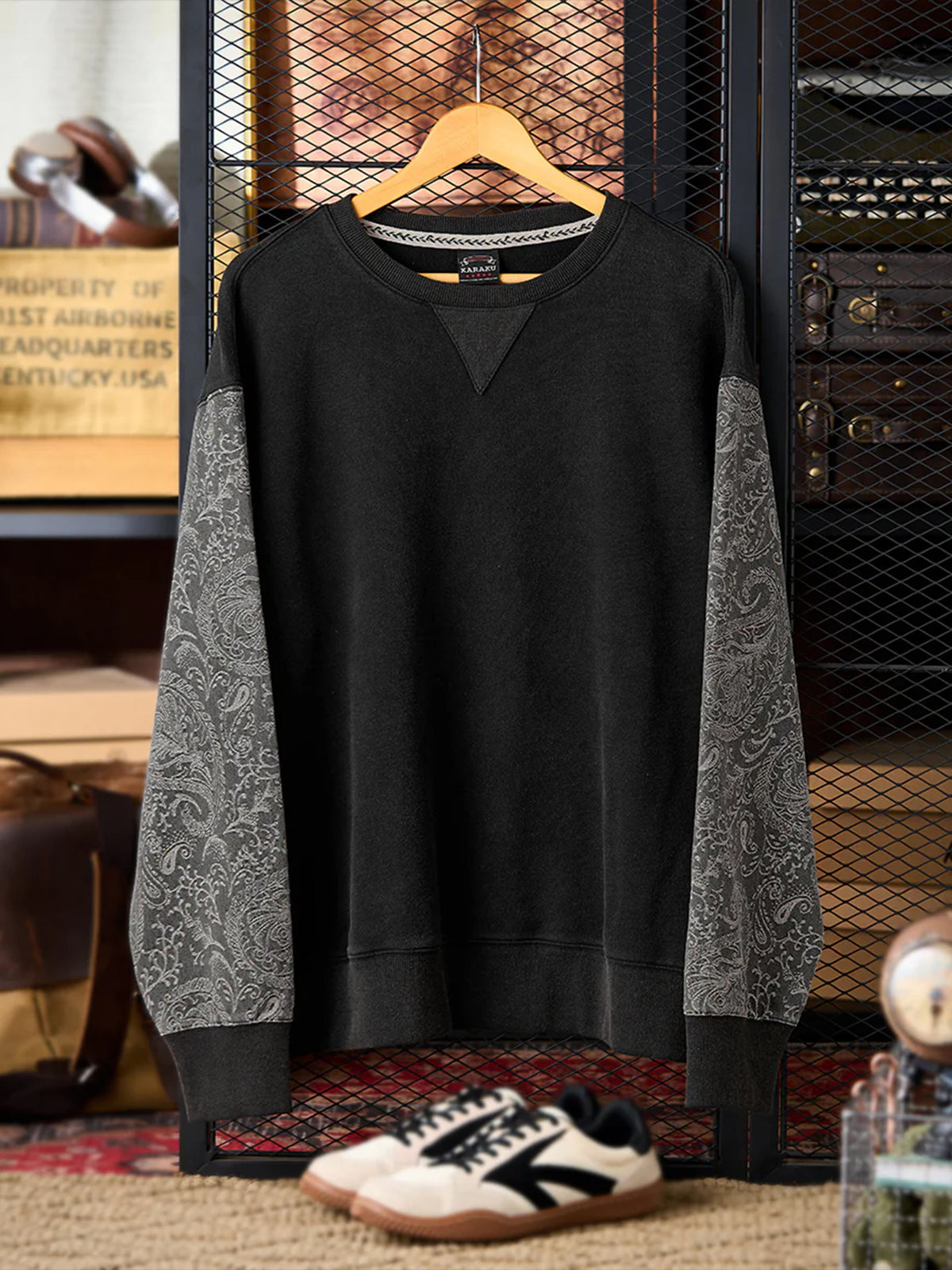 Washed Sweatshirt with Paisley Denim Sleeves & V-Gusset Detail